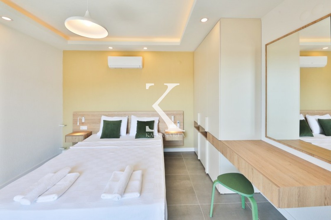 1 adet çift kişilik yatak, elbise dolabı, komodin, klima, banyo & WC.