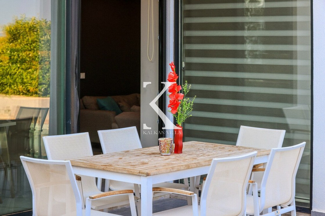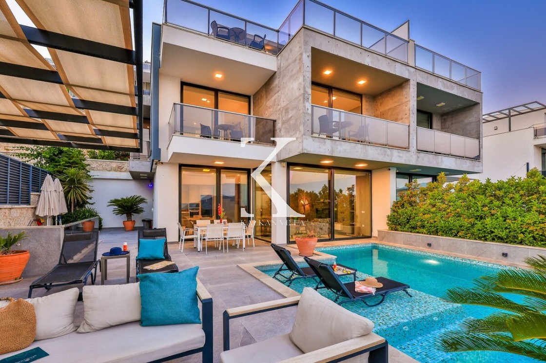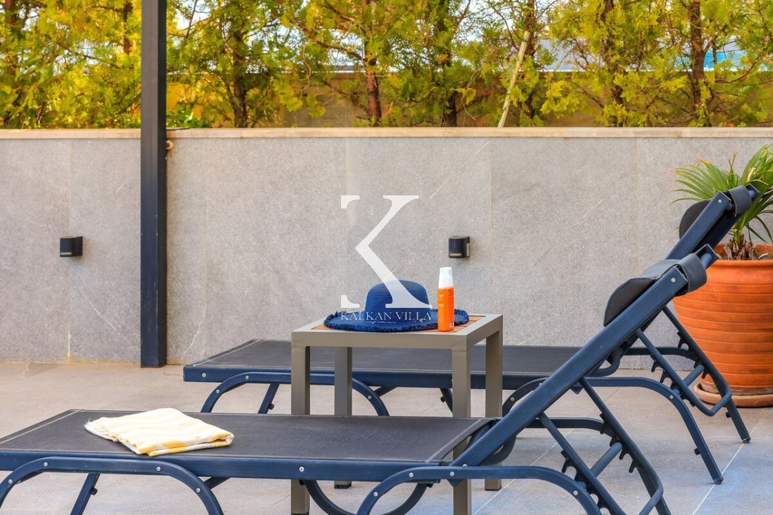 Modern mimarisi, geniş yaşam alanları ve iki ayrı havuzu ile öne çıkan bu özel villa, 6 kişilik konaklama kapasitesi ile geniş aileler ve arkadaş grupları için mükemmel bir konaklama seçeneğidir.