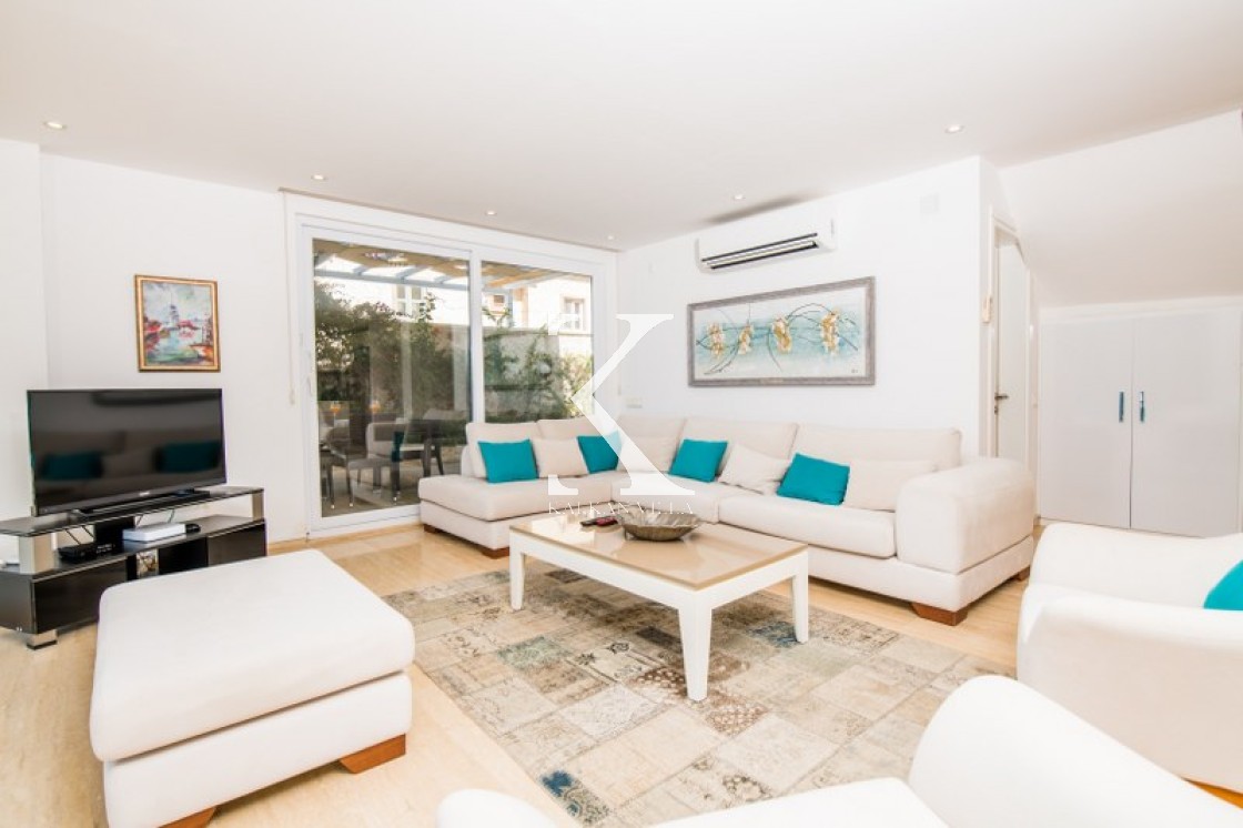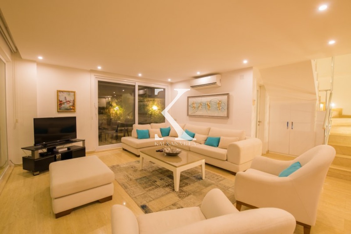 Aydınlık & ferah: konforlu oturma grubu, TV, DVD oynatıcı, klima; havuz terasına direkt çıkış.