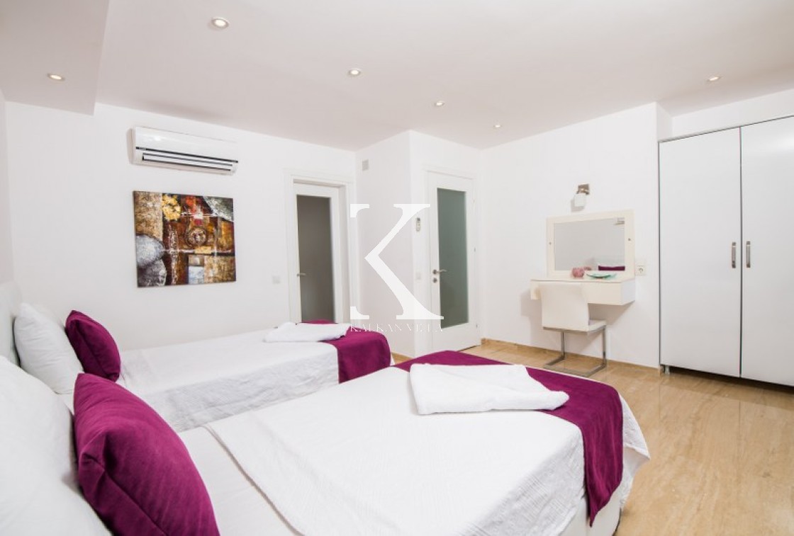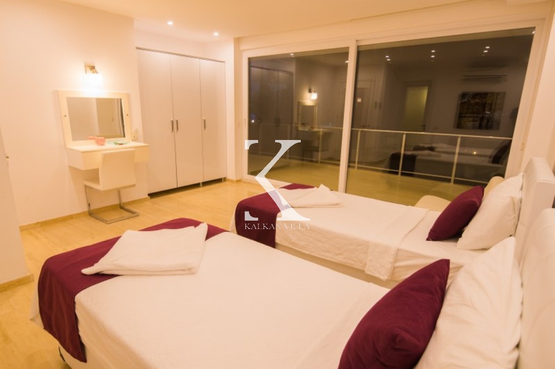 Kalkan’ın en özel bölgelerinden Kışla’da, denize 500 m mesafede; 3 yatak odalı – 6 kişi kapasiteli modern villa. Sonsuzluk havuzu ve geniş terasında şezlong, oturma alanı, BBQ & yemek masası ile Akdeniz manzarasına karşı keyif dolu anlar.