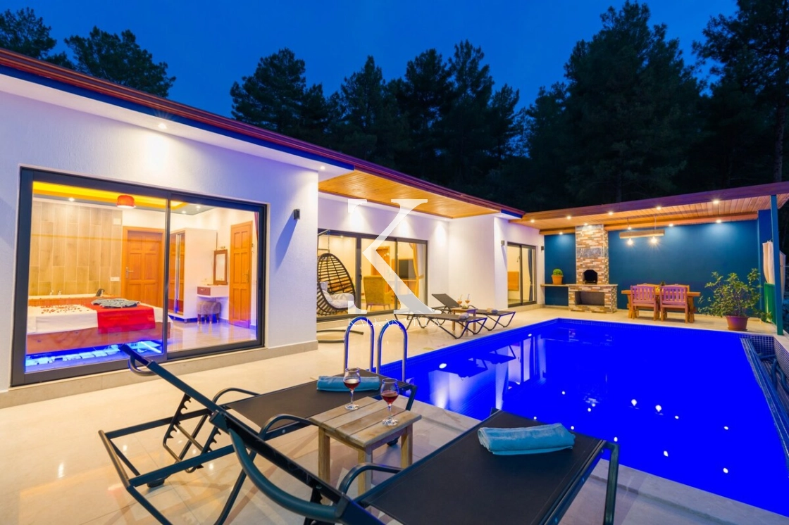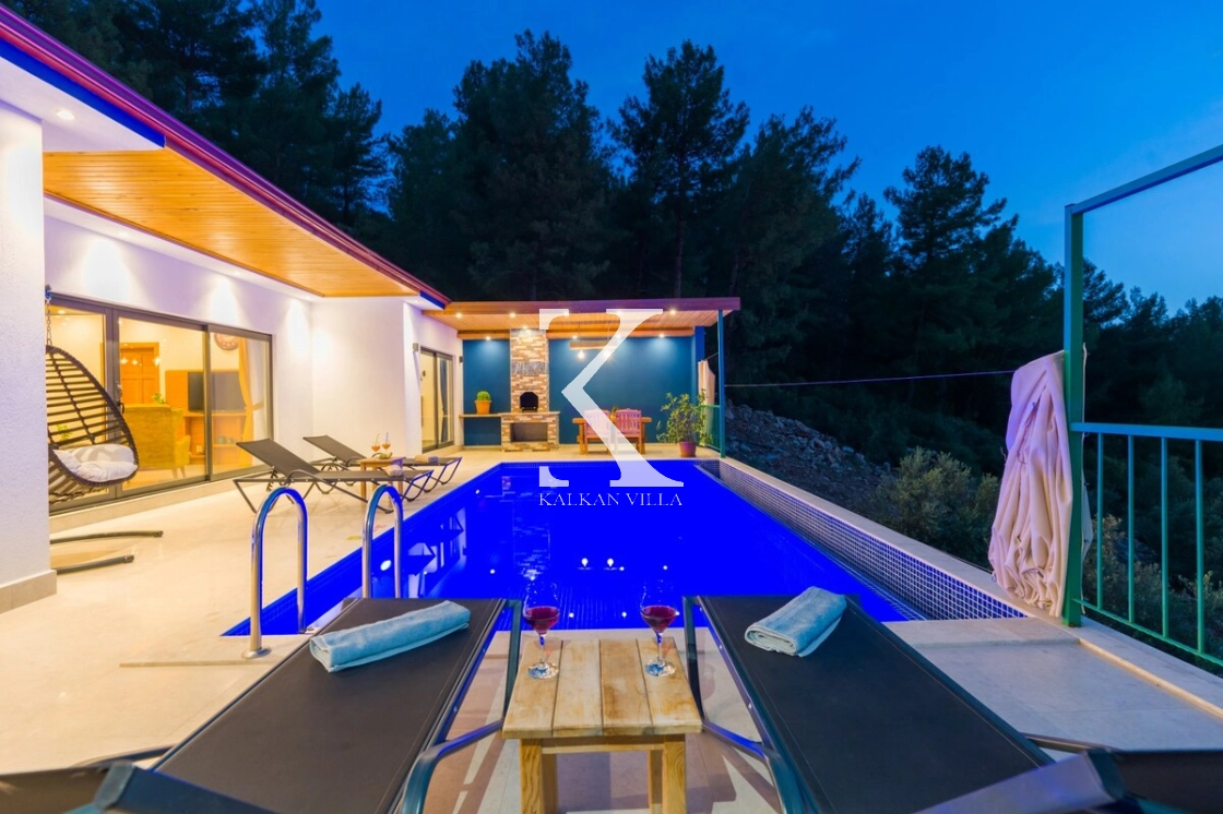 Doğanın kalbinde yer alan Villa İlkan, modern ve şık bir tasarıma sahip iç mekânları ile konforu ön planda tutarken, dış alanda yer alan özel yüzme havuzu sayesinde misafirlerine tamamen özgür ve keyifli bir tatil imkânı sunar. Geniş yaşam alanları, her yatak odasına ait özel banyoları ve sakin çevresi ile şehir hayatının stresinden uzaklaşmak isteyen misafirler için mükemmel bir ortam sağlar.