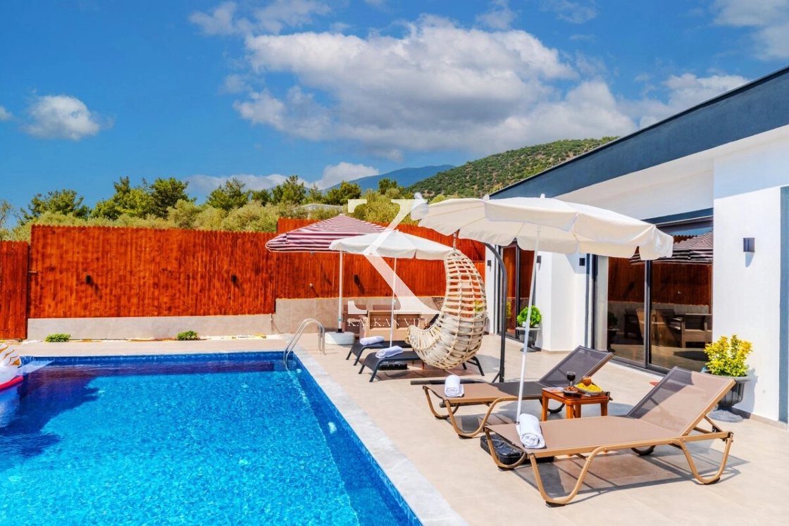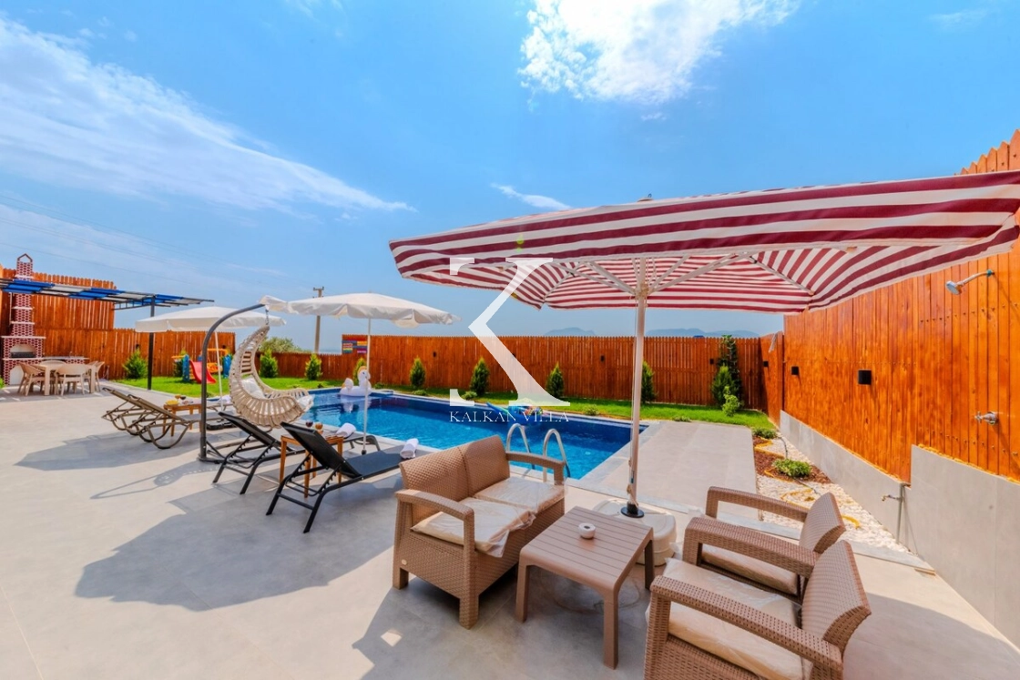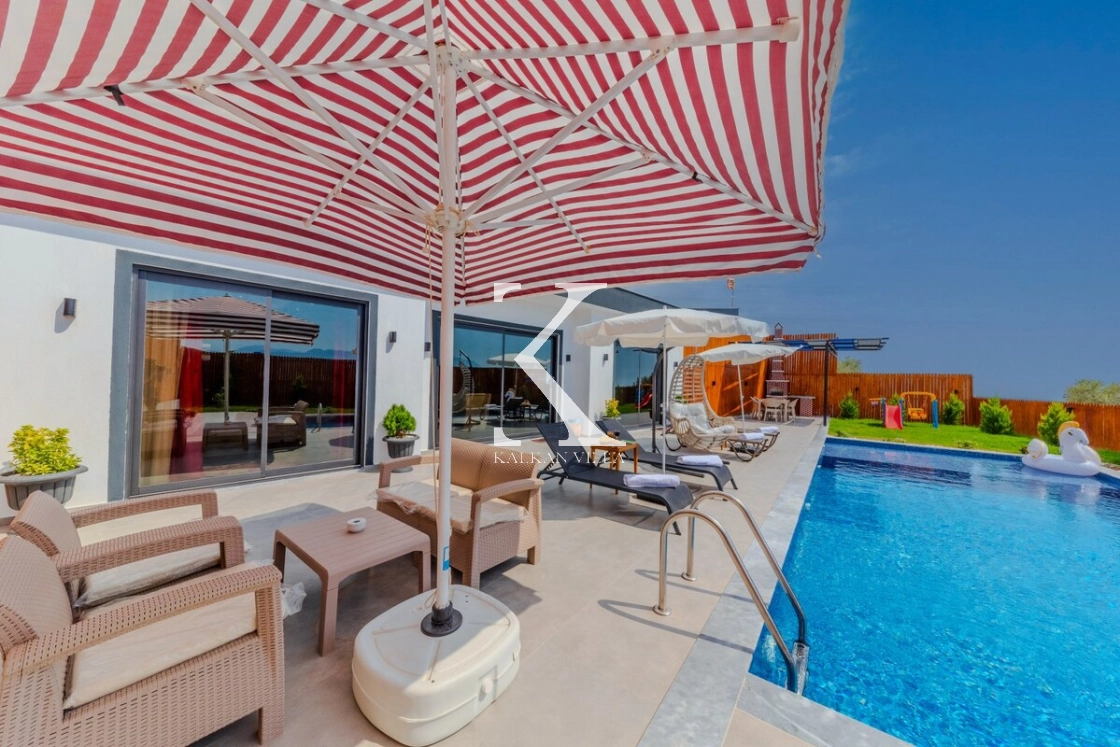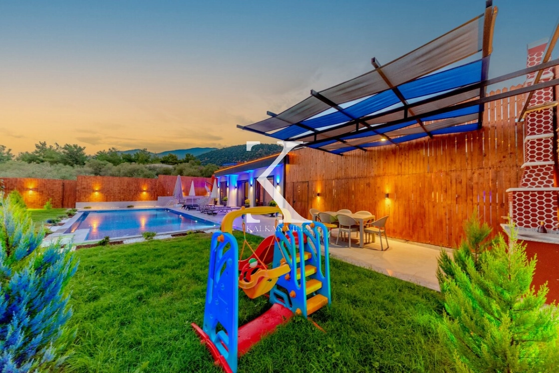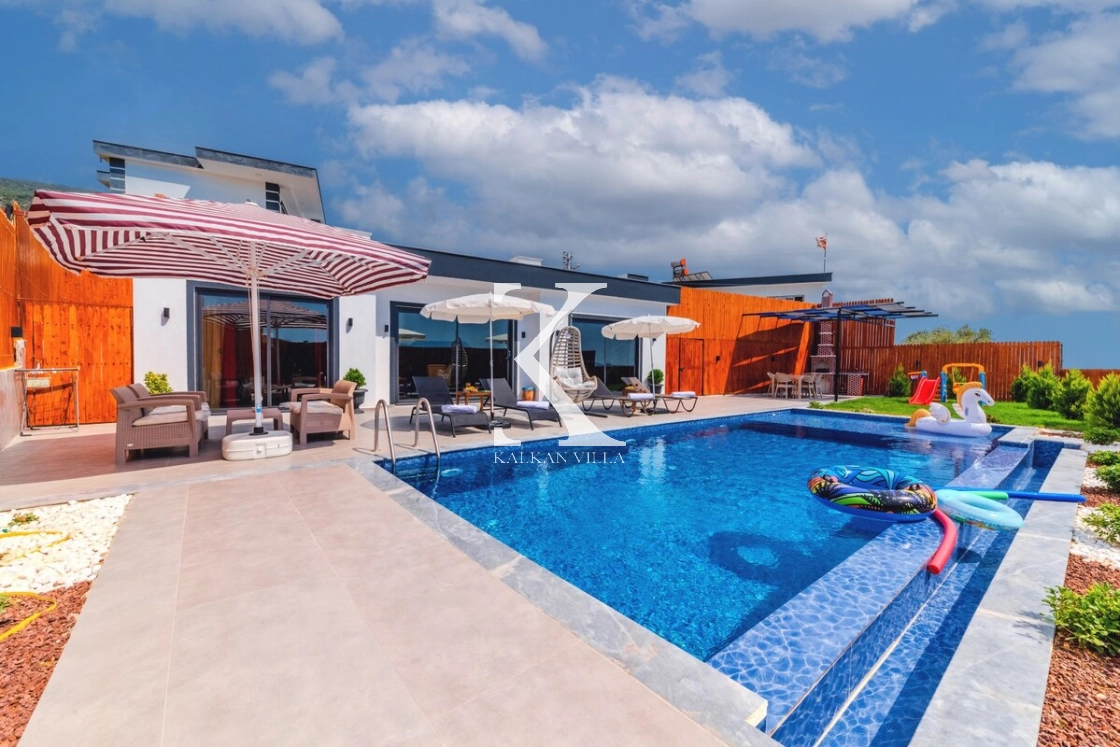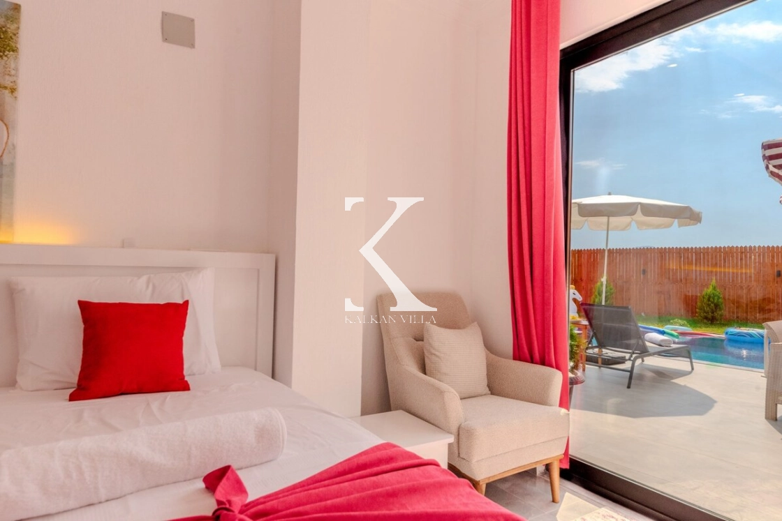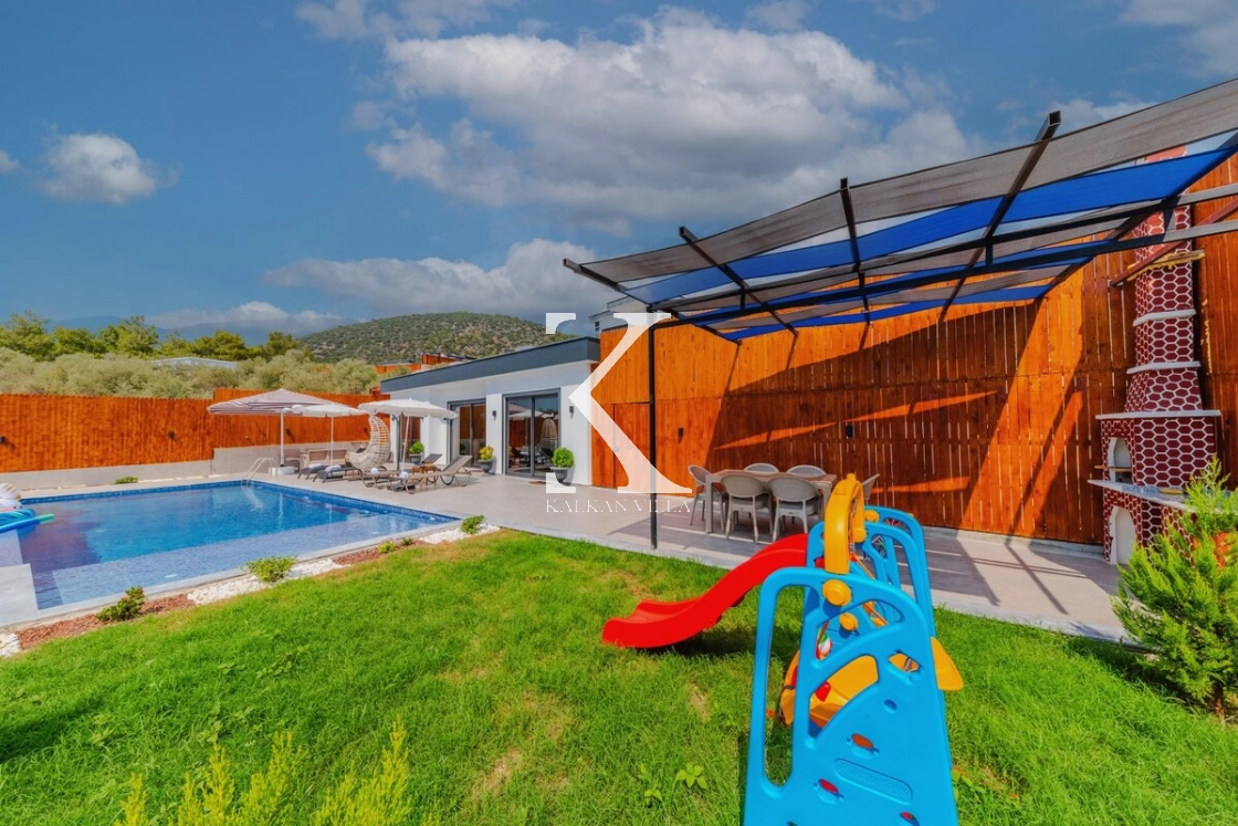 Villa İnziva’nın havuz terası ve bahçe alanı ahşap çitlerle tamamen korunaklı hale getirilmiştir. Dışarıdan görünmeyen özel yüzme havuzu sayesinde misafirler gözlerden uzak, rahat ve güvenli bir tatil deneyimi yaşayabilir.