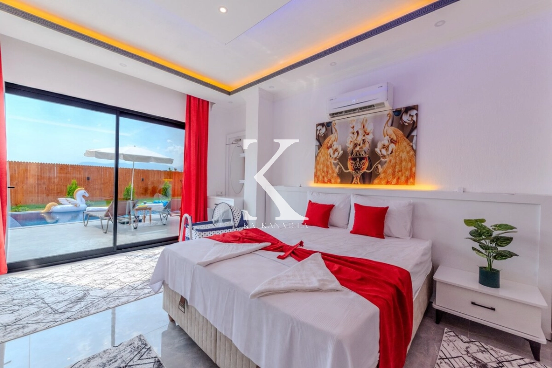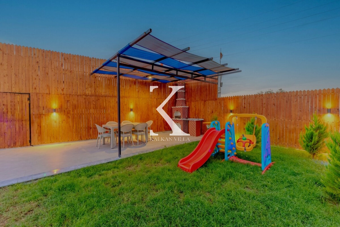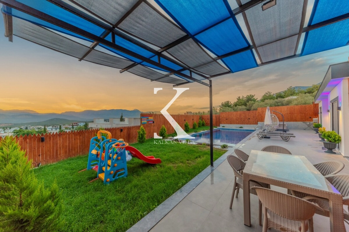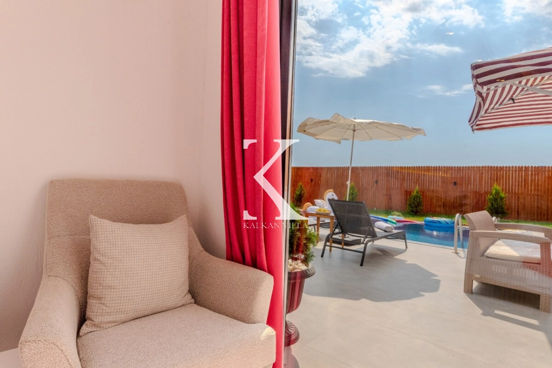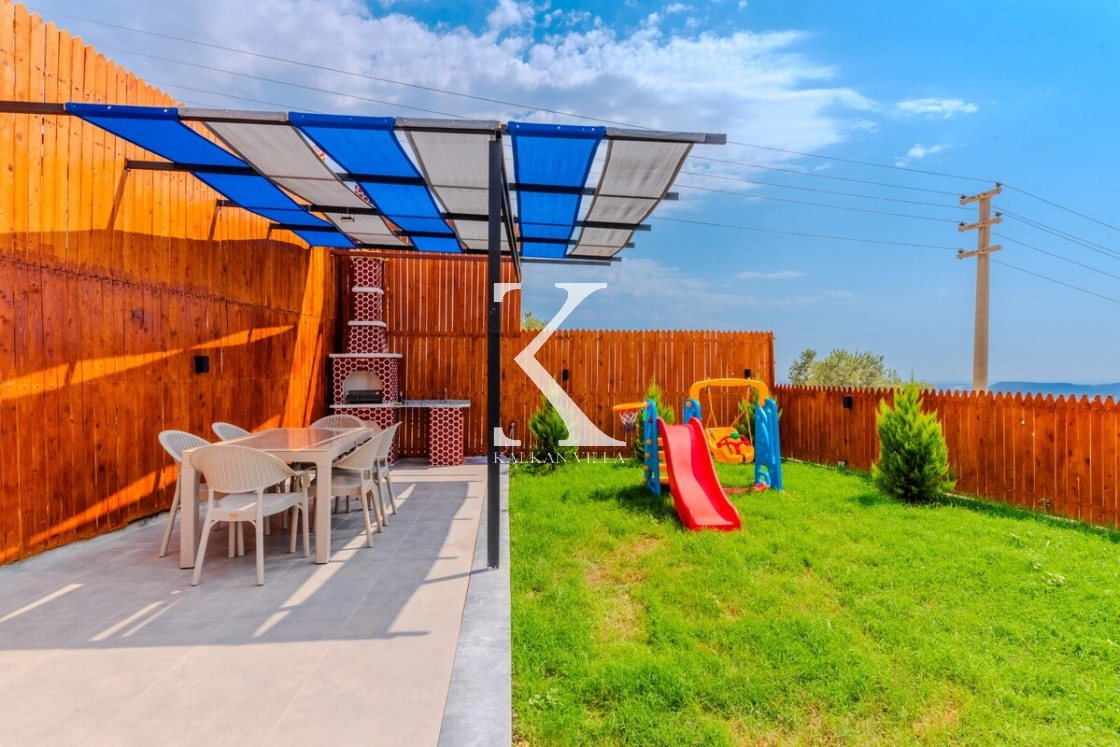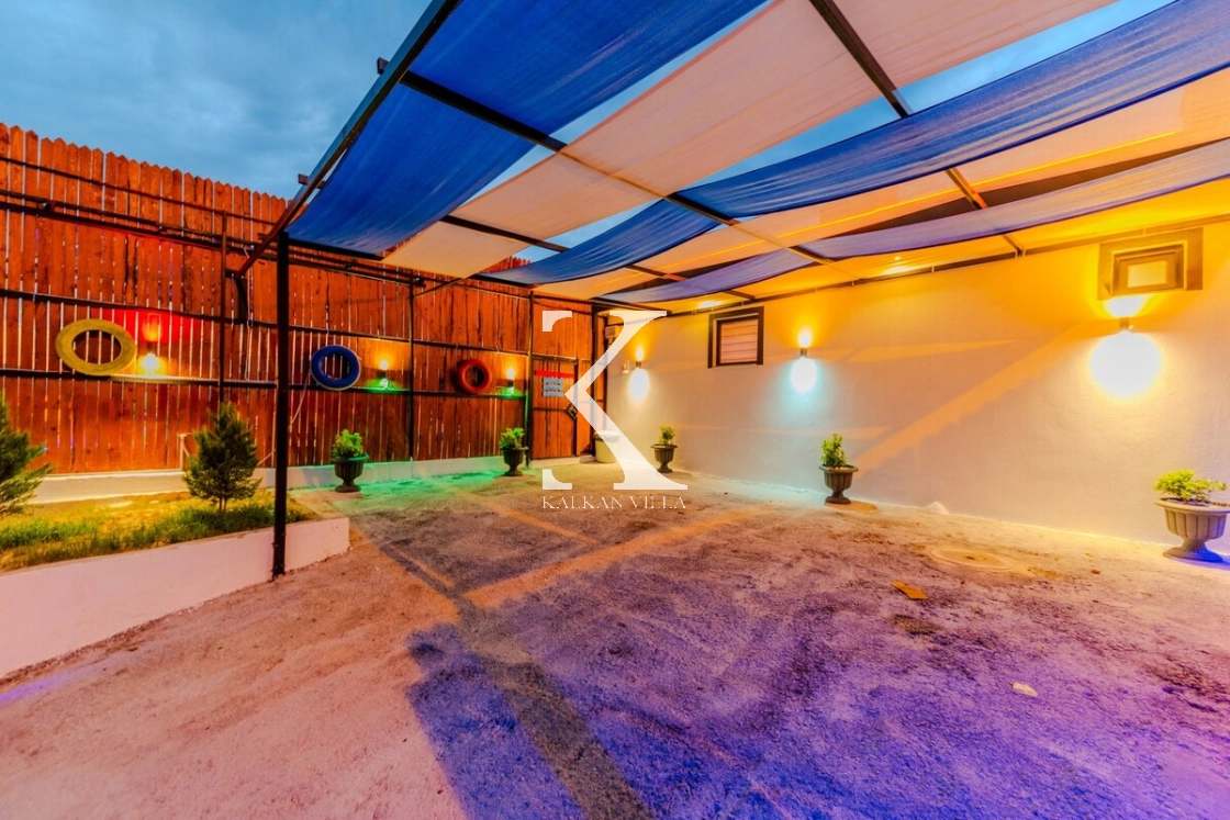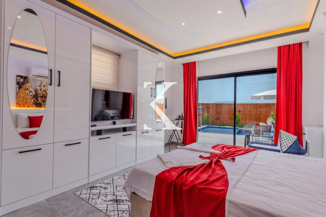 Villa İnziva’nın havuz terası ve bahçe alanı ahşap çitlerle tamamen korunaklı hale getirilmiştir. Dışarıdan görünmeyen özel yüzme havuzu sayesinde misafirler gözlerden uzak, rahat ve güvenli bir tatil deneyimi yaşayabilir.