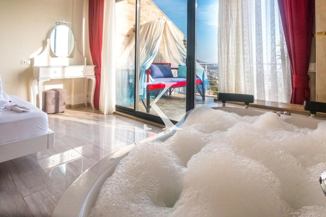 Yatak odasında bulunan jakuzili süit, romantik bir atmosferde dinlenmek isteyen çiftler için mükemmel bir detay sunar.