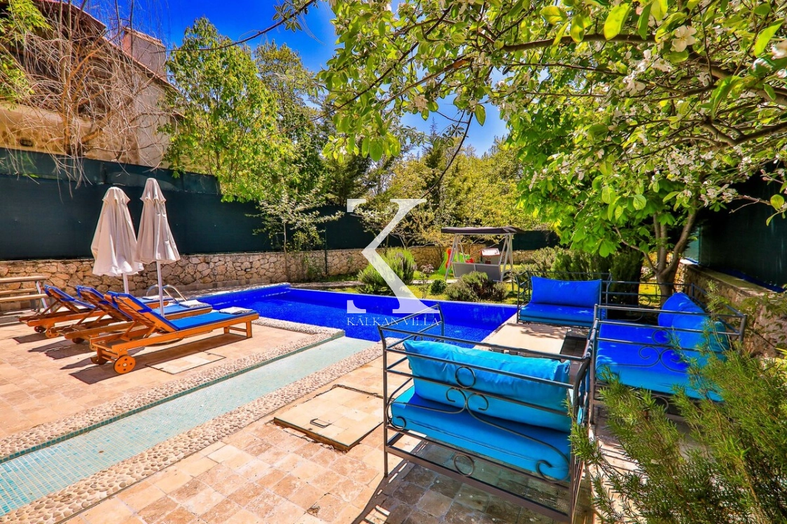 Doğanın kalbinde, kuş sesleri eşliğinde huzurlu bir tatil geçirmek isteyenler için tasarlanan Villa Kaputaş 5, Kalkan’ın yemyeşil doğasıyla öne çıkan Sarıbelen bölgesinde yer almaktadır.