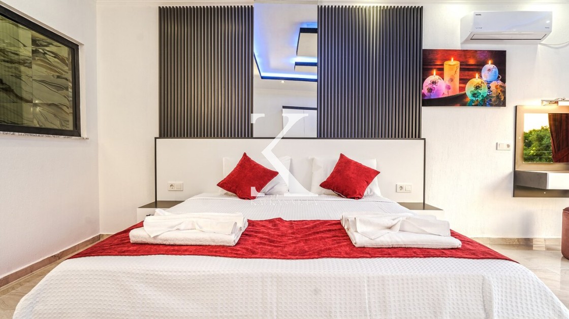 1. Yatak Odası: Çift kişilik yatak, klima, jakuzi, elbise dolabı, makyaj masası, banyo ve tuvalet.