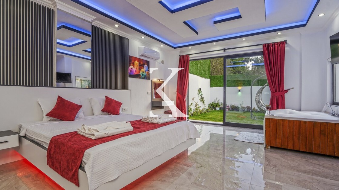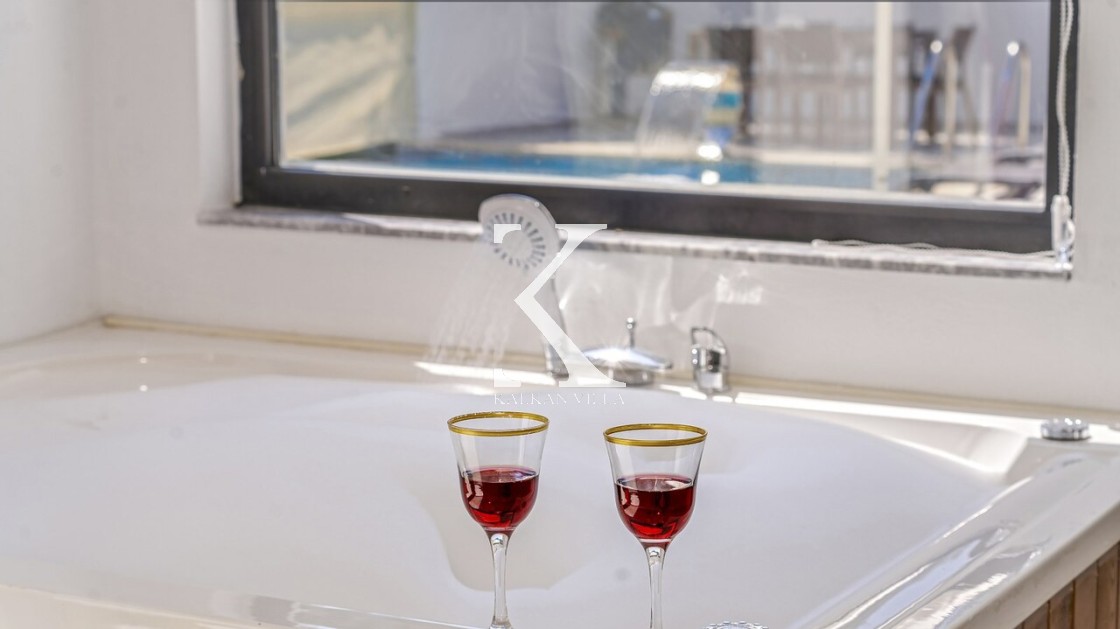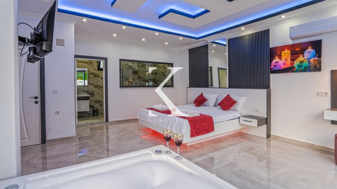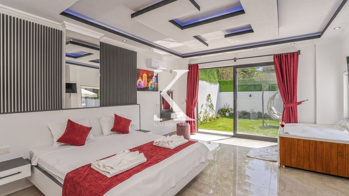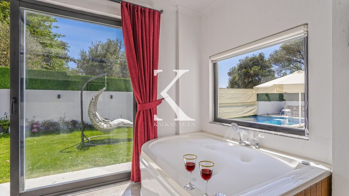 Gözlerden uzak korunaklı havuz terası, dışarıdan görünmeyecek şekilde tasarlanmıştır. Bu sayede tatiliniz boyunca tamamen size özel bir alanın keyfini çıkarabilirsiniz. Villanın ebeveyn yatak odasında yer alan jakuzi, tatilinize ekstra bir konfor ve romantizm katmaktadır.