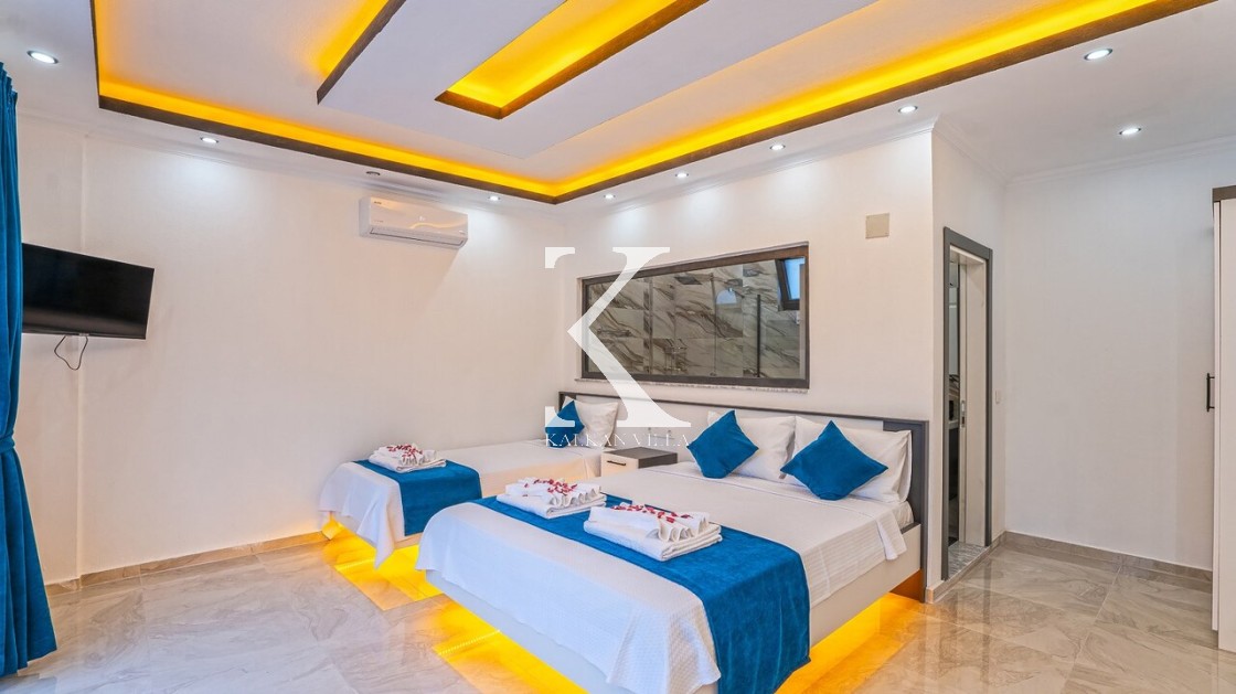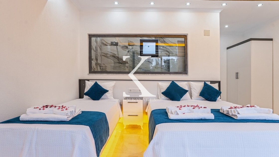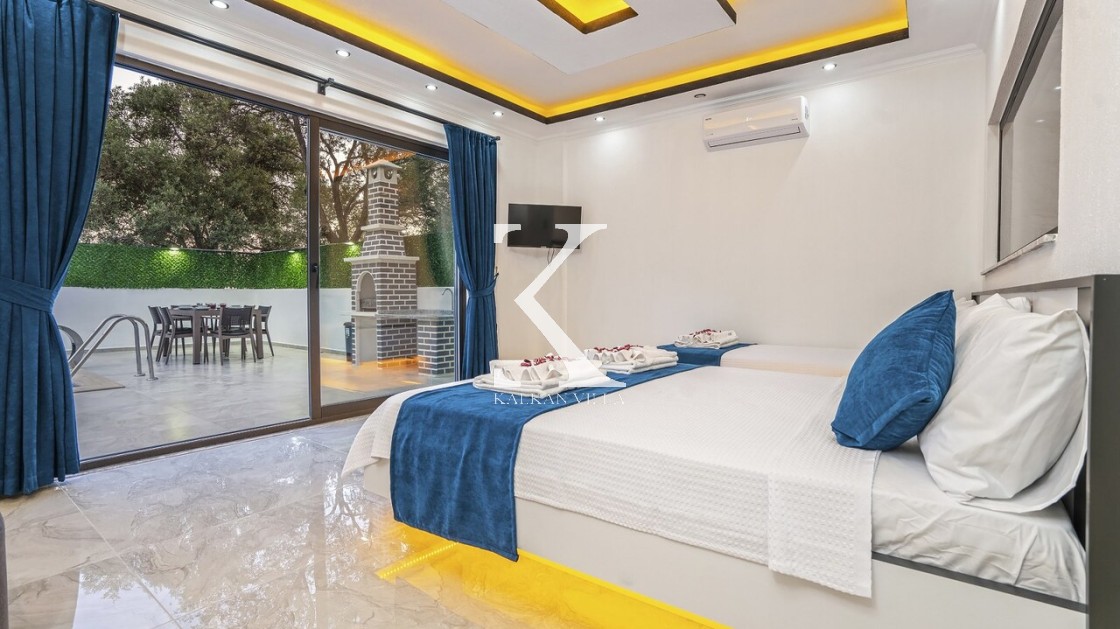 2. Yatak Odası: 1 çift kişilik yatak + 1 tek kişilik yatak, klima, elbise dolabı, makyaj masası, banyo ve tuvalet.