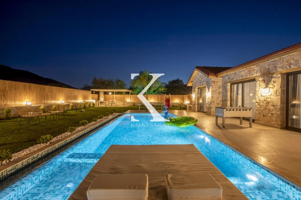Bohem tarzda dekore edilen villanın iç mekânı sıcak, samimi ve davetkâr bir atmosfere sahiptir. Korunaklı özel havuz, bahçe ve havuz terası sayesinde gözlerden uzak, huzurlu bir tatil yaşayabilirsiniz. Villanın geniş bahçesinde çocuklar için oyun alanı, açık hava sineması ve masa tenisi; yetişkin misafirler için ise salıncak, sauna, hamam ve langırt gibi birçok eğlence ve dinlenme alanı bulunmaktadır.