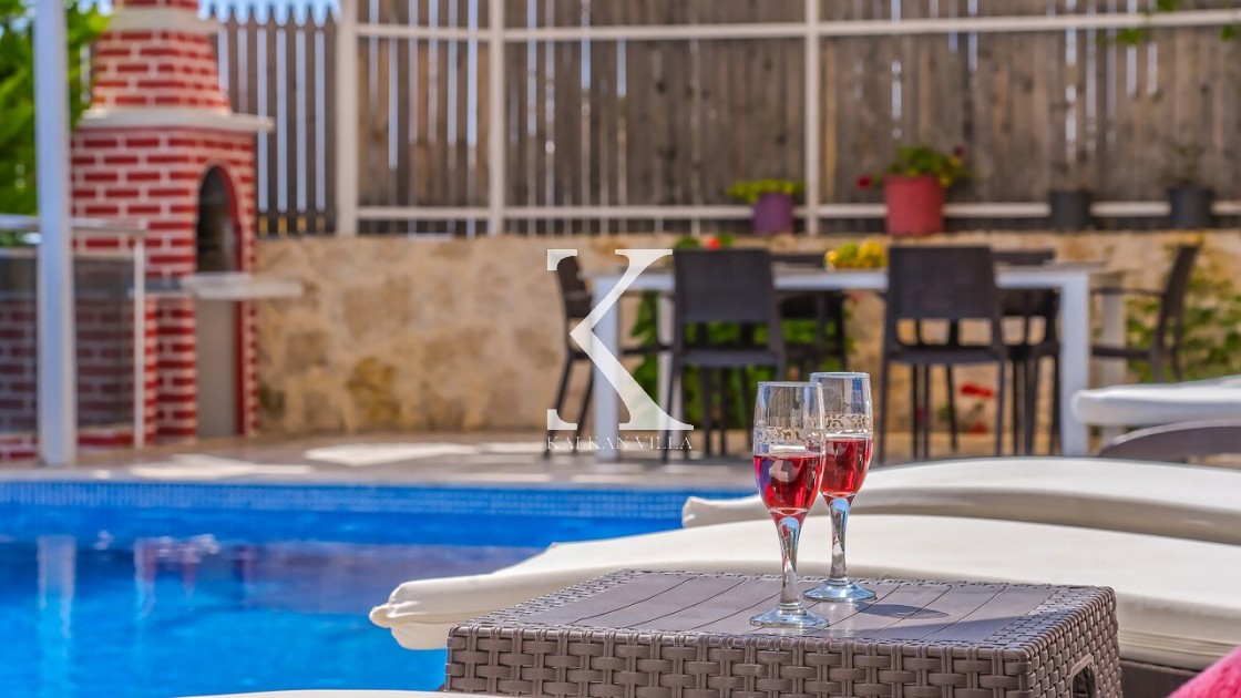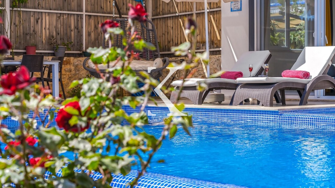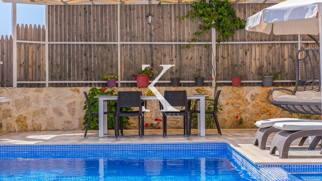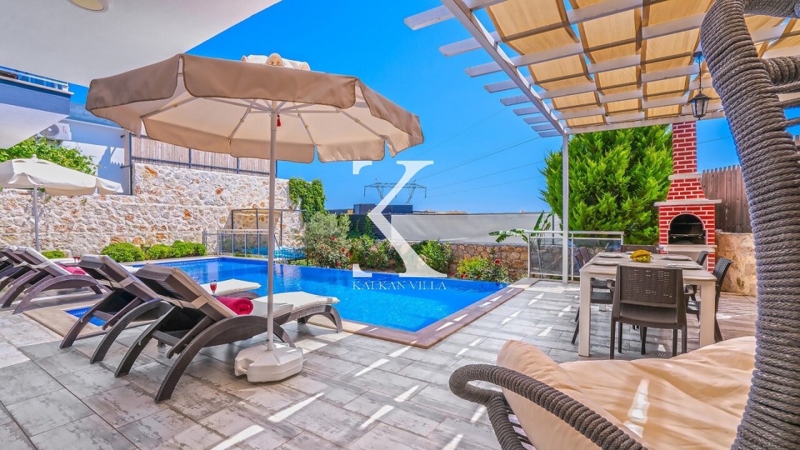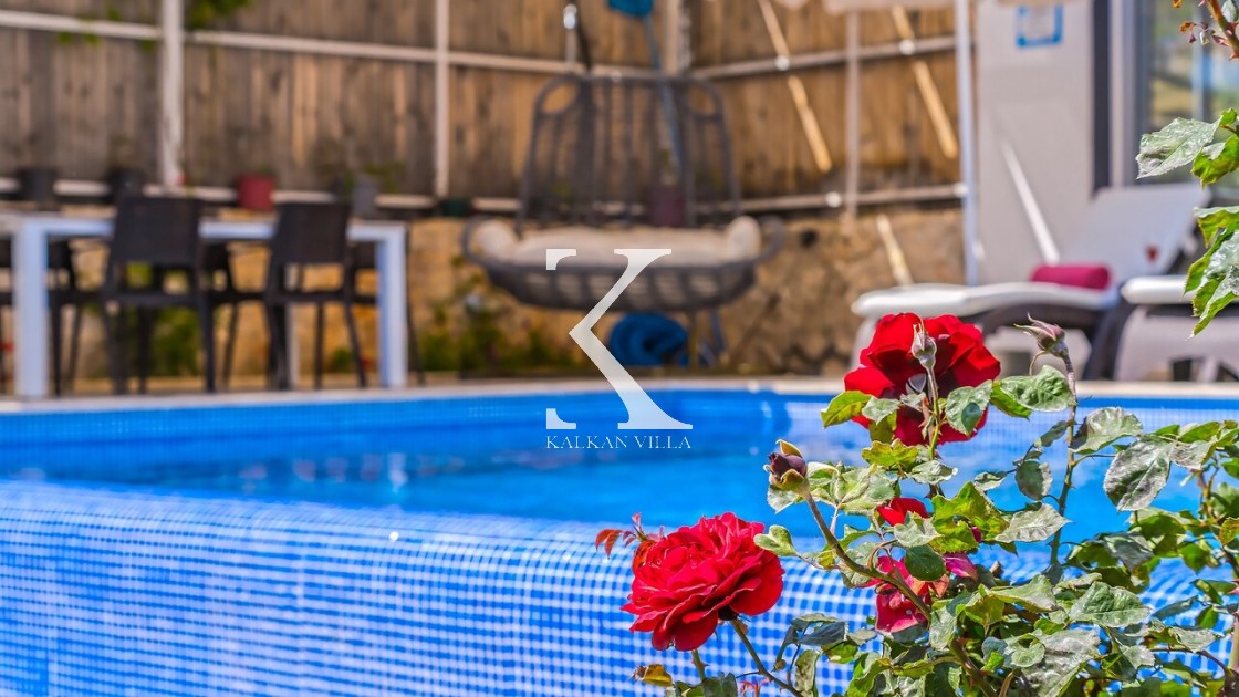Villamızın bahçesinde özel yüzme havuzu, şezlonglar, oturma alanı, yemek masası ve barbekü bölümü bulunmaktadır. Havuz önü perdeleme sistemi sayesinde havuz alanı korunaklı hale getirilmiş olup, muhafazakâr aileler ve çekirdek aileler için son derece uygundur.