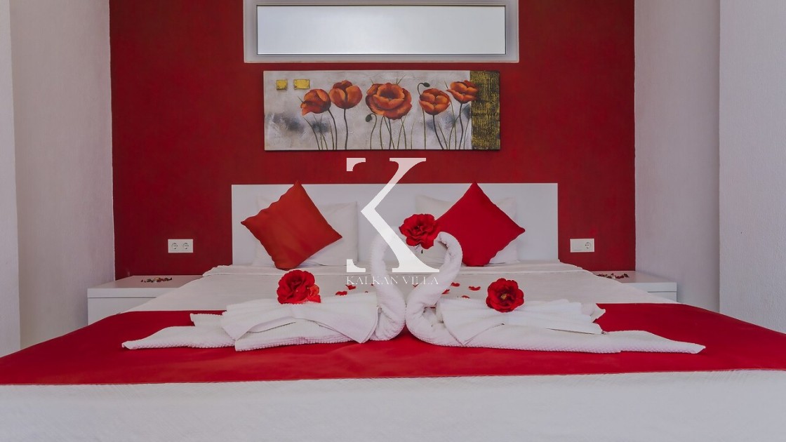 Çift kişilik yatak, komodin, klima, elbise dolabı, makyaj masası, banyo ve tuvalet bulunmaktadır.