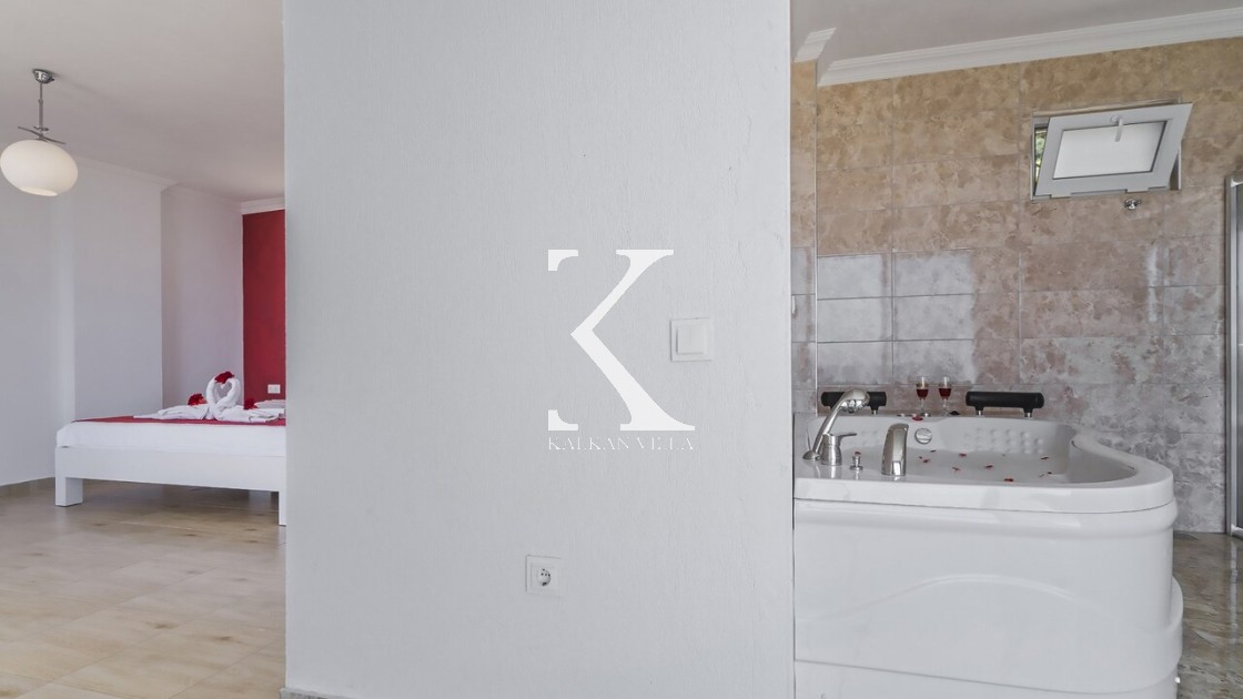 Çift kişilik yatak, komodin, klima, elbise dolabı, makyaj masası, jakuzi, banyo ve tuvalet bulunmaktadır.