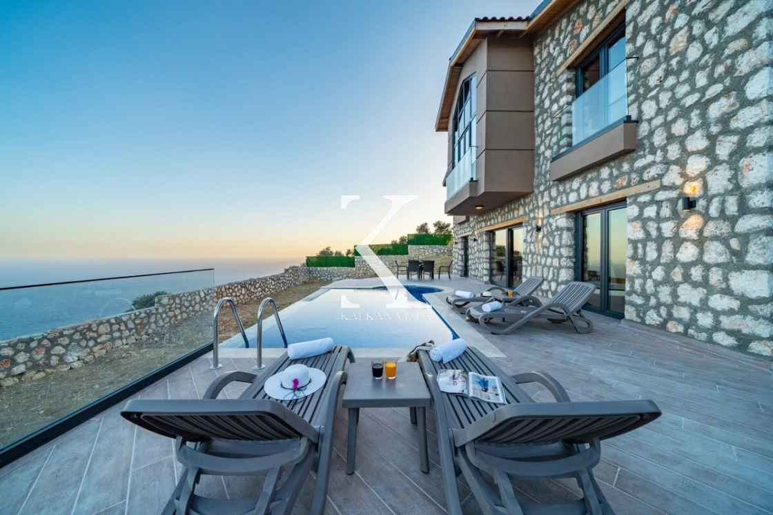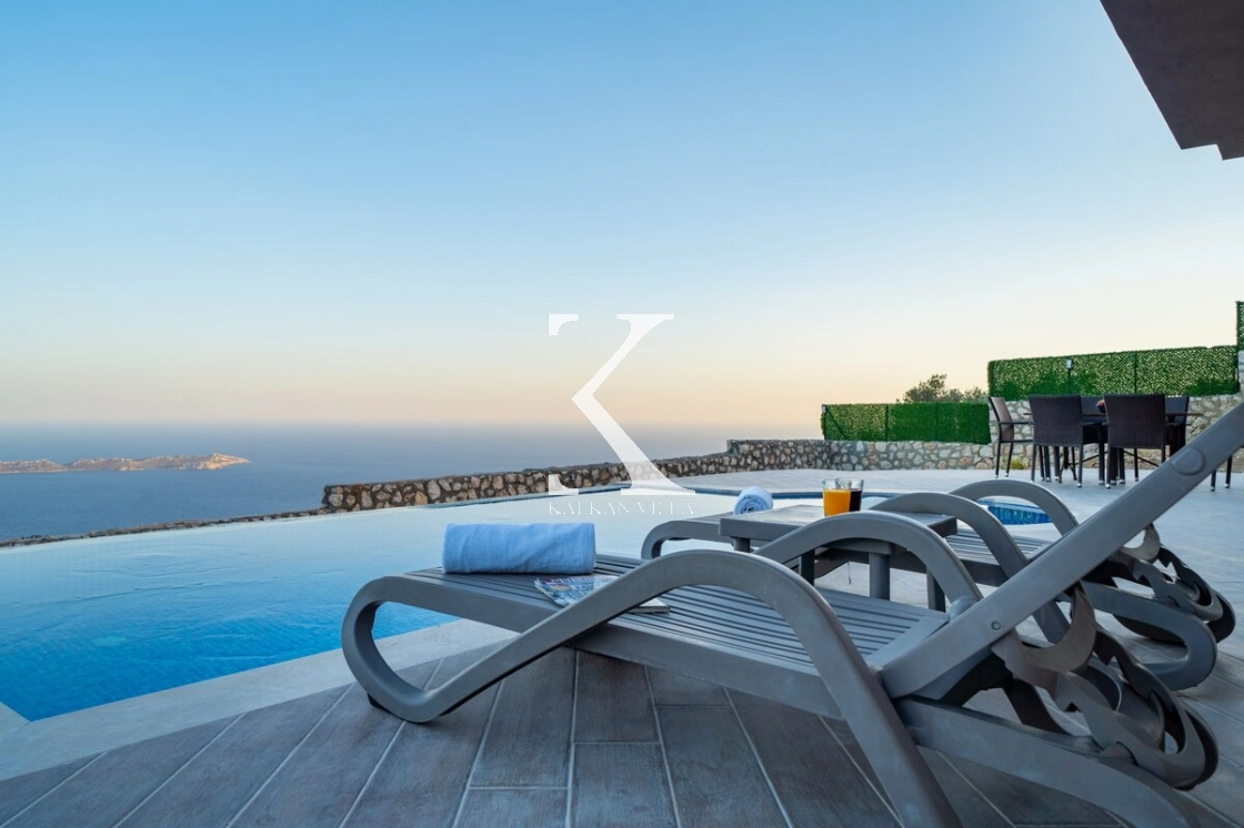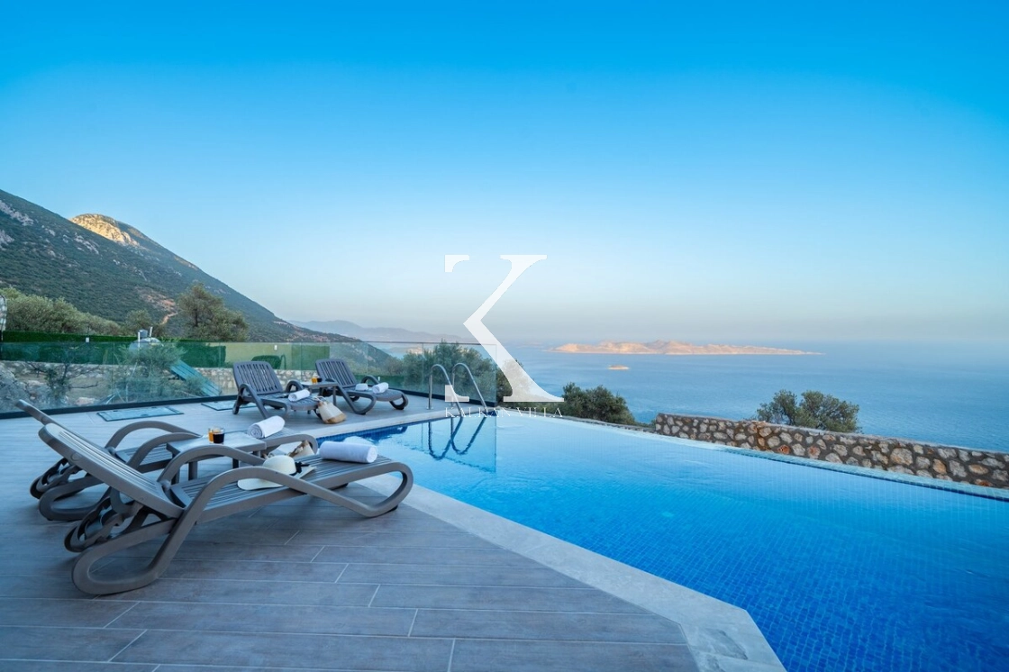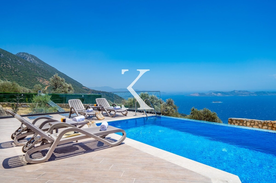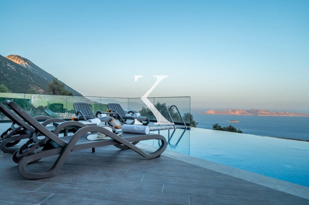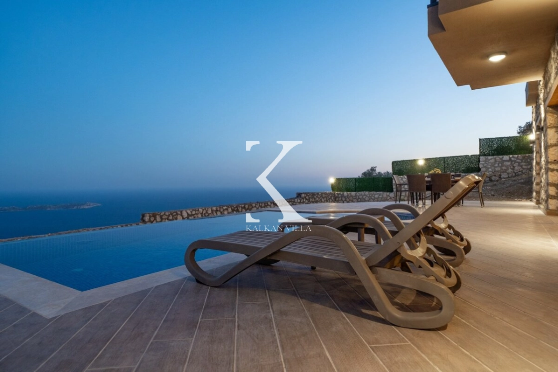 Panoramik Akdeniz manzarası, modern mimarisi ve ferah yaşam alanları sayesinde Villa Kınalı Ada, Kaş’ta deniz manzaralı lüks villa arayan misafirler için ideal bir tercihtir.