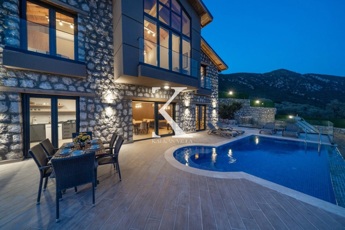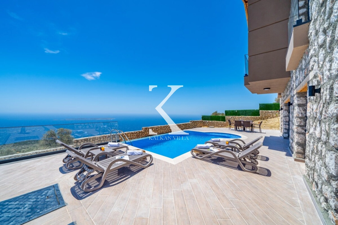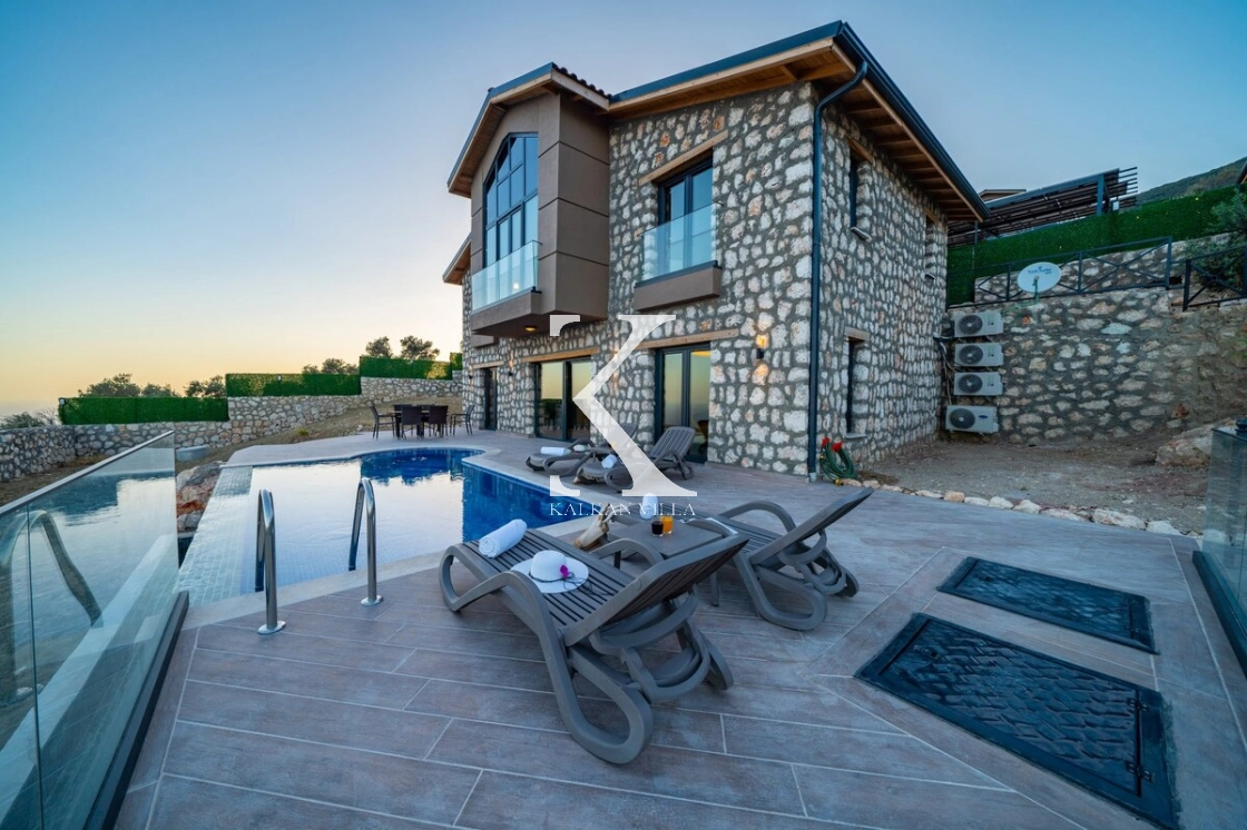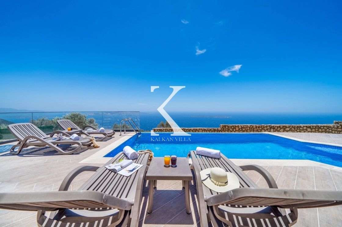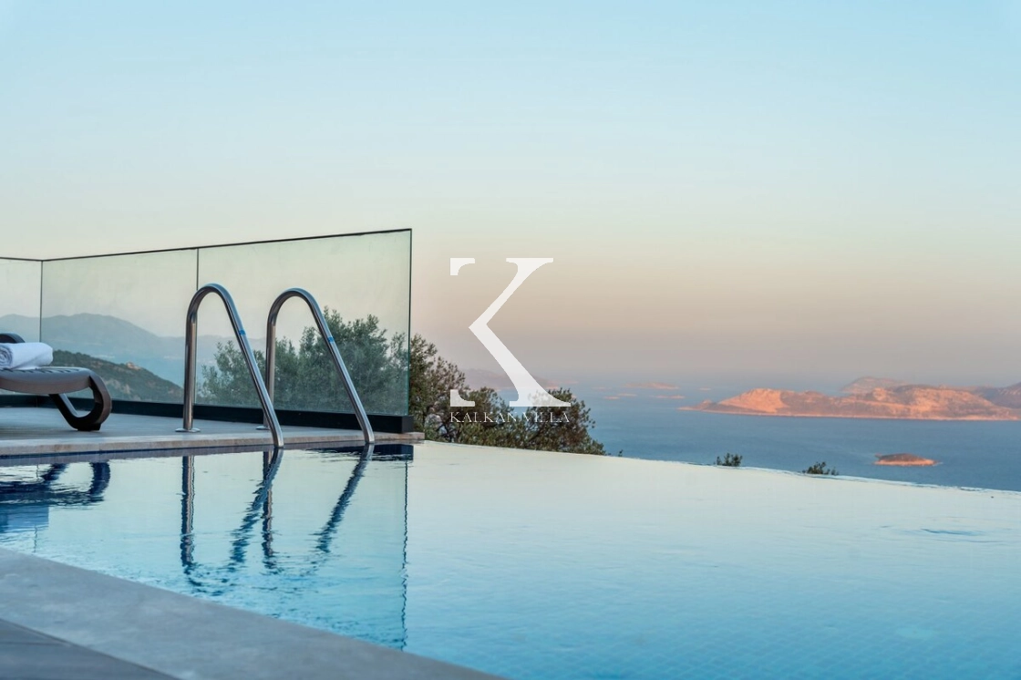 Panoramik Akdeniz manzarası, modern mimarisi ve ferah yaşam alanları sayesinde Villa Kınalı Ada, Kaş’ta deniz manzaralı lüks villa arayan misafirler için ideal bir tercihtir.