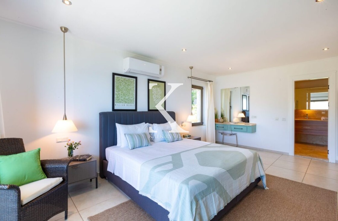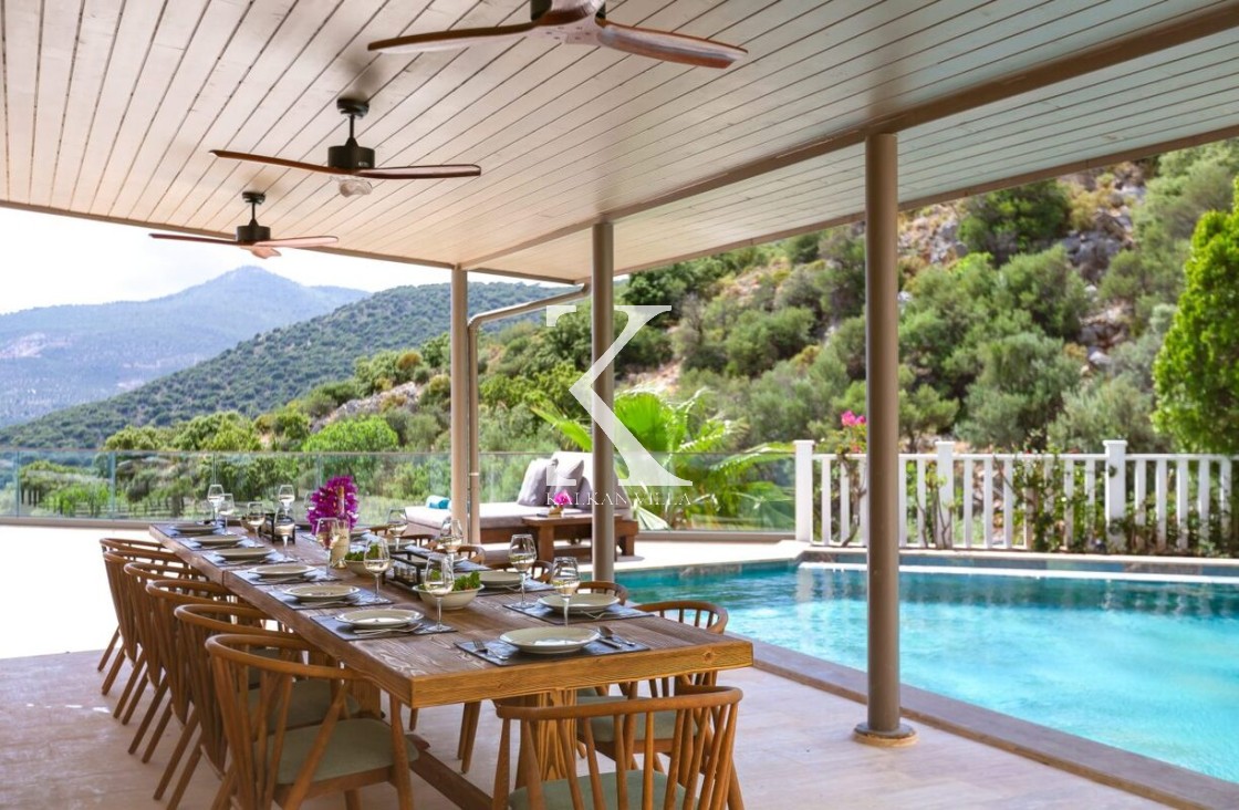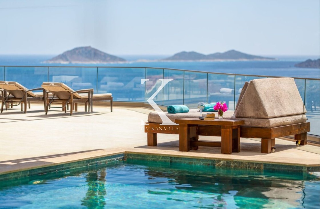 Villa Korsan, Kalkan’ın prestijli bölgelerinden Kalamar’da, yamaca yakın konumlanmış, Yılan ve Fare Adaları’nı seyredebileceğiniz benzersiz manzaraya sahip lüks bir villadır.