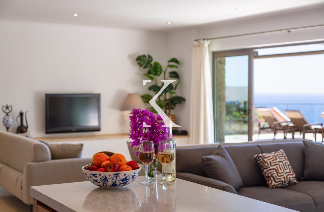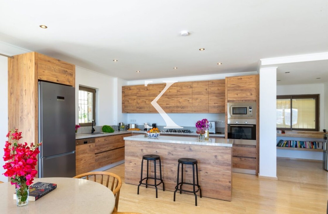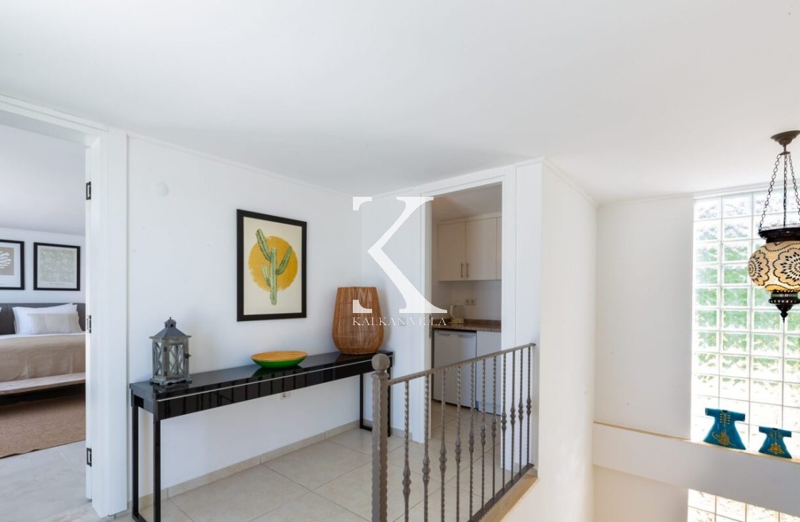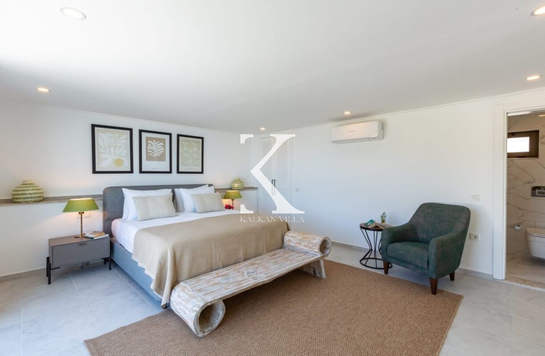 Villanın açık plan mimarisi, Akdeniz manzarasını içeri taşıyacak şekilde tasarlanmış; aydınlık, havadar ve ferah yaşam alanları ile öne çıkar. Villa Korsan, bulunduğu konum itibarıyla Kalamar Koyu’na ve adalara bakan bir yamaçta, yolun sonunda sakin ve huzurlu bir noktada yer alır.
