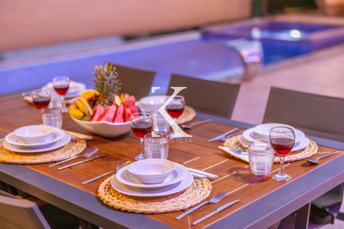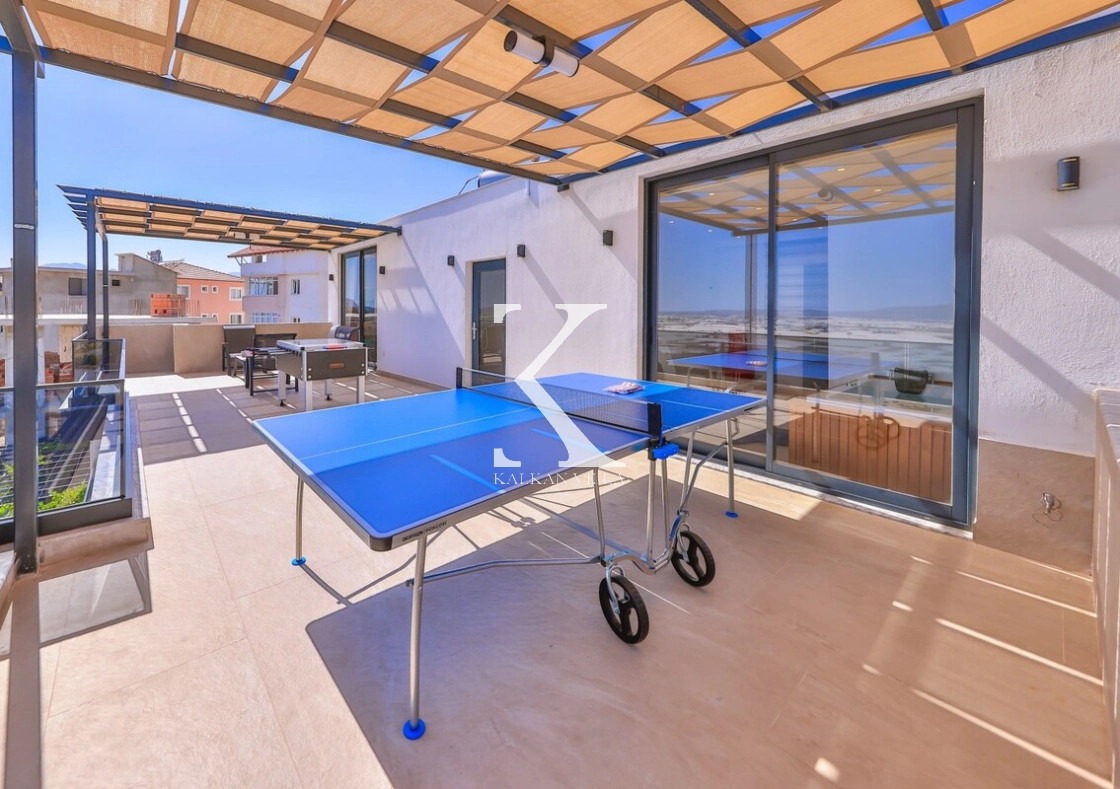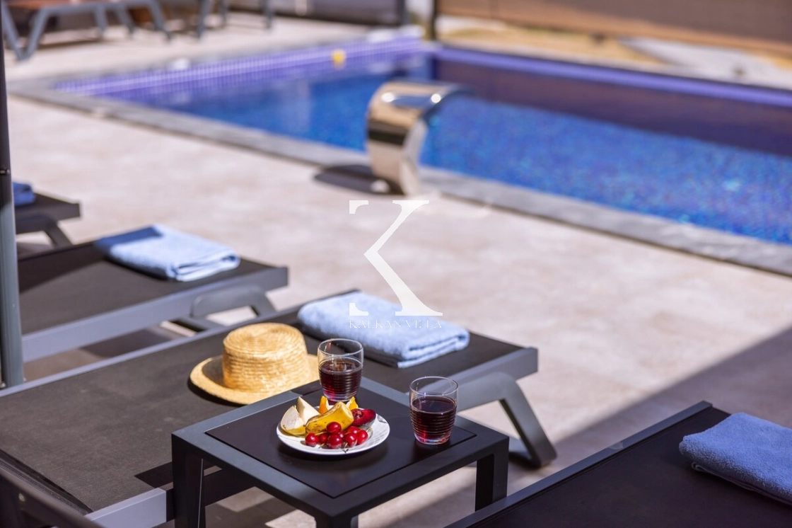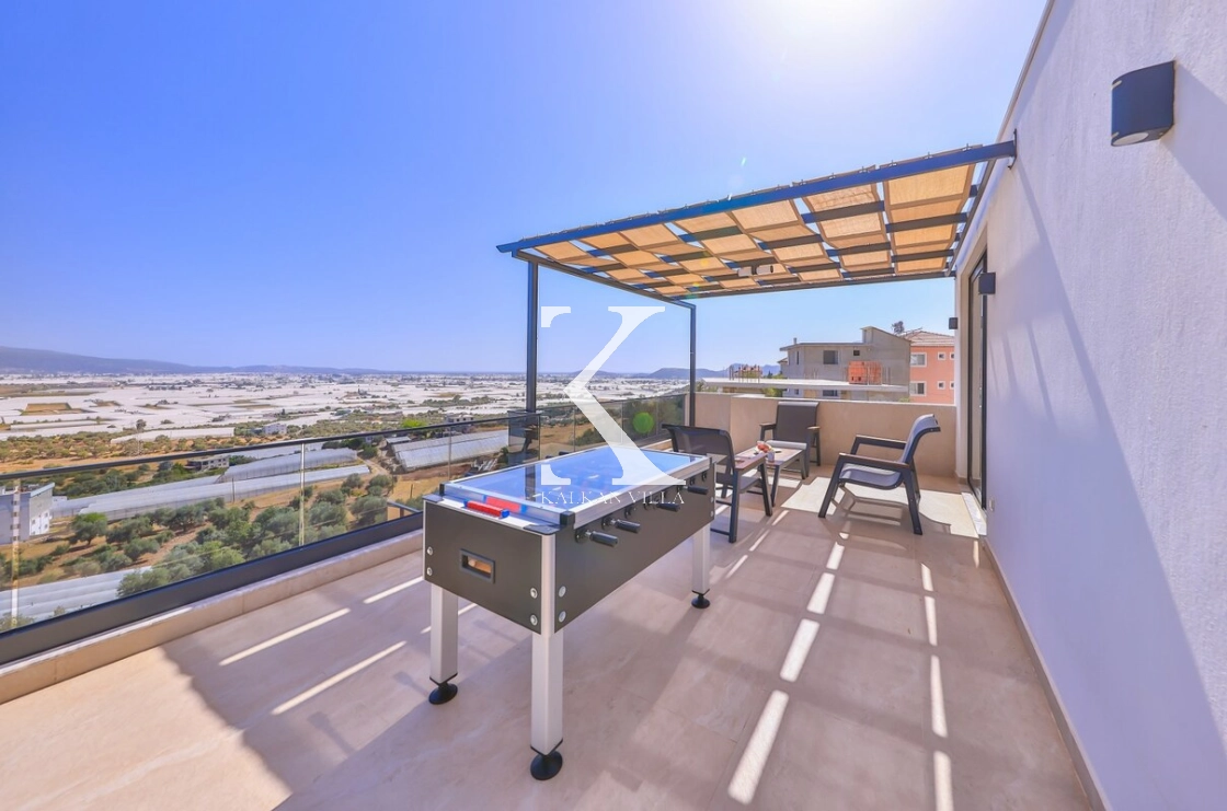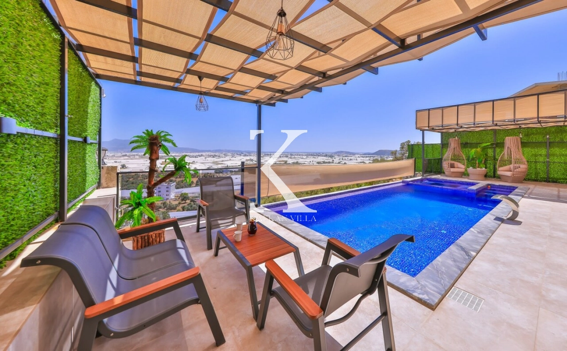 Doğa manzarasına hâkim konumu sayesinde sakin ve gözlerden uzak bir atmosfer sunan villada; üst katta jakuzi ve sauna, deniz ve doğa manzaralı geniş teras, masa tenisi ve langırt, korunaklı özel yüzme havuzu gibi ayrıcalıklı detaylar bulunmaktadır. Bahçede yer alan salıncak, havuz içi jakuzi, şezlonglar ve barbekü alanı ile tatilinizi hem dinlendirici hem de eğlenceli hale getirebilirsiniz.