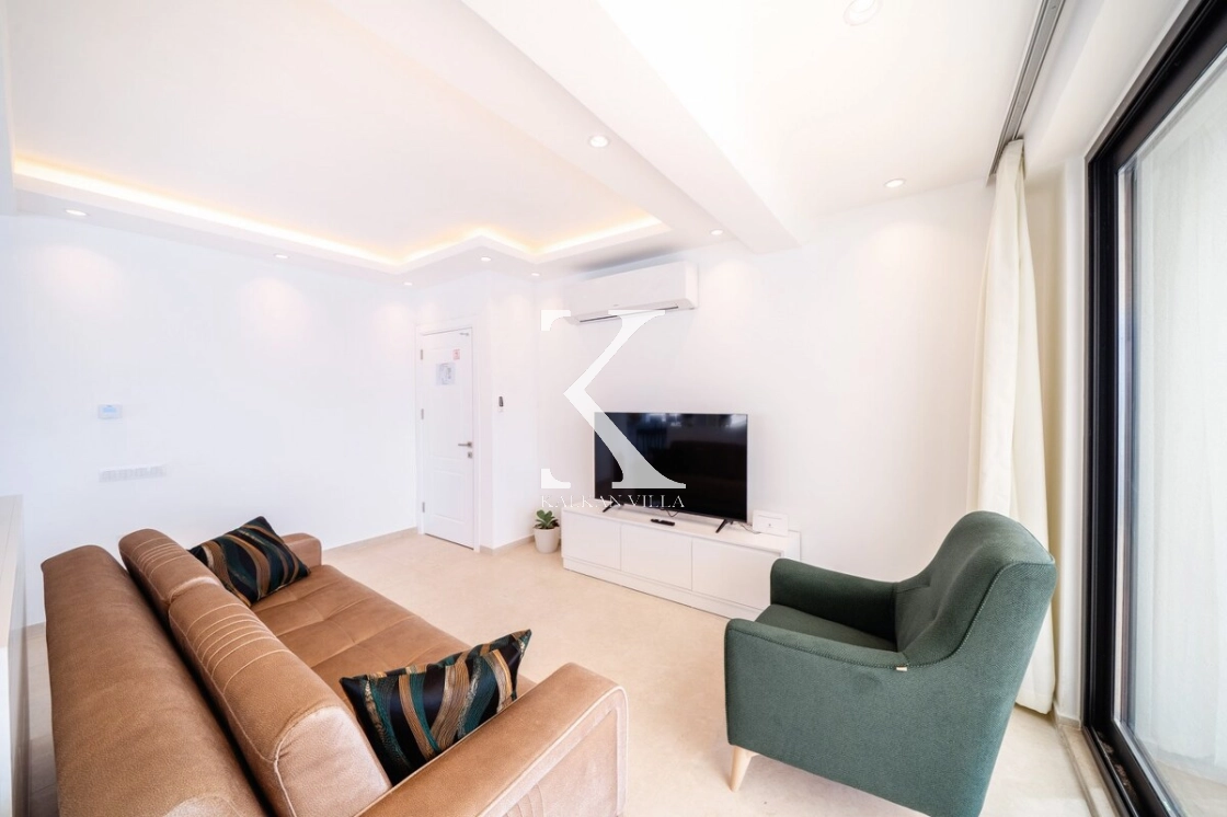 Nefes kesici deniz manzarasına sahip salonda konforlu ve lüks oturma grubu, TV ve klima yer almaktadır. Salondan havuz terasına çıkış mevcuttur.
