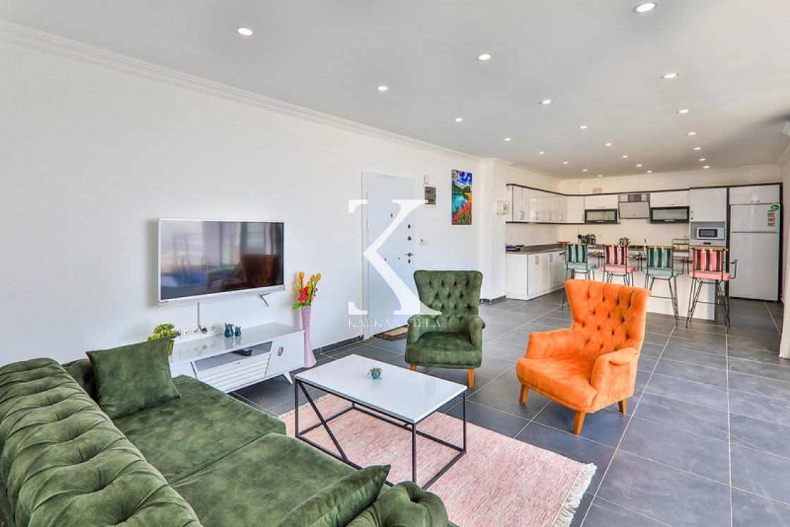 Modern eşyalar ile dekore edilmiş salonda;