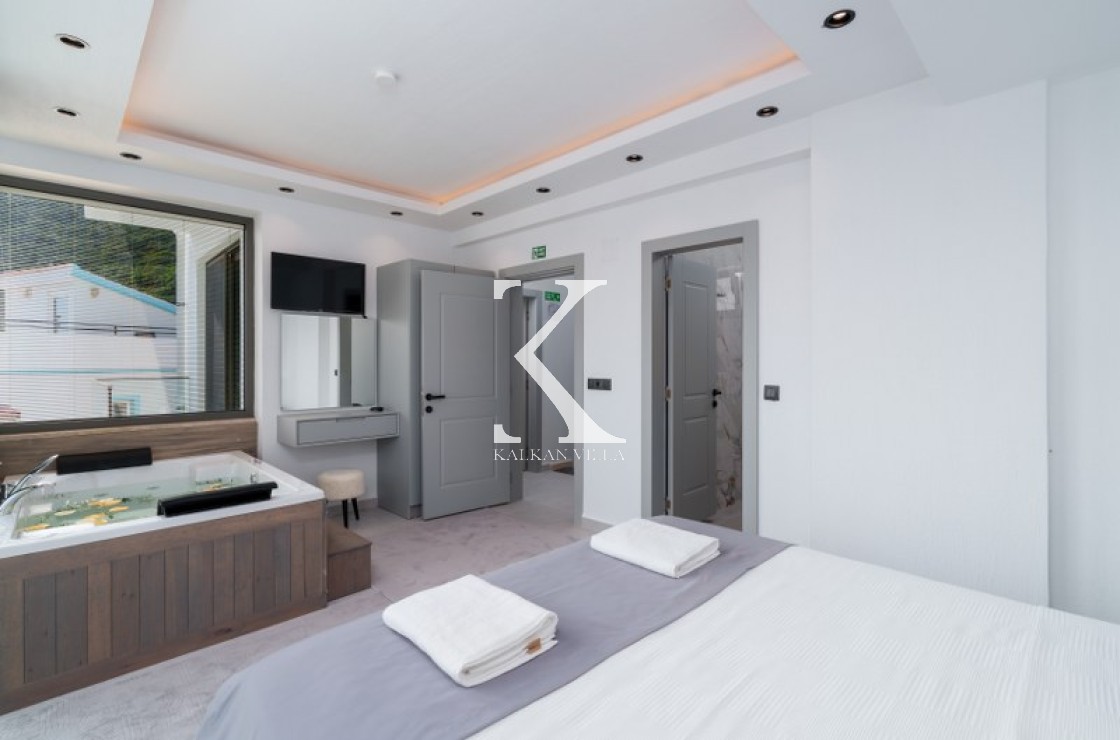 1 adet çift kişilik yatak, TV, komodin, makyaj masası, jakuzi, klima, banyo ve tuvalet bulunmaktadır.