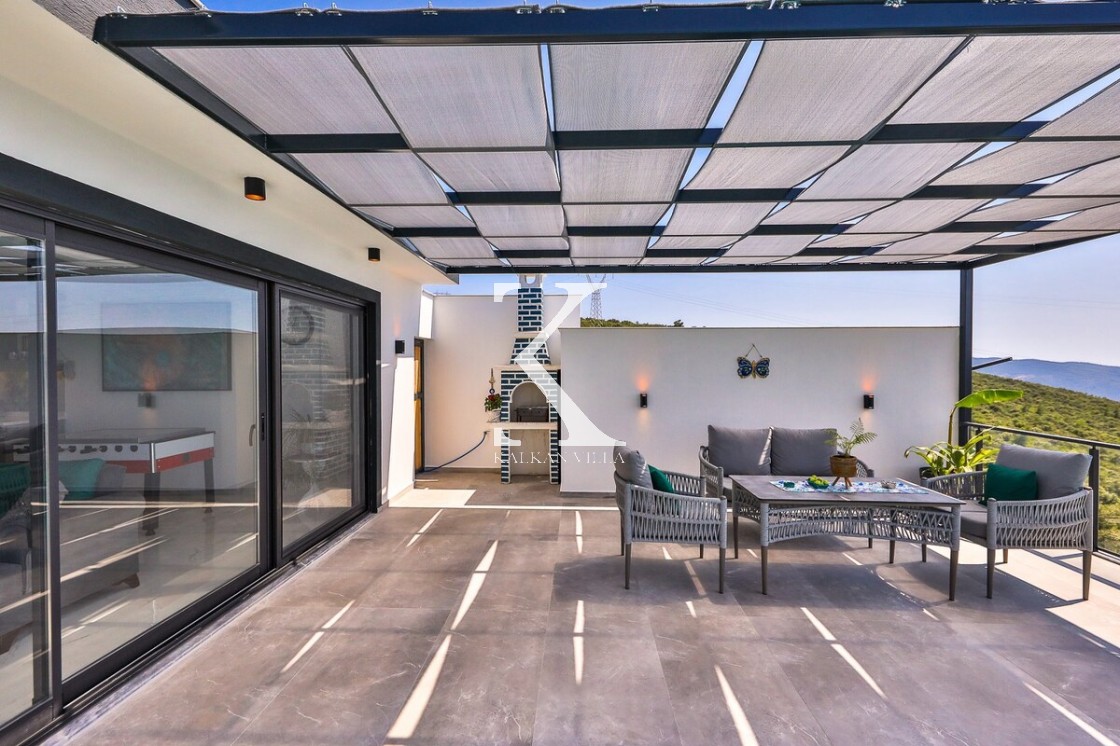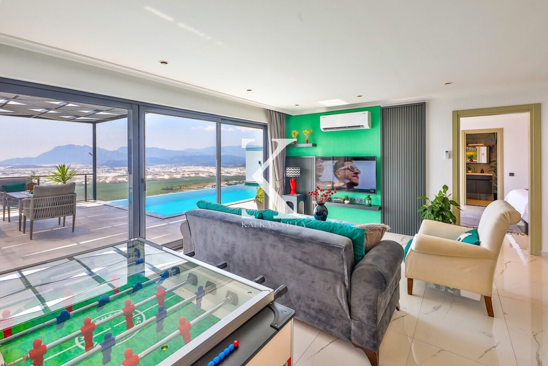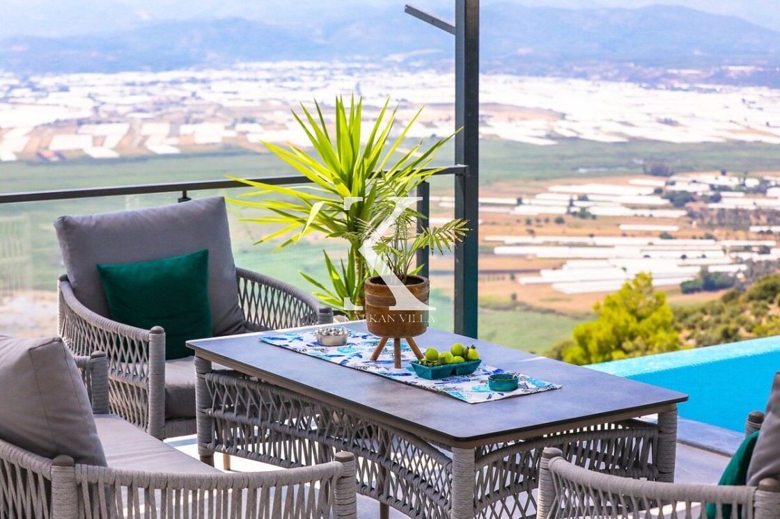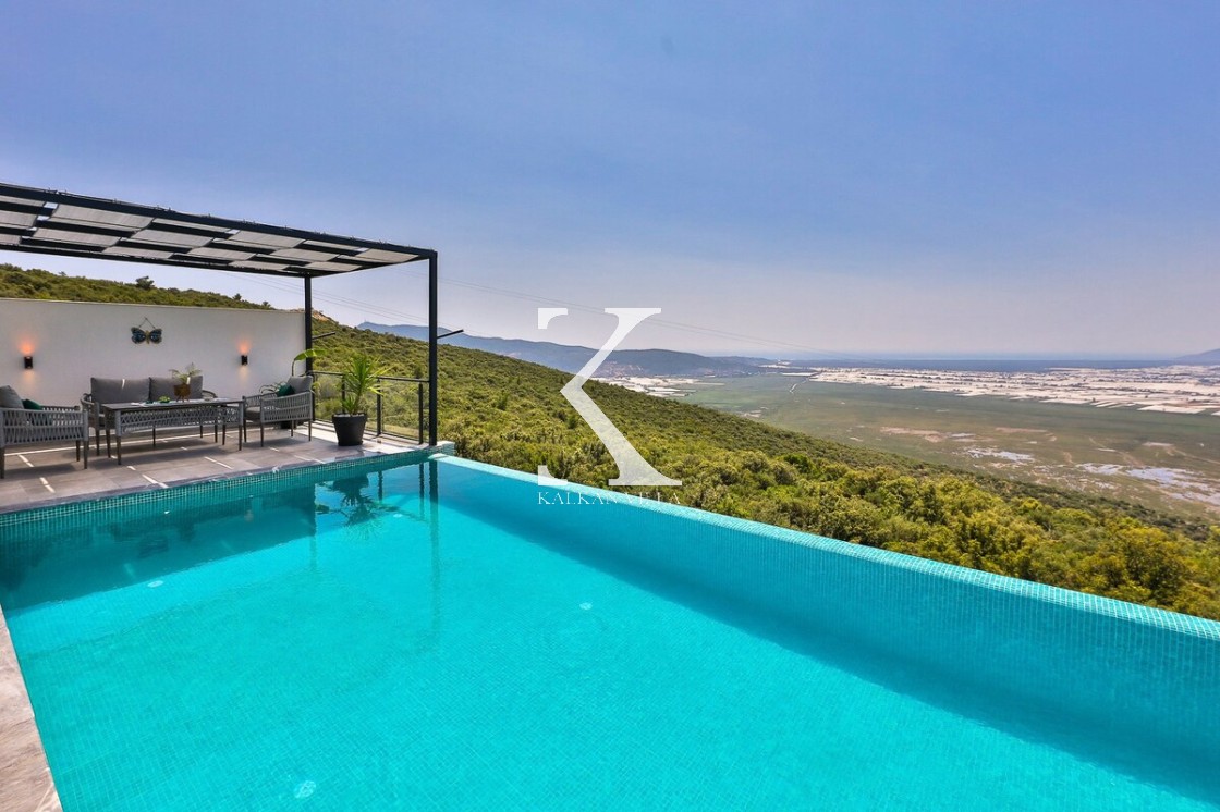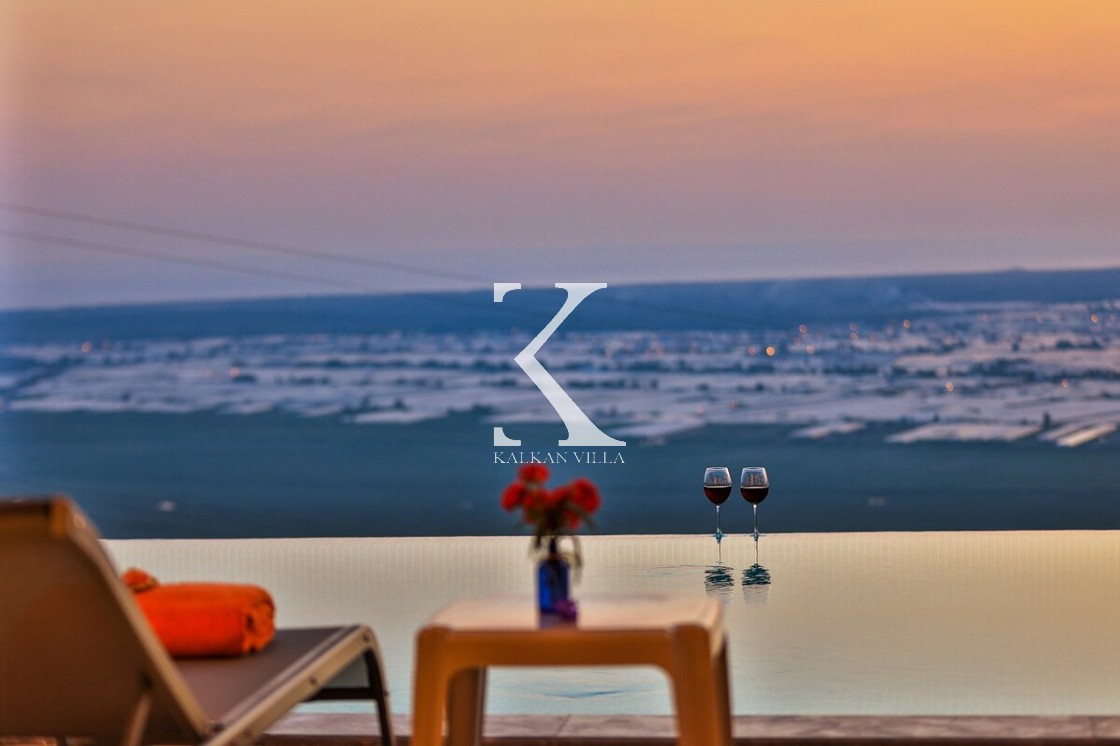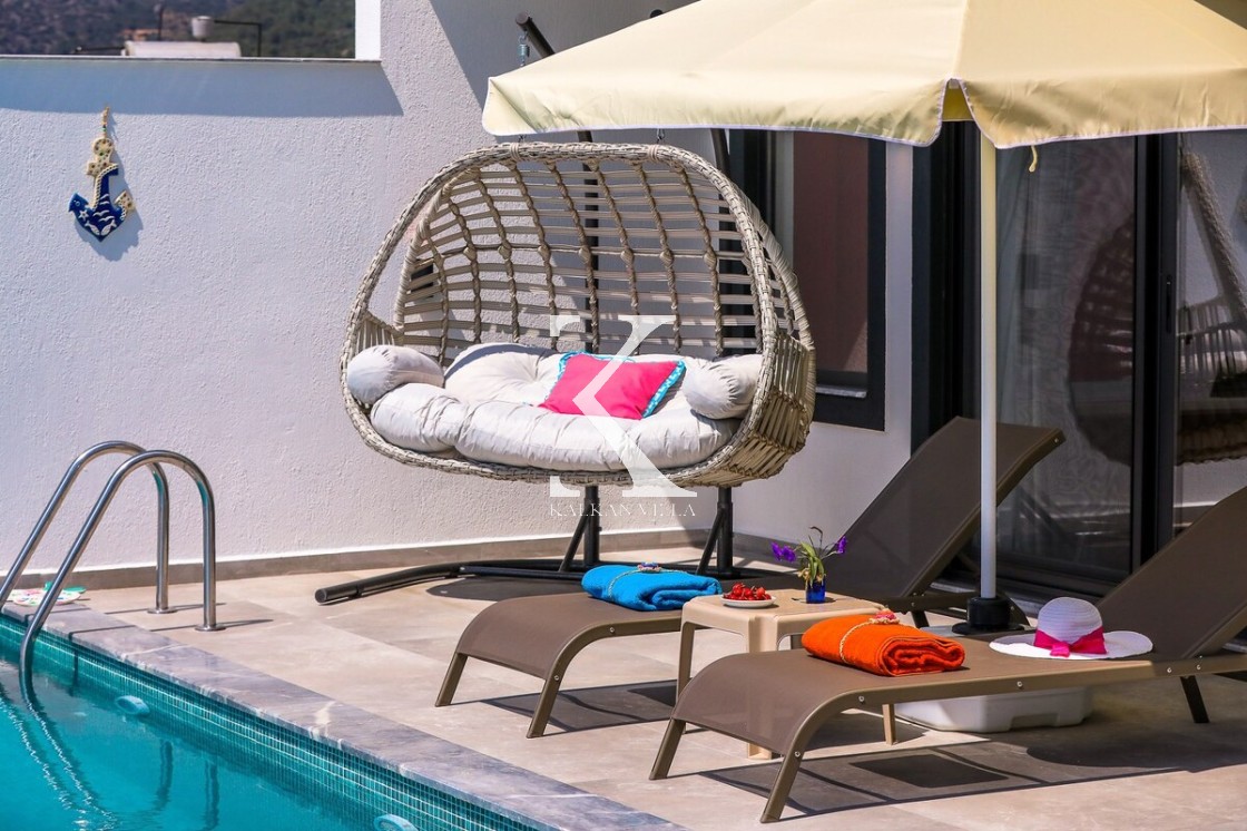 Muhteşem doğa manzarasına sahip villanın bahçesi korunaklıdır. Bu sayede havuz ve bahçe alanı dışarıdan görünmez ve tamamen size özel bir kullanım alanı sağlar. Havuz terasında; serinleyebileceğiniz özel yüzme havuzu, salıncak, manzarayı seyredeceğiniz rahat bir oturma köşesi ve gün batımı eşliğinde yemek yiyebileceğiniz yemek masası yer almaktadır. Konforunuz için özenle dizayn edilen yatak odasında ise jakuzi bulunmaktadır.