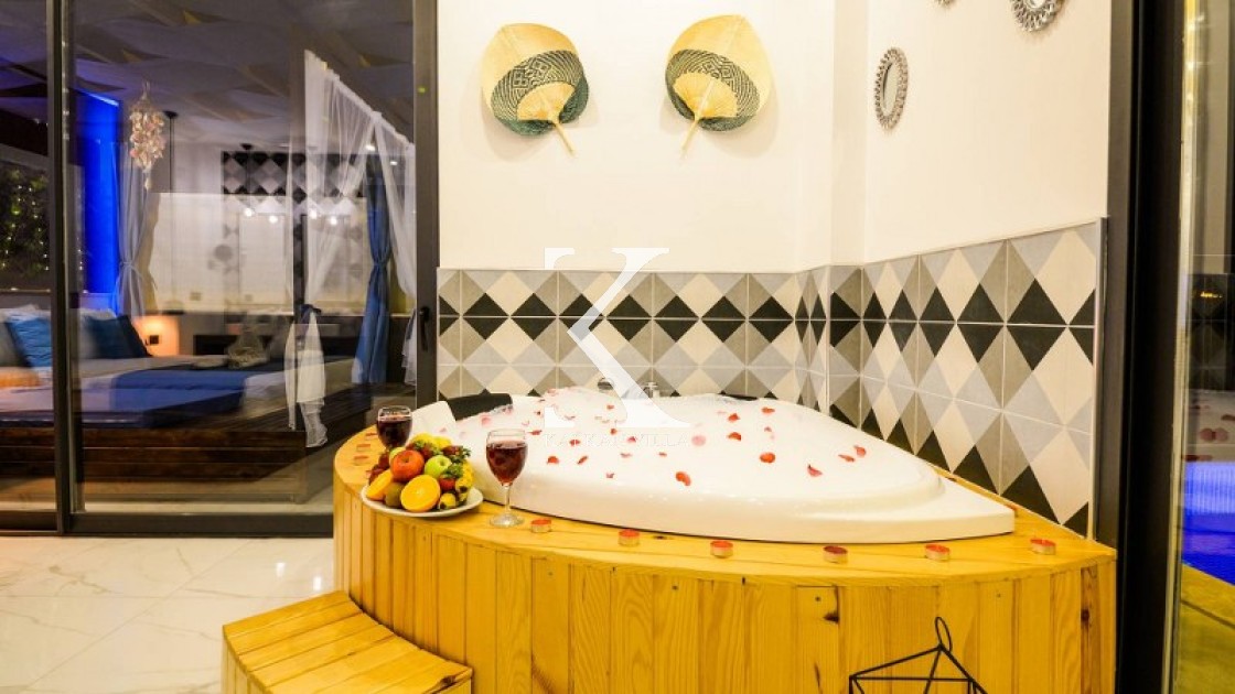Balayı çiftleri için son derece konforlu ve romantik bir oda yapısına sahiptir.