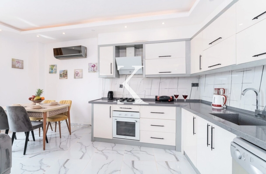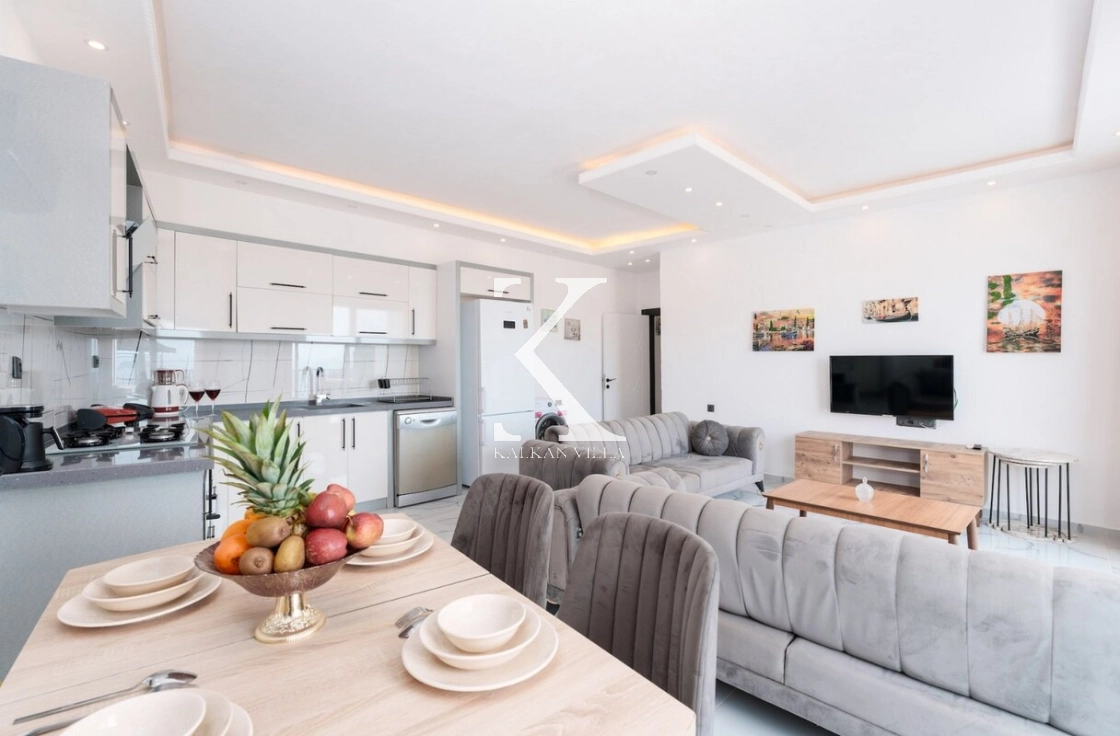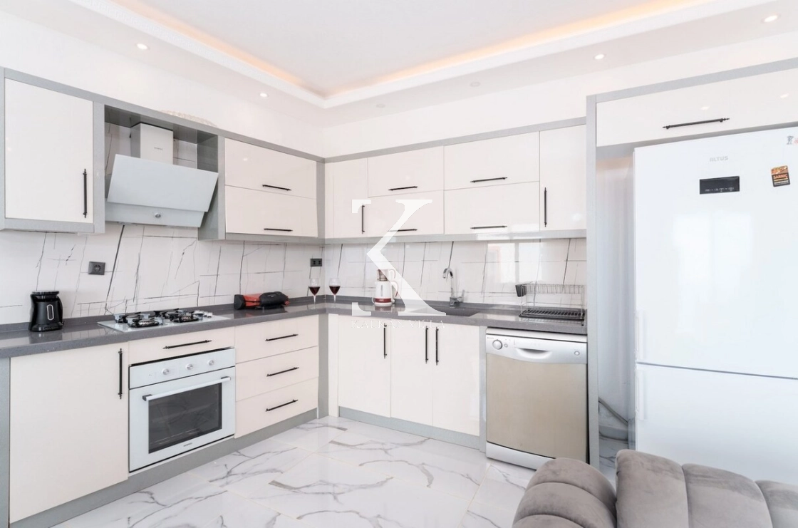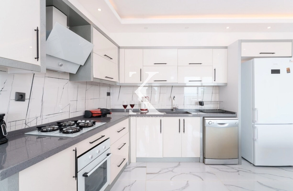 Tam donanımlı modern Amerikan mutfak içerisinde; buzdolabı, bulaşık makinesi, fırın, ocak, mikrodalga fırın, elektrikli su ısıtıcısı, yemek masası, yemek takımları, çatal-bıçak setleri, tencere-tava takımları ve bardaklar yer almaktadır.