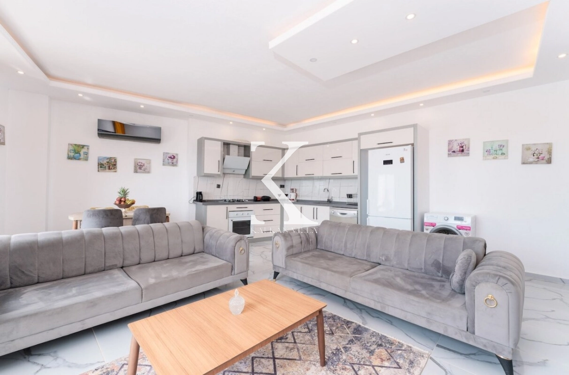 Manzaralı ve ferah salon içerisinde lüks oturma grubu, TV, klima, sehpa ve DVD oynatıcı bulunmaktadır. Salondan havuz terasına doğrudan çıkış mevcuttur.