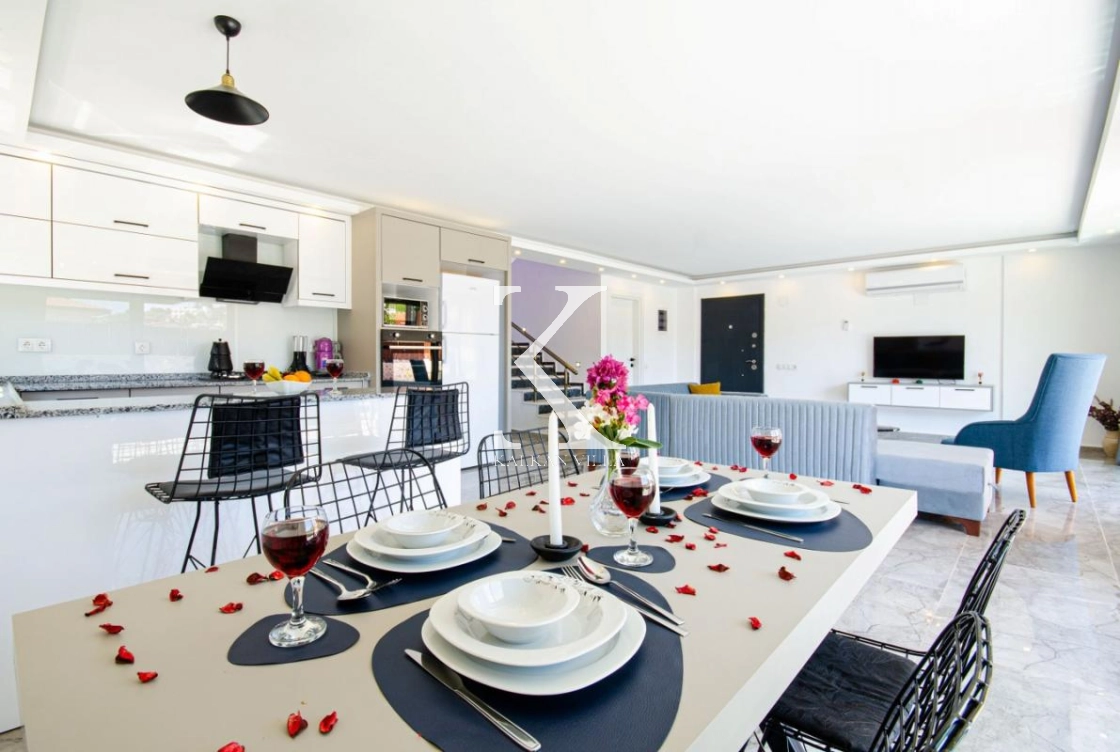Ferah ve aydınlık salon içerisinde konforlu ve lüks oturma grubu, TV, TV ünitesi, klima ve yemek masası bulunmaktadır. Ailenizle keyifli vakit geçirip dinlenebileceğiniz rahat bir yaşam alanı sunmaktadır.