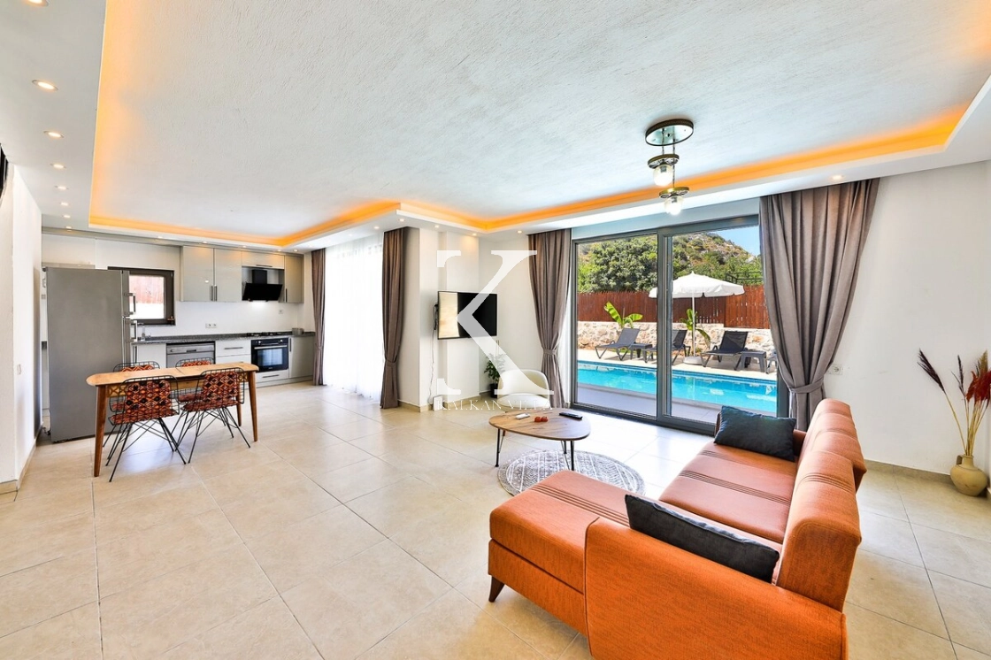 Aydınlık ve ferah salon içerisinde konforlu oturma grubu, TV, DVD oynatıcı ve klima yer almaktadır. Salondan havuz terasına doğrudan geçiş bulunmaktadır.