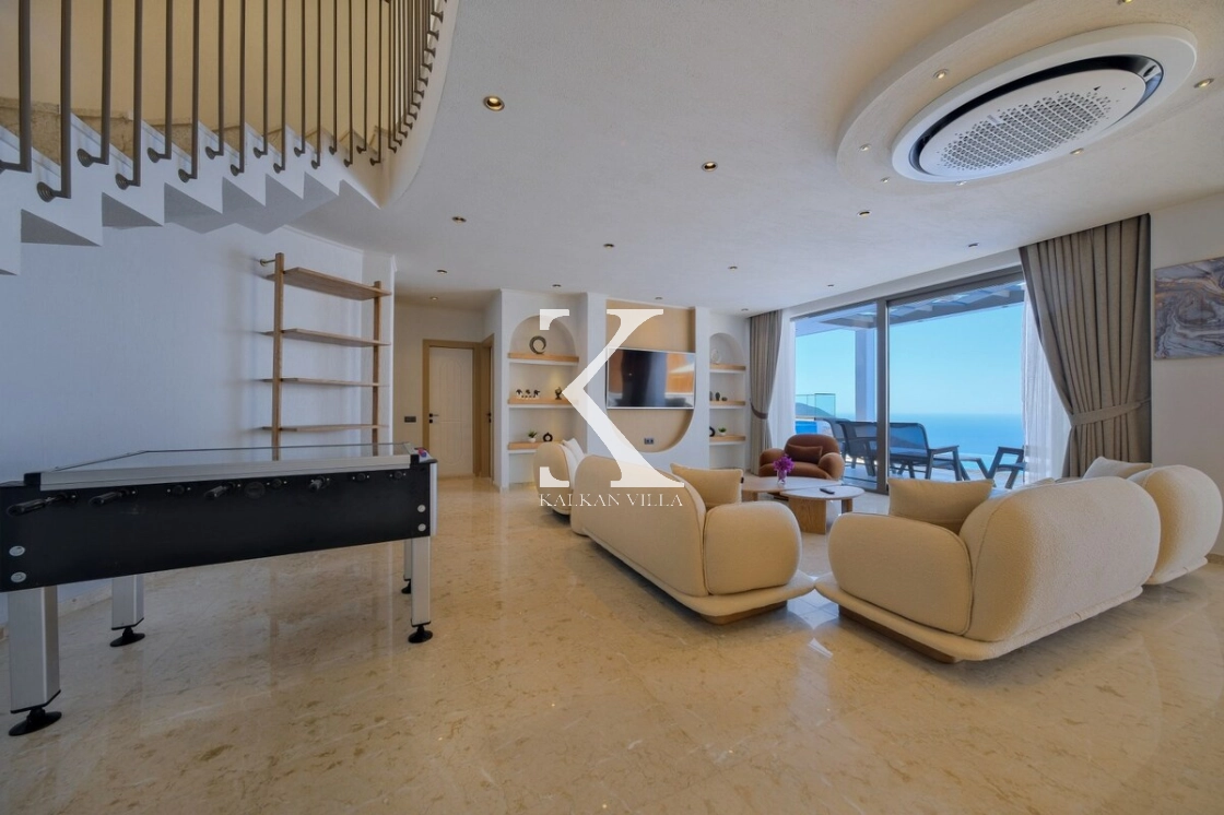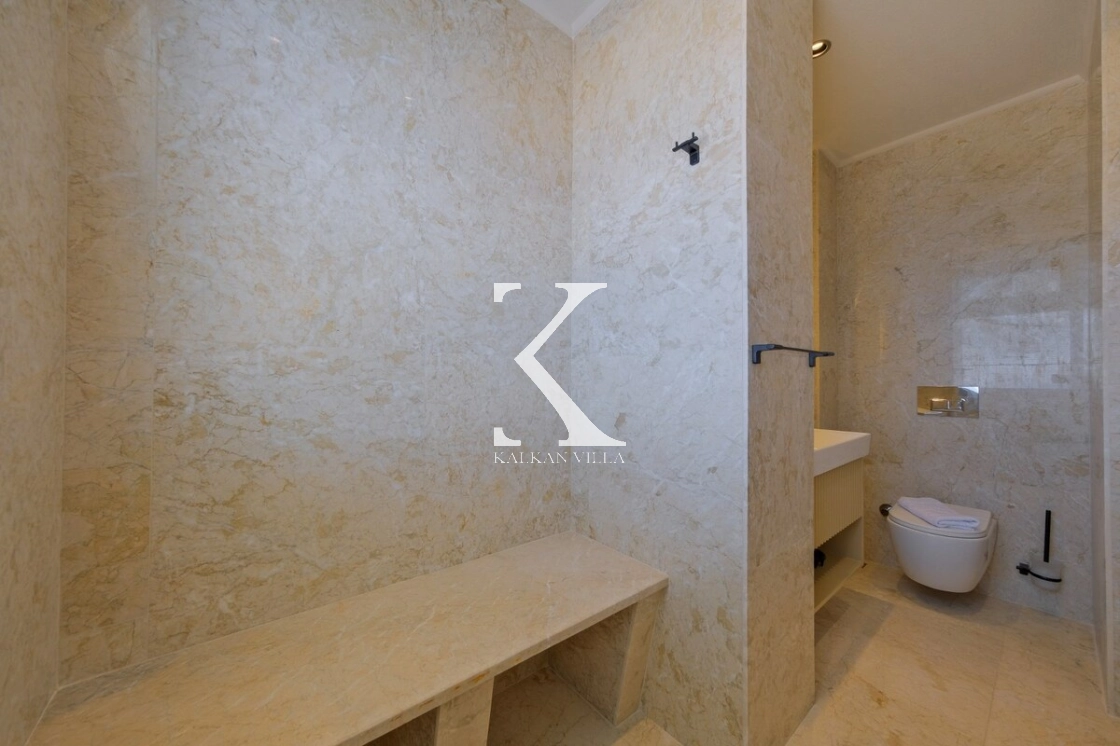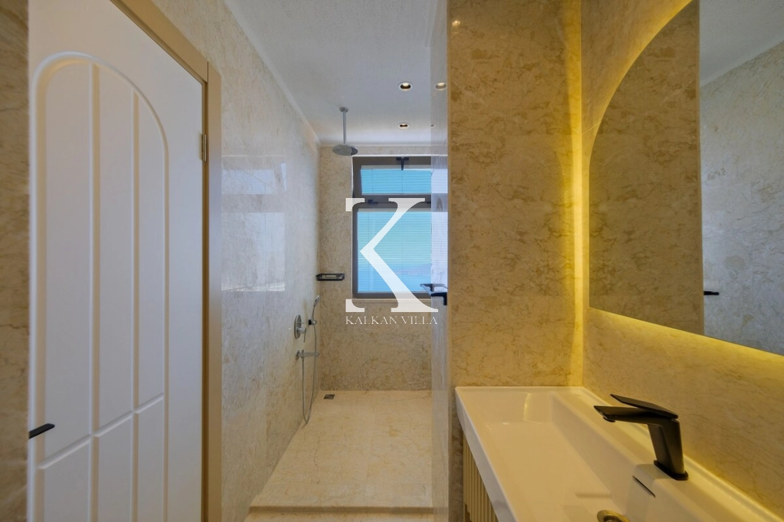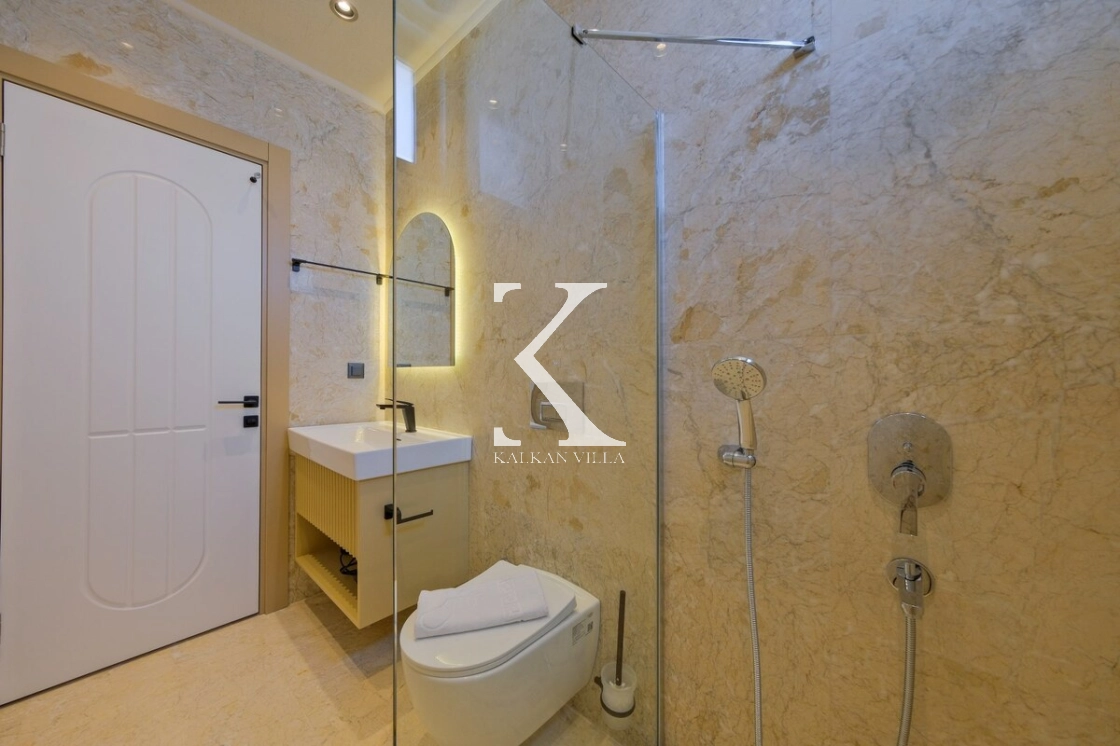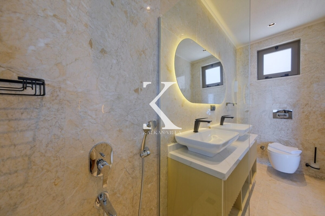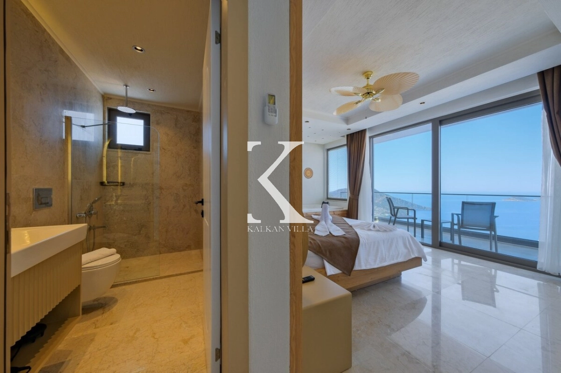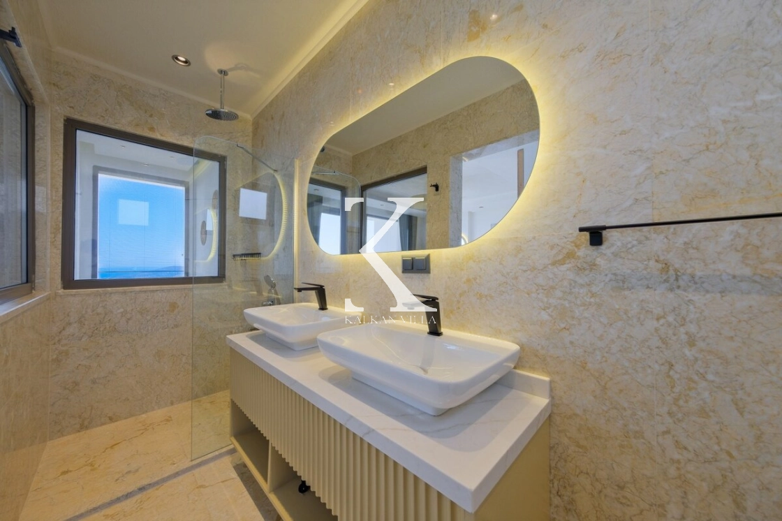 Villanın büyüleyici deniz ve şehir manzarası, özel havuzu, jakuzili havuzu, şelale detayı ve sauna imkânı, konuklarına benzersiz bir tatil deneyimi yaşatır.