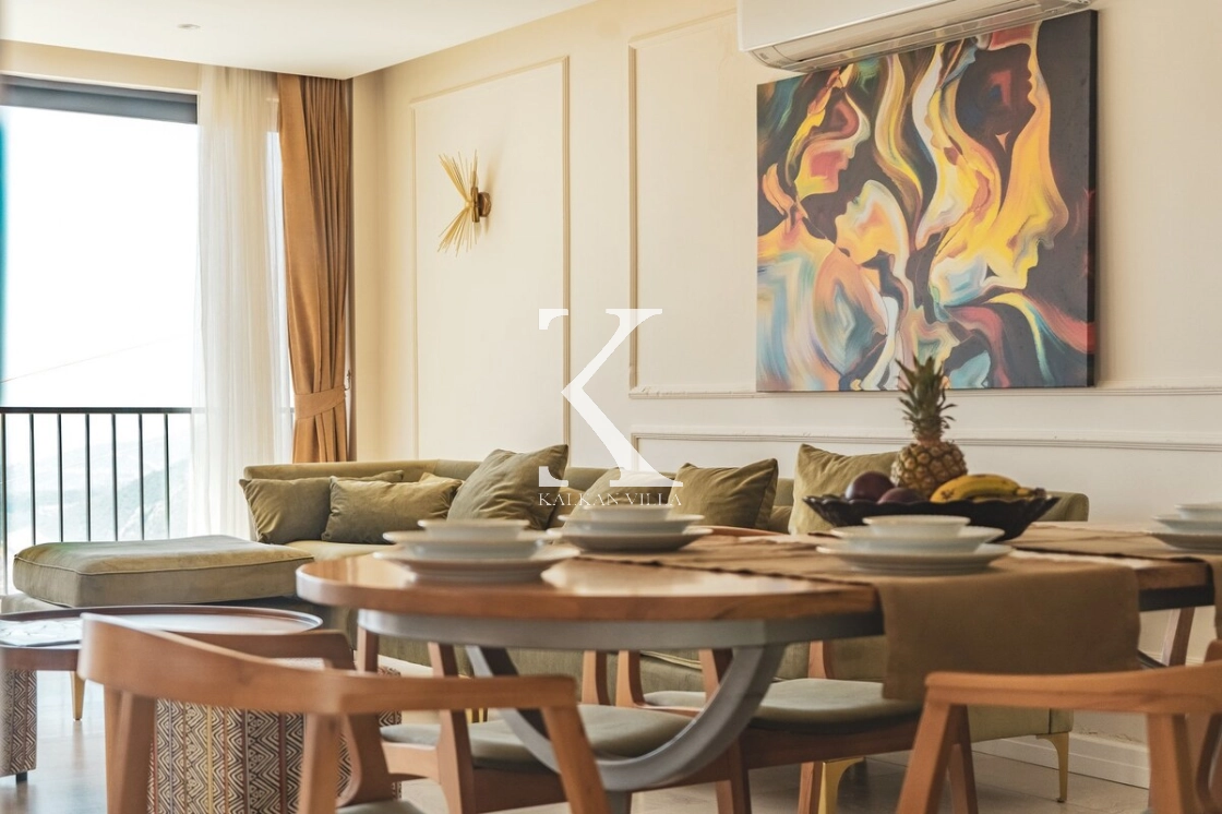 konforlu oturma grubu, uydu TV (LCD), klima, internet (Wi-Fi) ve yemek masası bulunmaktadır.