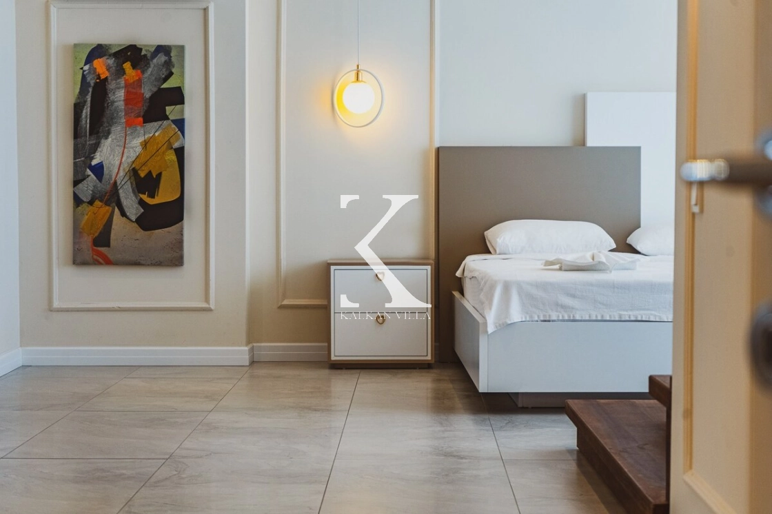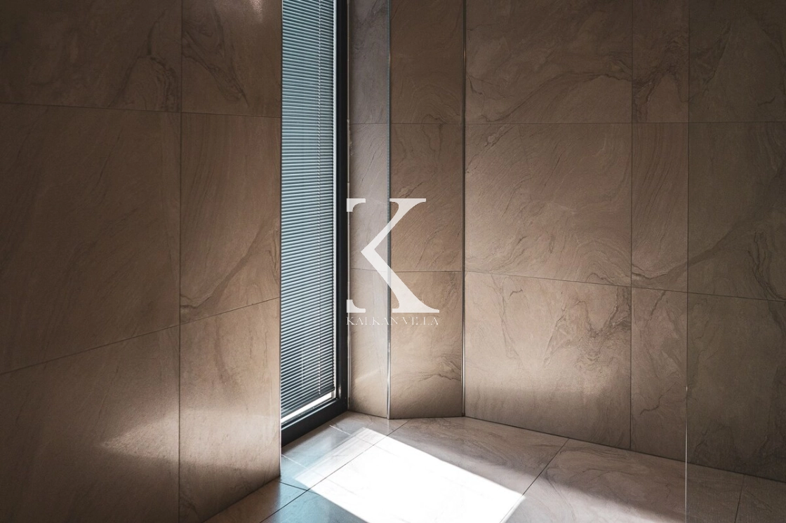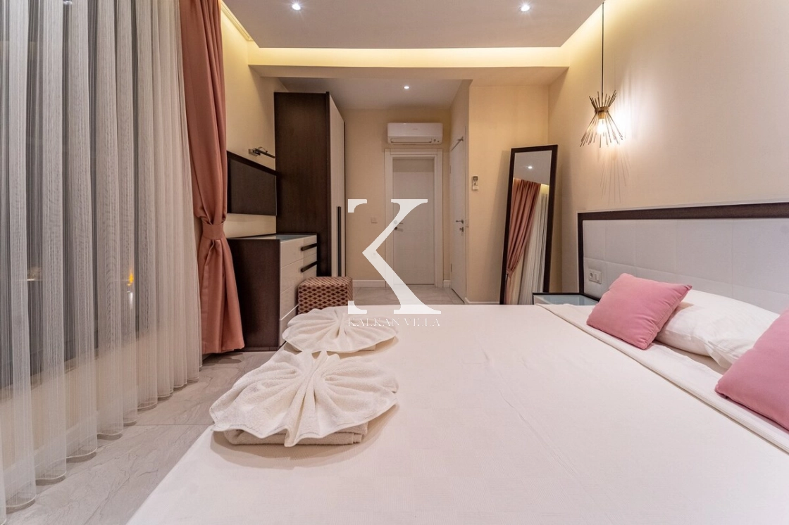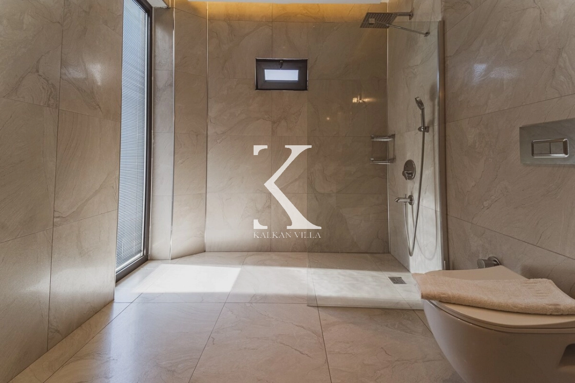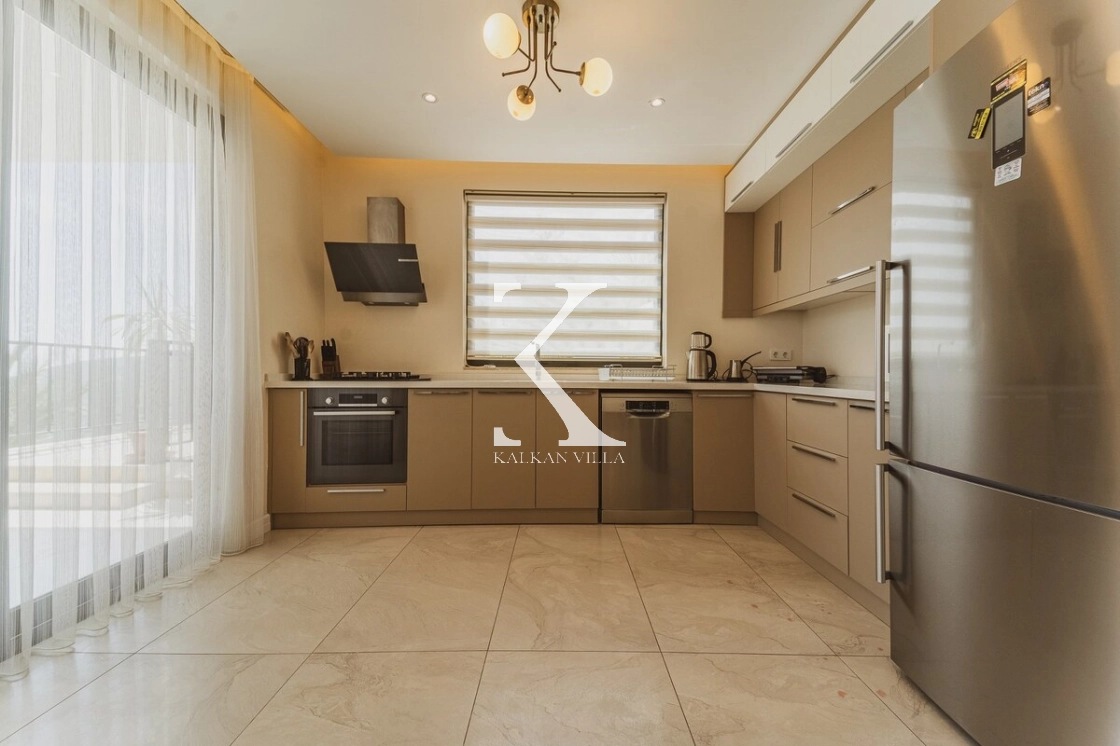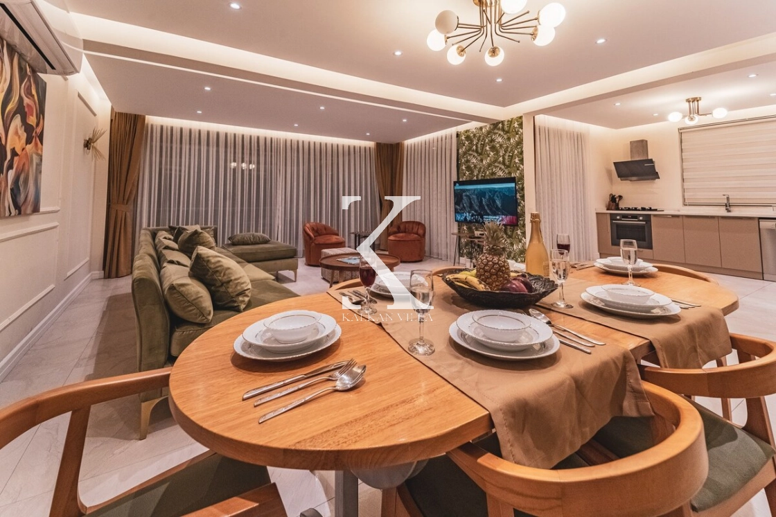 Modern mobilyalarla döşenmiş iç mekânın iki yatak odasında özel jakuzi yer almakta olup, konforlu bir tatil deneyimi yaşatmak için özenle tasarlanmıştır.