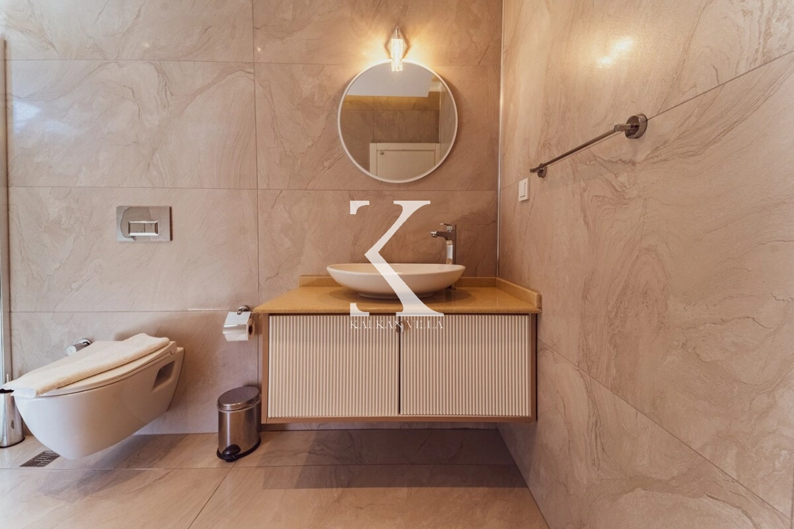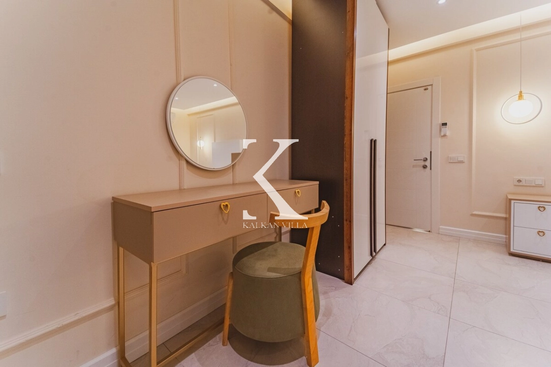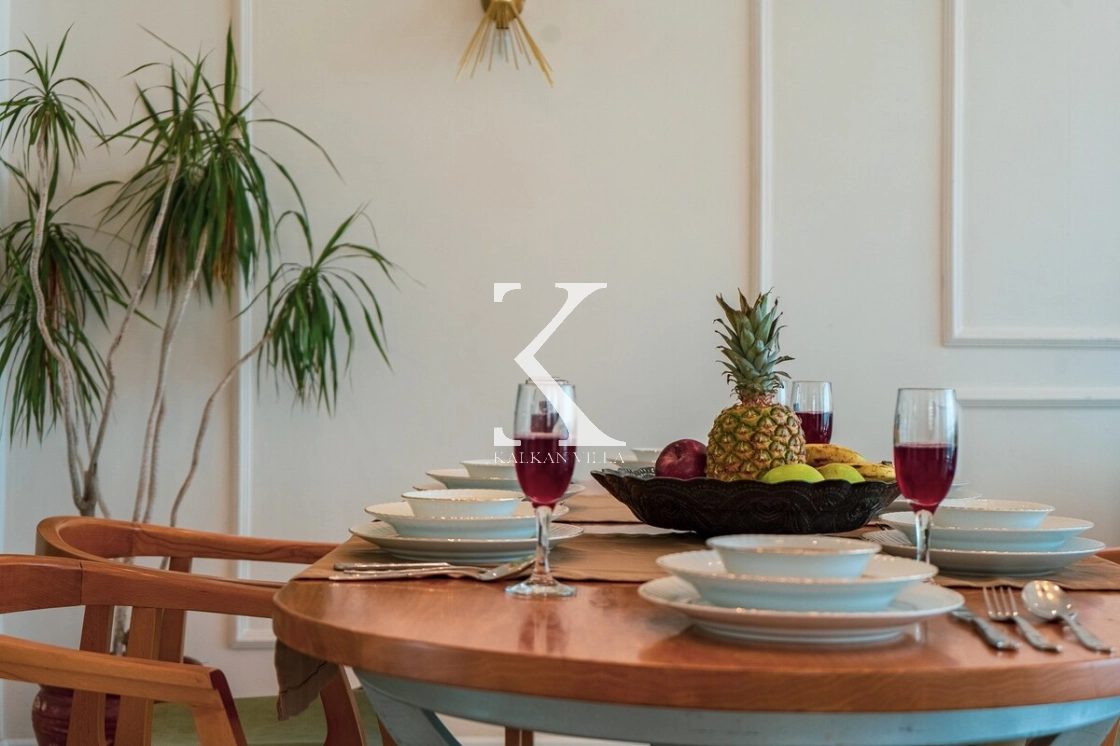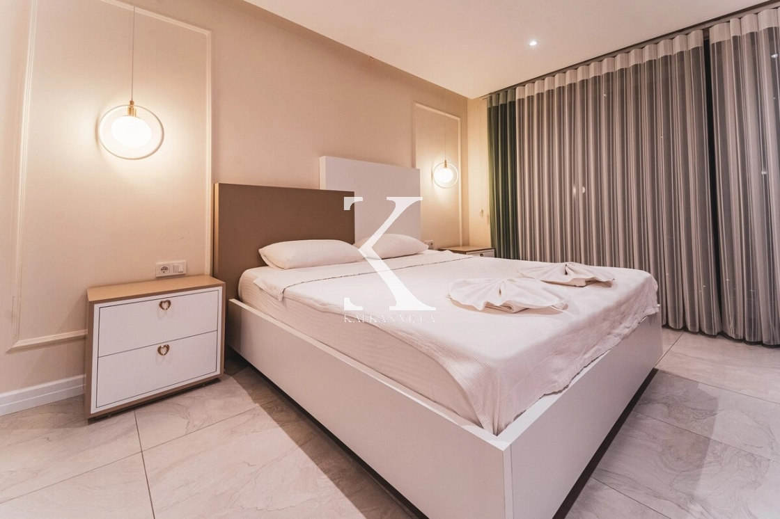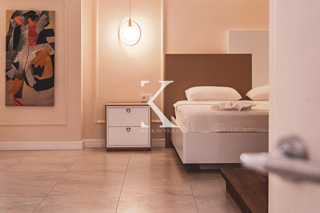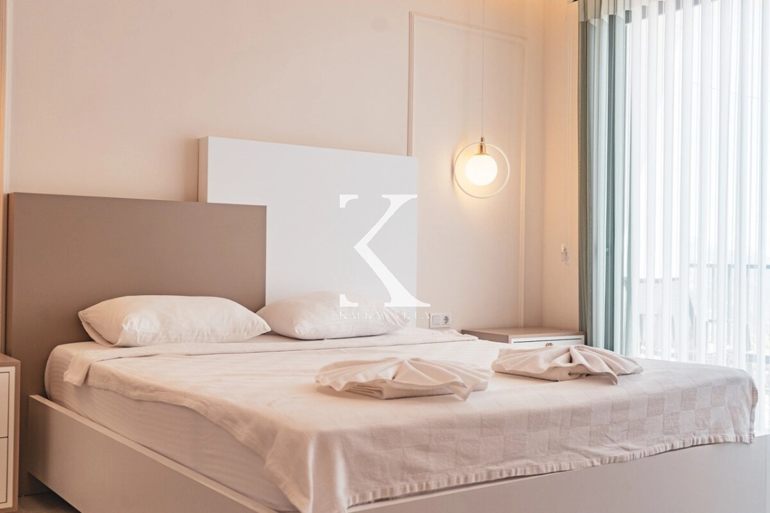 Modern mobilyalarla döşenmiş iç mekânın iki yatak odasında özel jakuzi yer almakta olup, konforlu bir tatil deneyimi yaşatmak için özenle tasarlanmıştır.