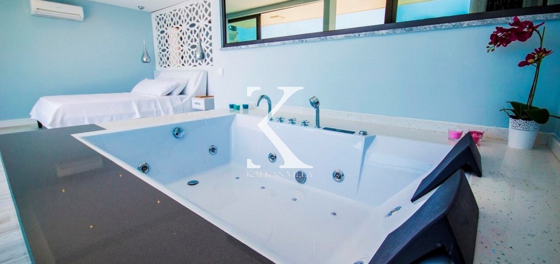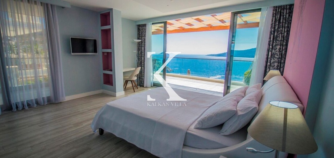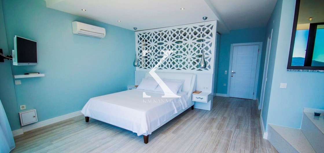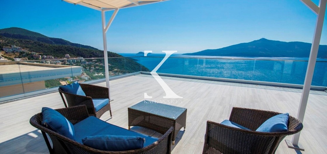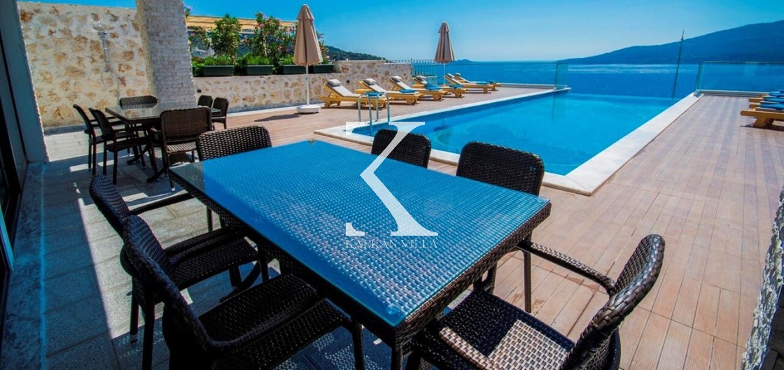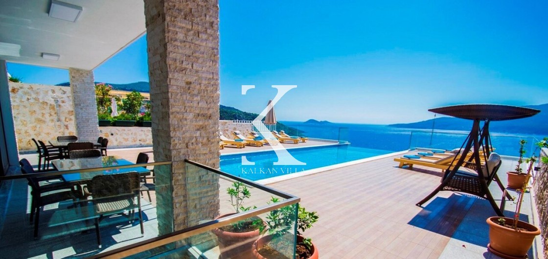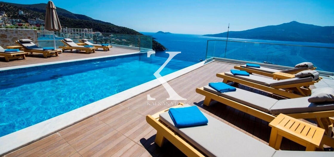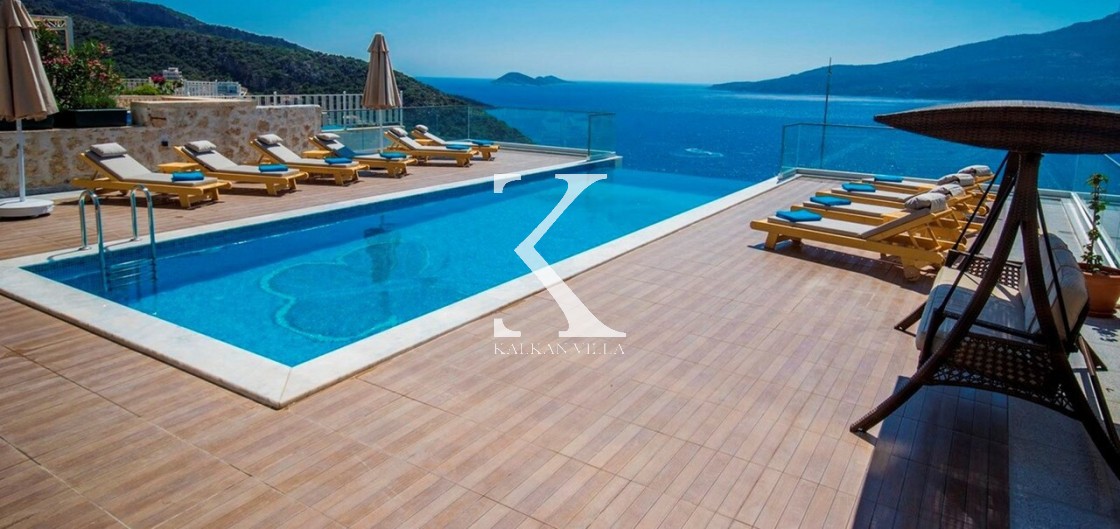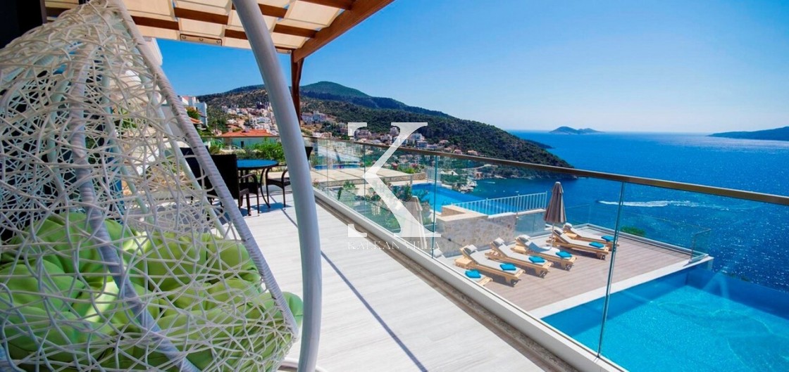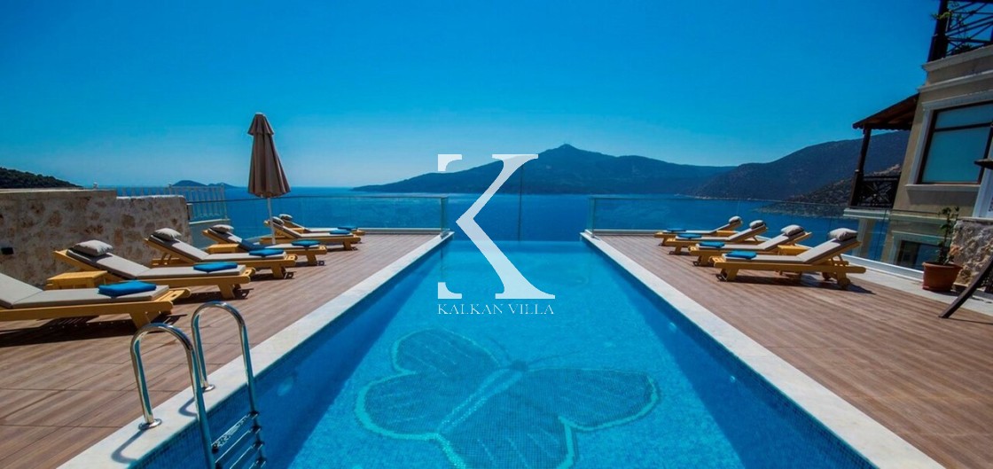 Villa Mavi Kelebek, Kalkan’ın Kışla bölgesinde, geniş konaklama kapasitesi ve panoramik deniz manzarasıyla öne çıkan modern bir tatil villasıdır.