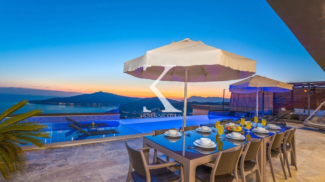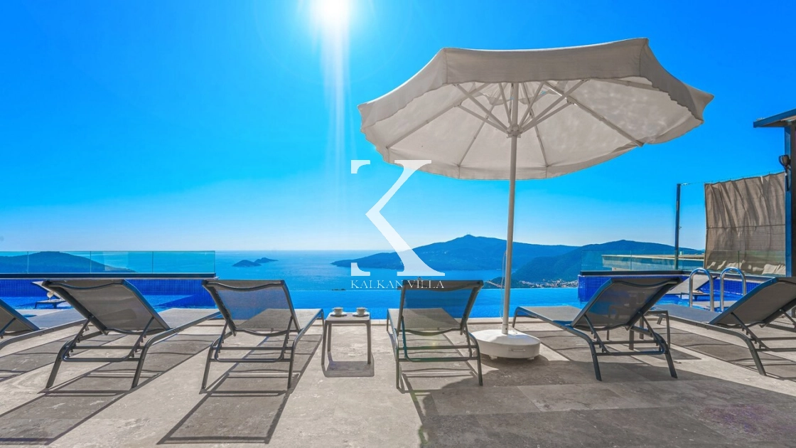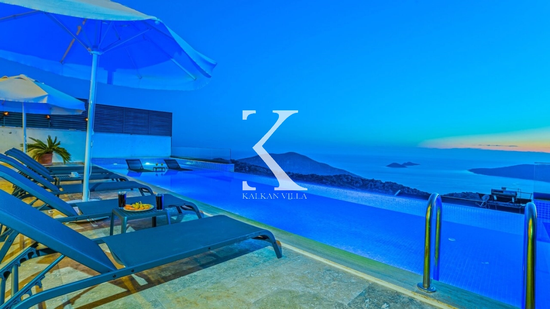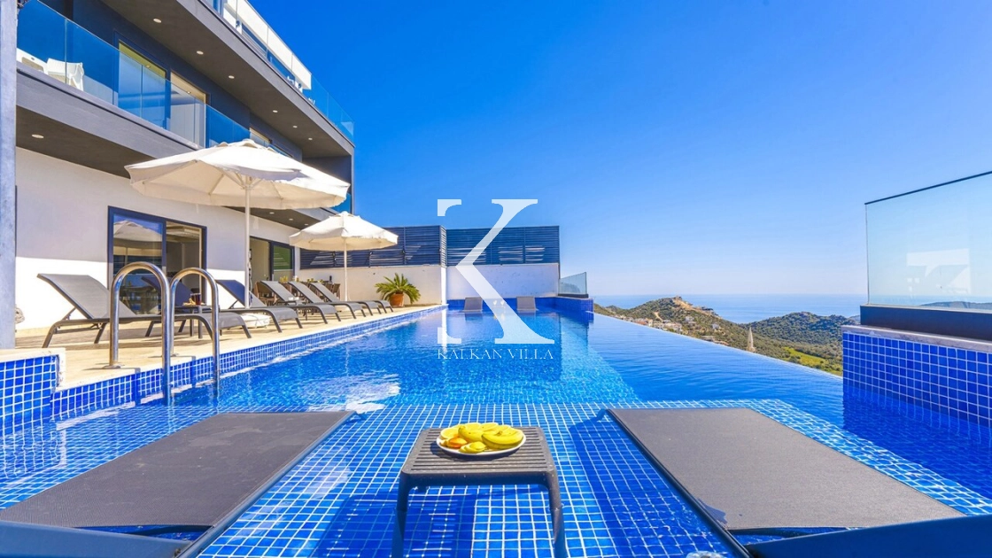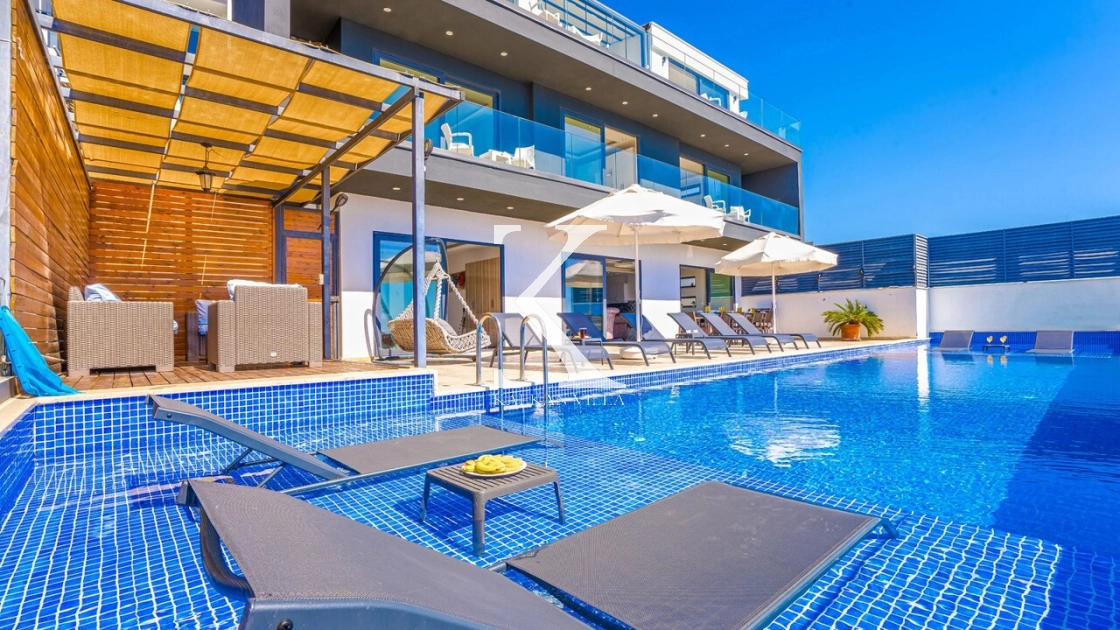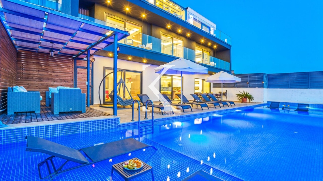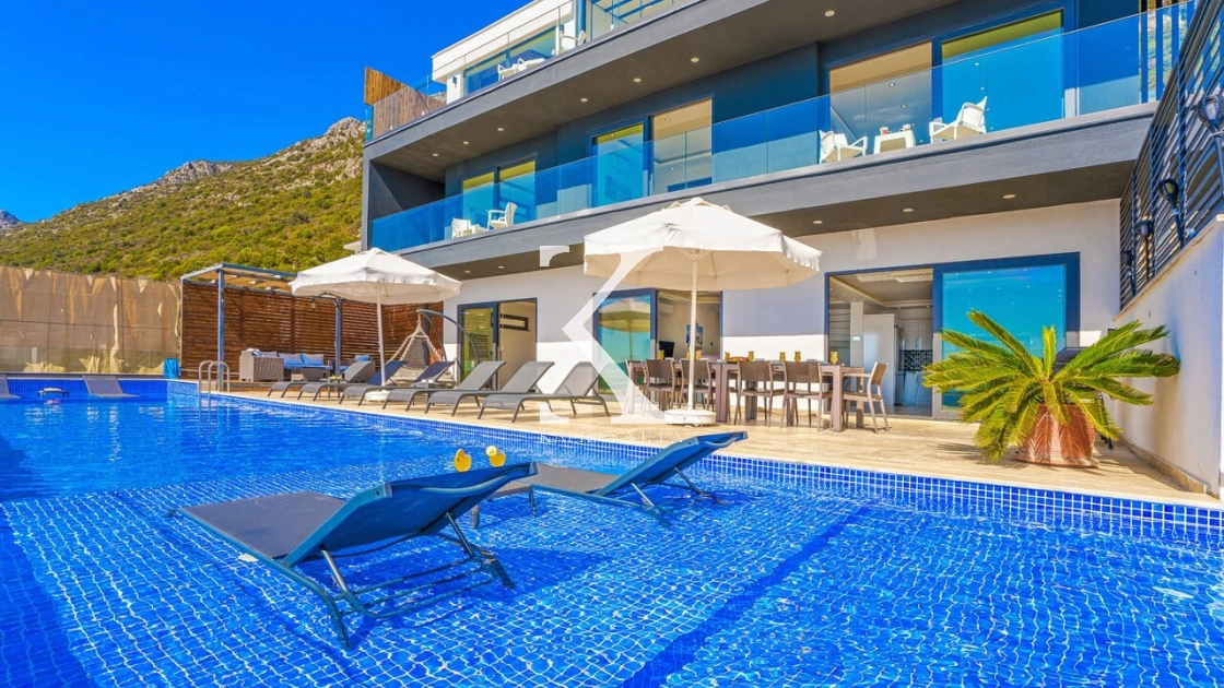 Villa Mega, Kalkan’ın gözde bölgelerinden Kördere’de yer alan, 5 yatak odalı ve 10 kişilik konaklama kapasitesine sahip, muhteşem **panoramik deniz manzaralı lüks bir tatil villasıdır.