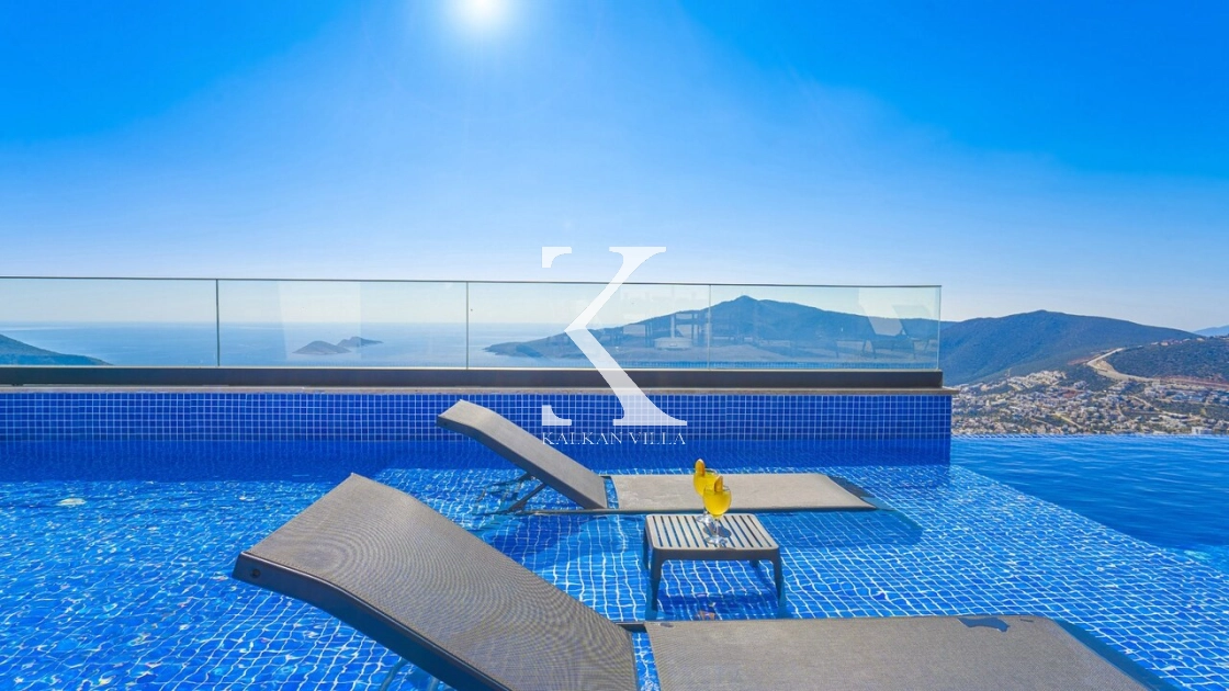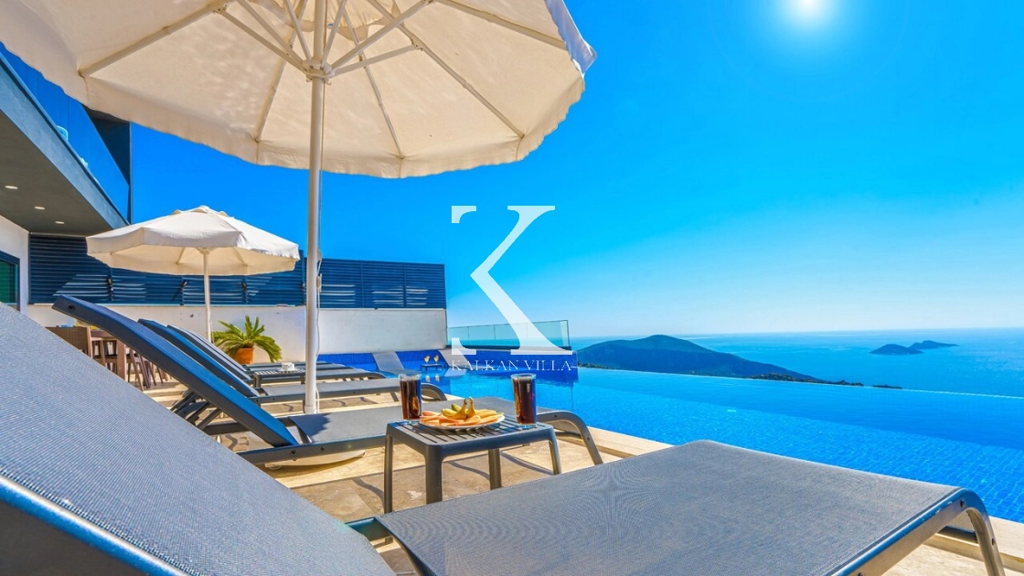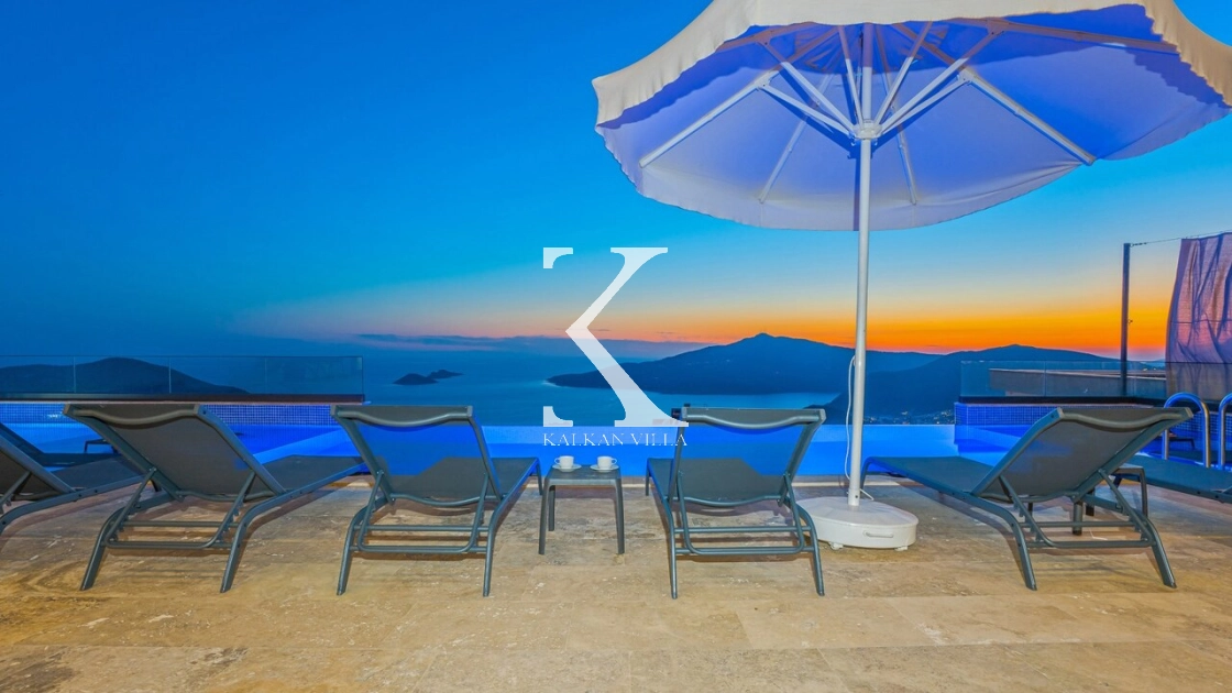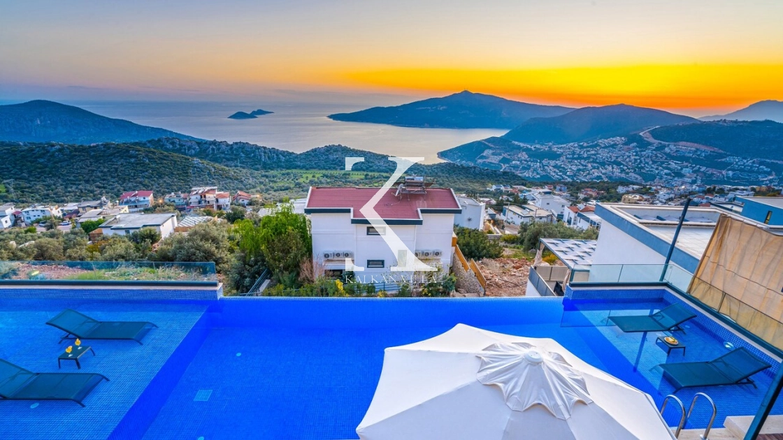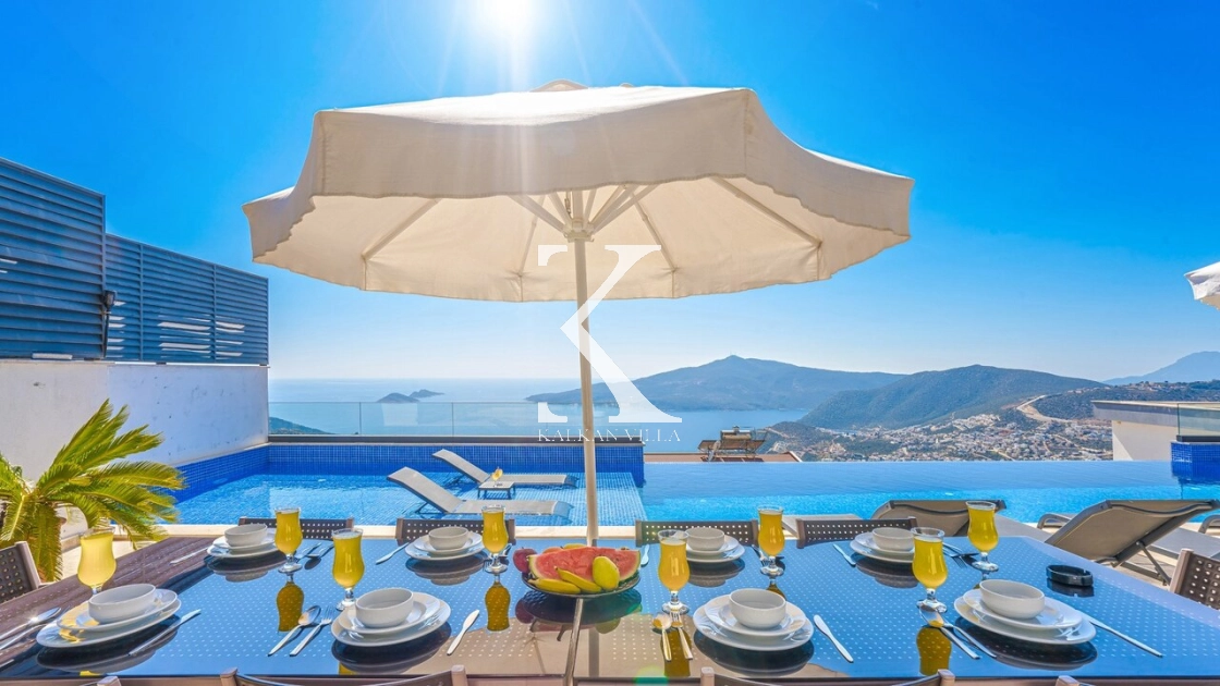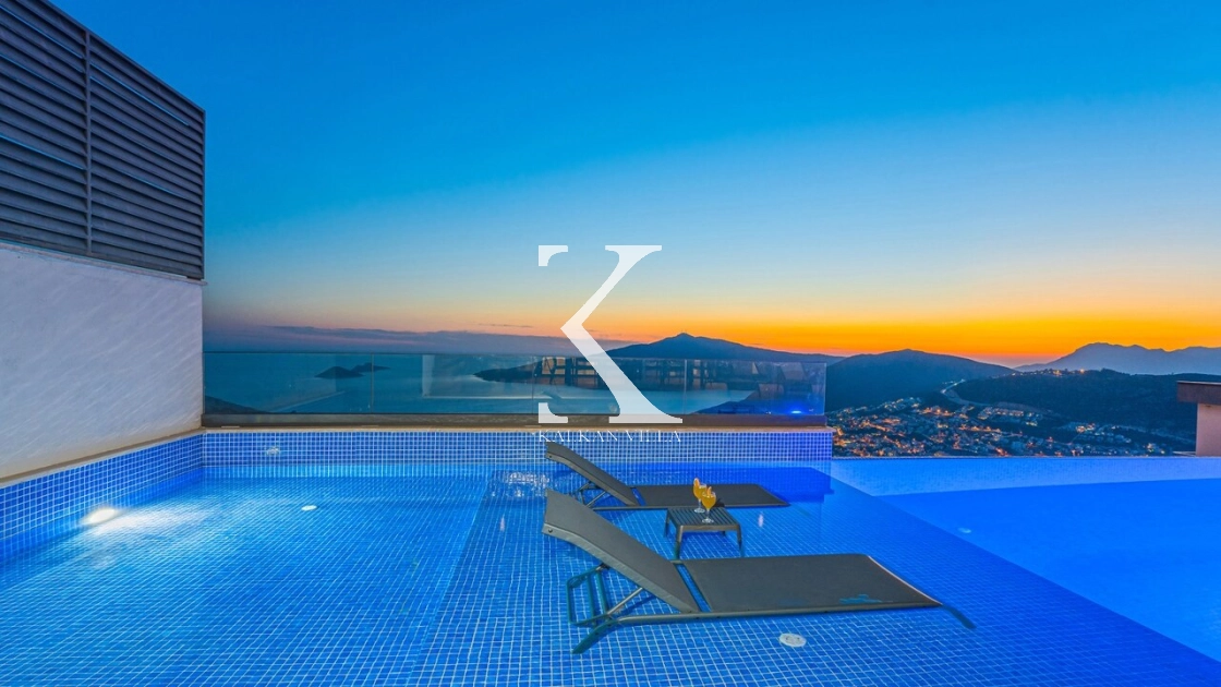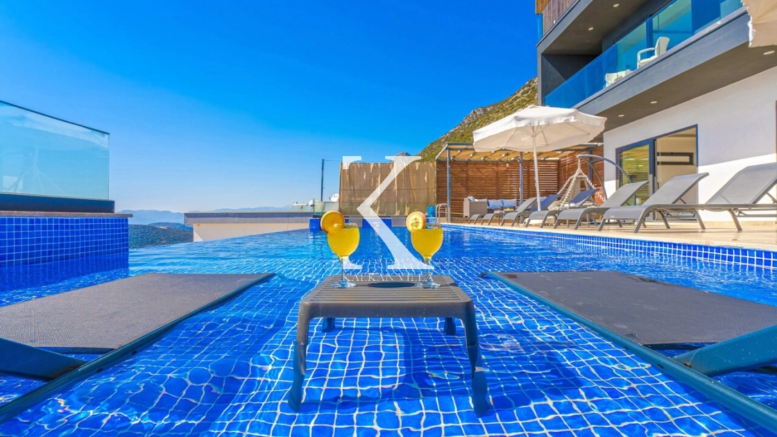 Villa Mega, Kalkan’ın gözde bölgelerinden Kördere’de yer alan, 5 yatak odalı ve 10 kişilik konaklama kapasitesine sahip, muhteşem **panoramik deniz manzaralı lüks bir tatil villasıdır.