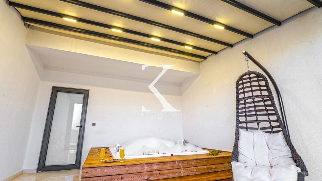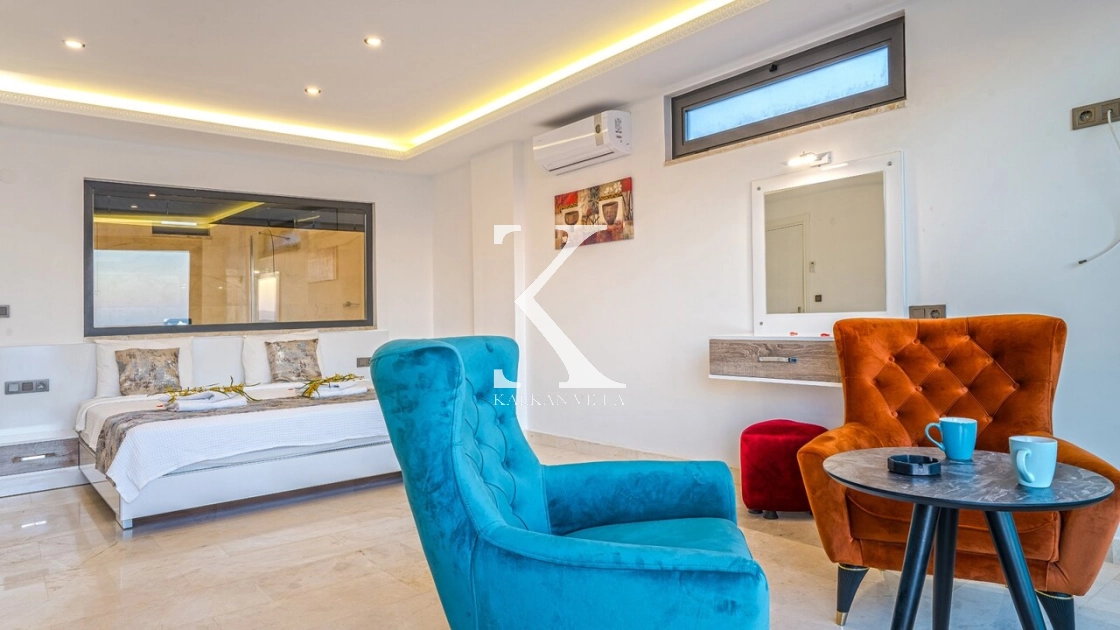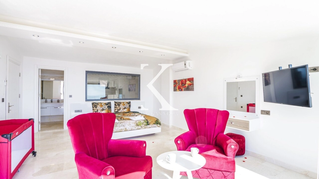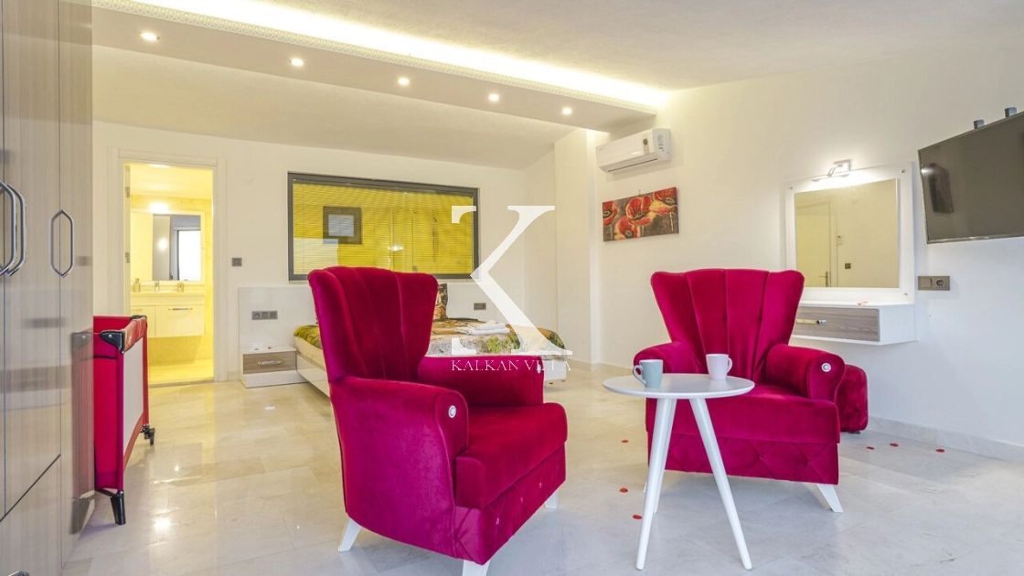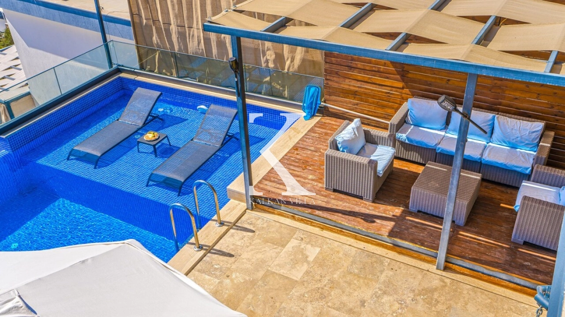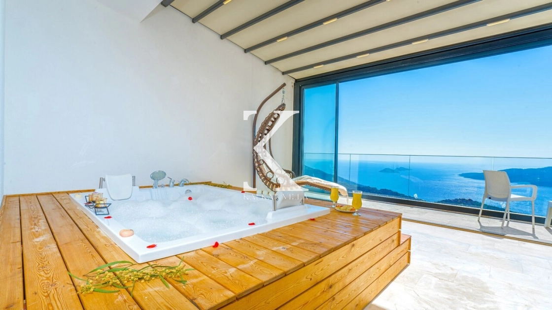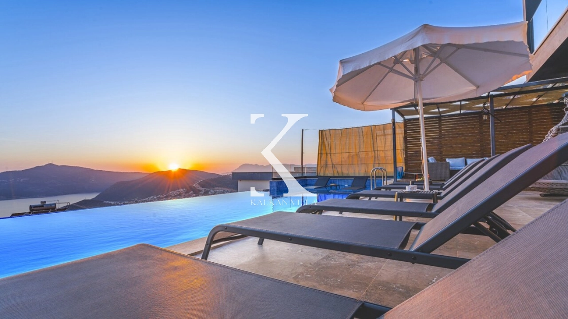 Villa Mega, Kalkan’ın gözde bölgelerinden Kördere’de yer alan, 5 yatak odalı ve 10 kişilik konaklama kapasitesine sahip, muhteşem **panoramik deniz manzaralı lüks bir tatil villasıdır.