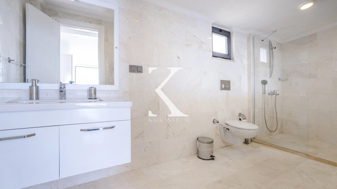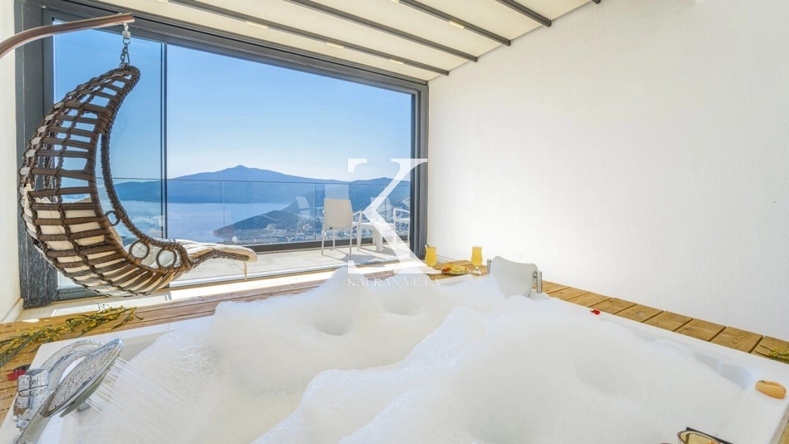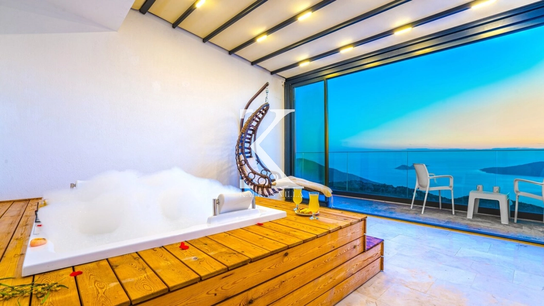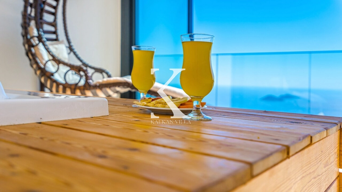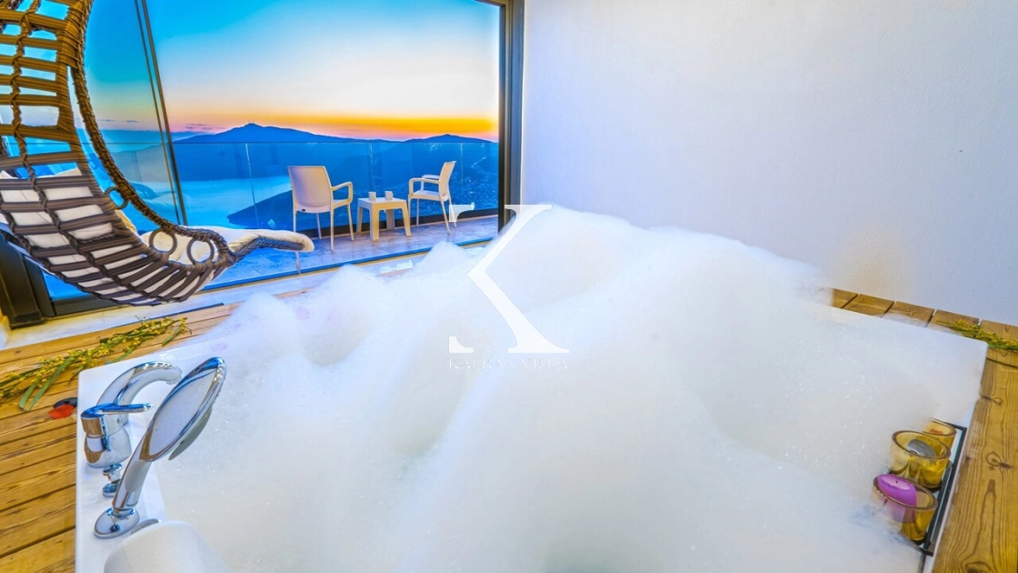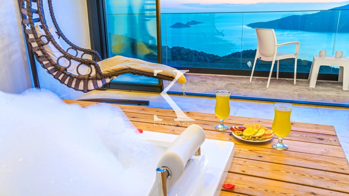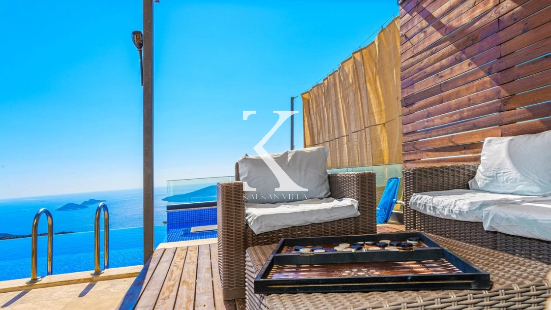Villanın dış alanında sonsuzluk havuzu, şezlonglar, salıncak, barbekü alanı ve manzara eşliğinde yemek masası bulunmaktadır.