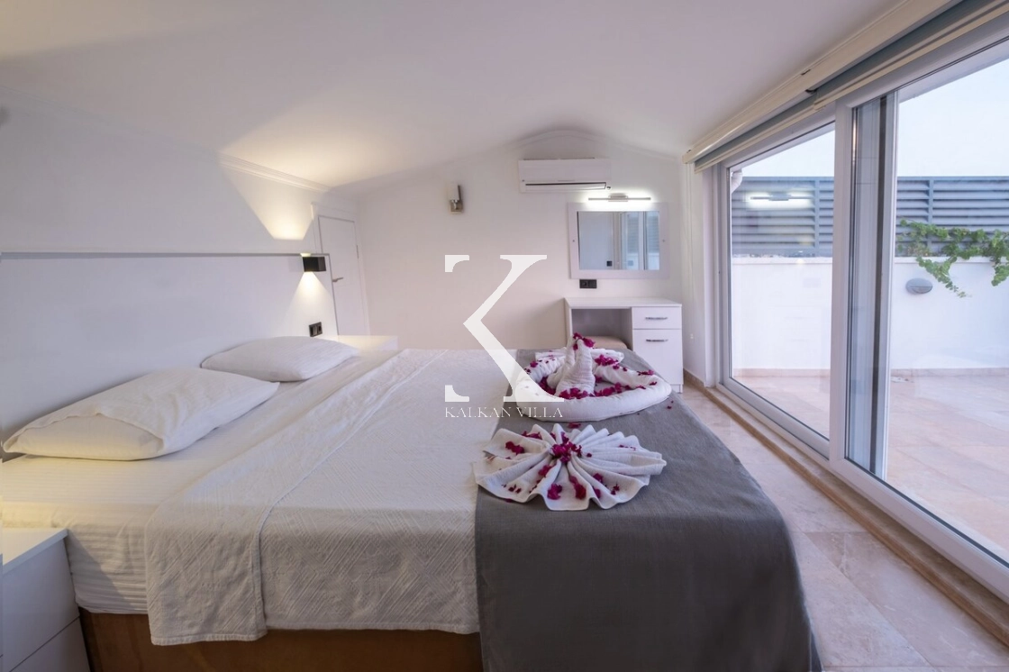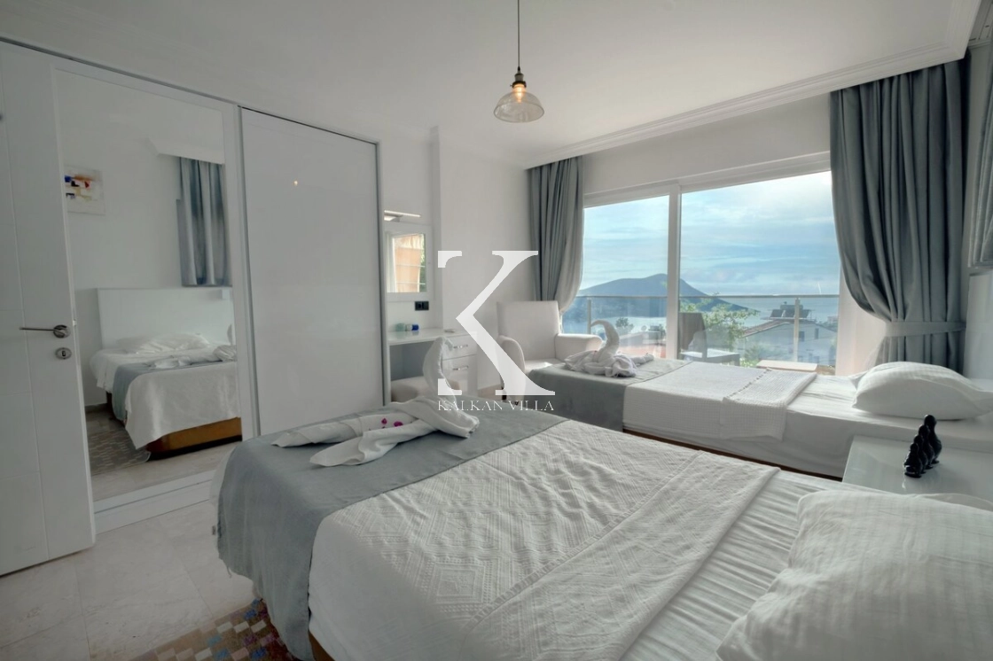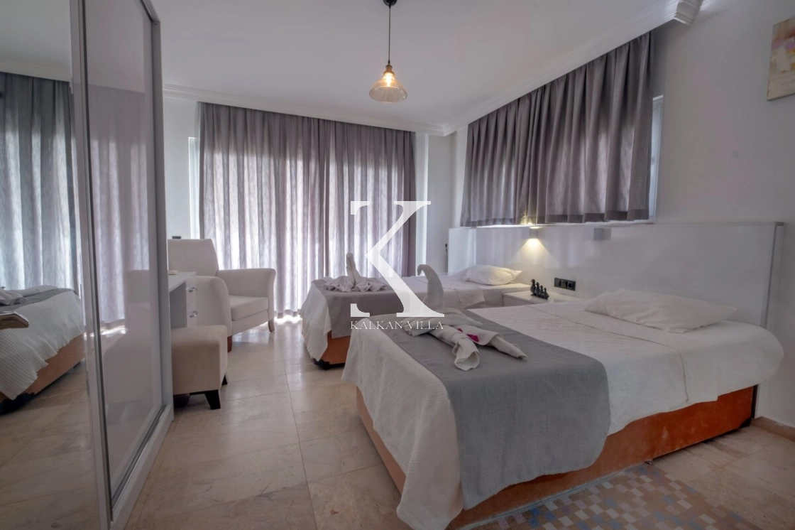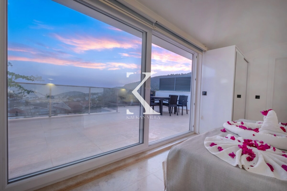 Villanın en dikkat çekici özelliklerinden biri, tepeden Kalkan şehir manzarası ve Akdeniz’in eşsiz deniz manzarasına sahip olmasıdır. Gün batımında odalarınızdan veya havuz terasından manzaranın keyfini çıkarabilir, akşam saatlerinde Kalkan’ın ışıkları eşliğinde huzurlu anlar yaşayabilirsiniz.