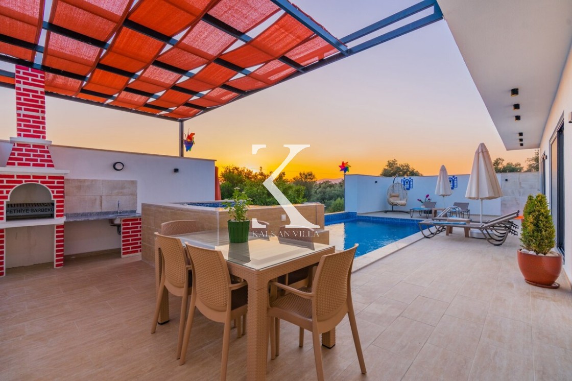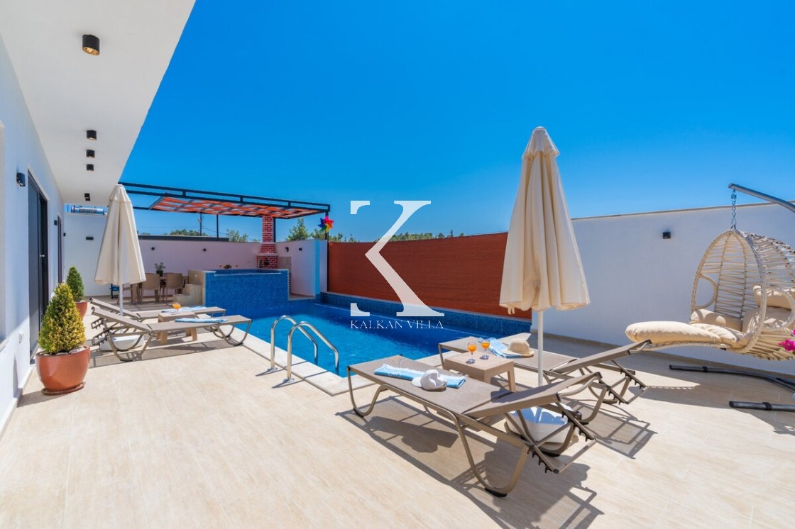 Villanın doğa manzaralı bahçesinde özel yüzme havuzu, jakuzi, barbekü alanı, salıncak ve keyifli oturma köşeleri yer alır. Gözlerden uzak atmosferi sayesinde mahremiyetinizin korunduğu, huzur dolu bir tatil geçirebilirsiniz.
