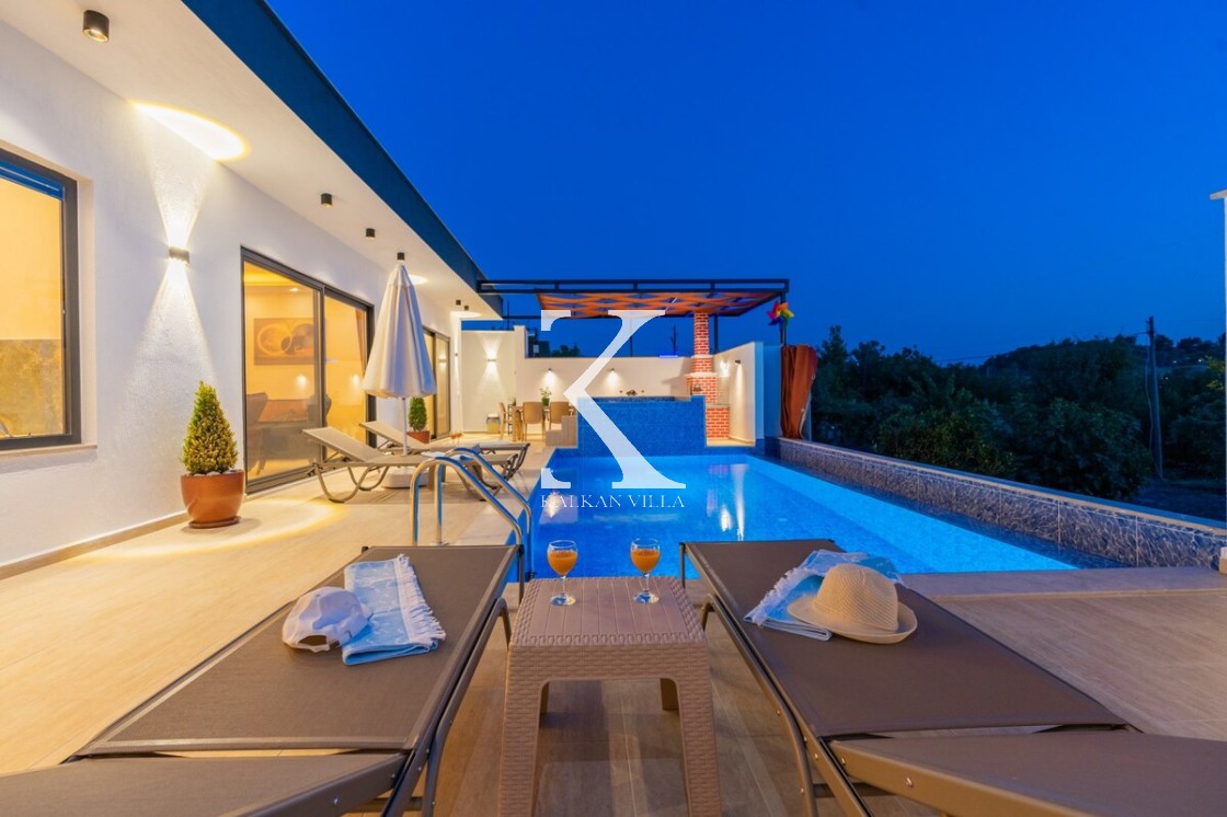 Villa Milid Üzümlü, doğanın huzurunu modern konforla birleştirir. Hem romantik bir balayı hem de aile tatilleri için ideal bir ortam sunar.