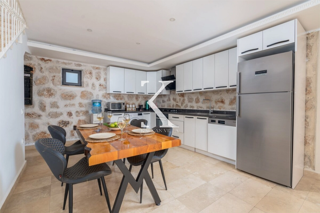 buzdolabı, çamaşır makinesi, bulaşık makinesi, 4’lü ankastre ocak, fırın, mikrodalga fırın, ekmek kızartma makinesi, su ısıtıcısı, yemek takımları ve tüm mutfak araç gereçleri bulunmaktadır.