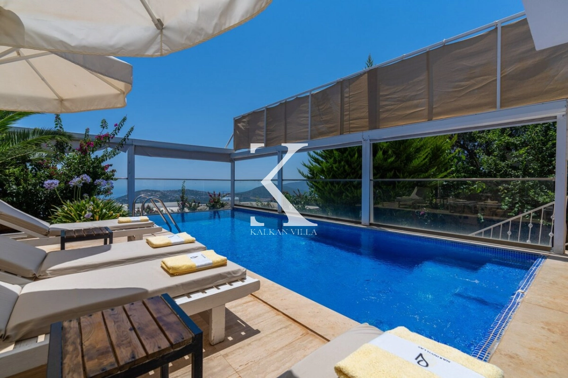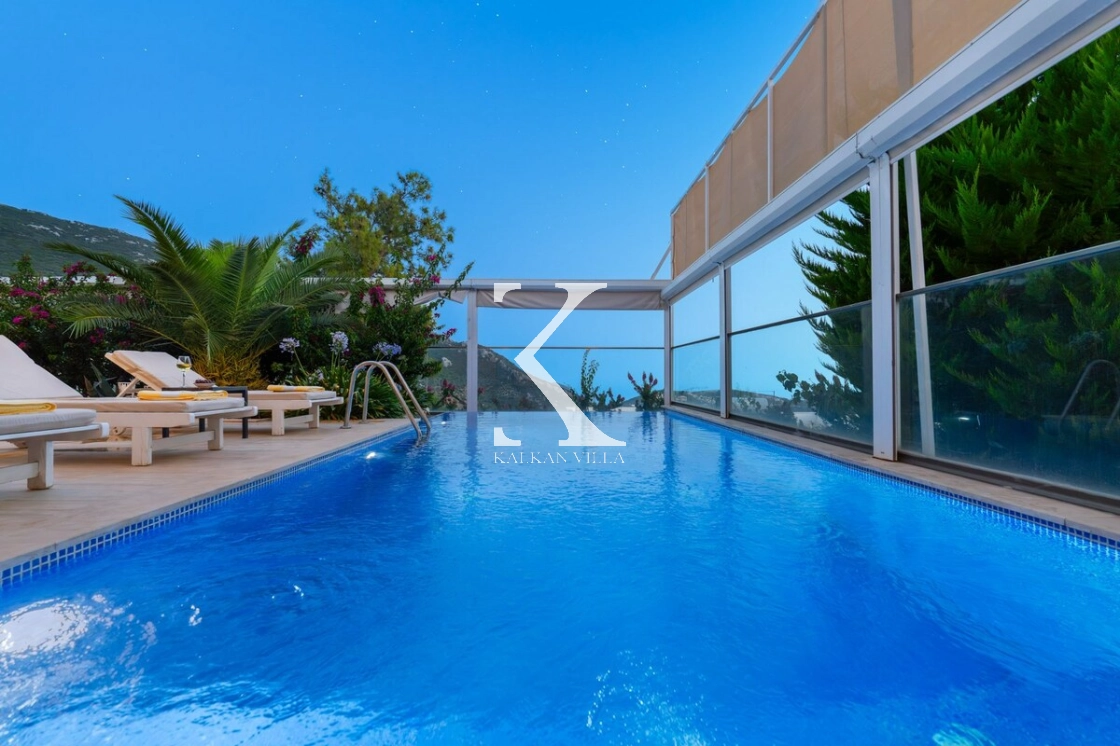Villanın tam korunaklı özel havuzu, mahremiyete önem veren muhafazakâr aileler ve balayı çiftleri için güvenle tercih edilebilir bir ortam sunar. Bahçede özel yüzme havuzu, şezlonglar, oturma köşesi, yemek masası ve barbekü alanı yer almaktadır.