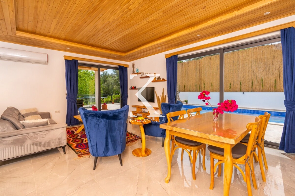 Havuz ve doğa manzarasına sahip salonda konforlu oturma grubu, bilardo masası, 4 kişilik yemek masası, LCD uydu TV, kablosuz internet ve klima yer almaktadır. Salondan havuz terasına doğrudan çıkış bulunmaktadır.