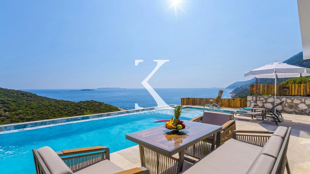 Tam korunaklı havuz terası, Akdeniz’in eşsiz maviliği ve Yunan Adaları manzarası eşliğinde keyifli anlar yaşamanıza olanak tanır.