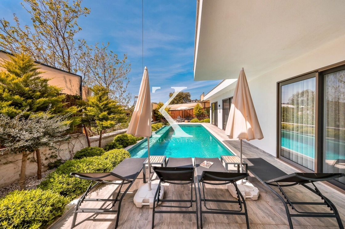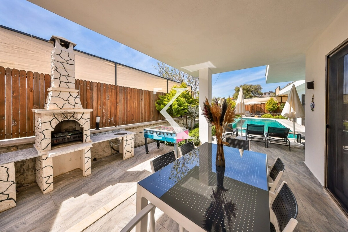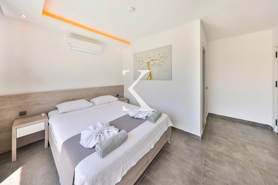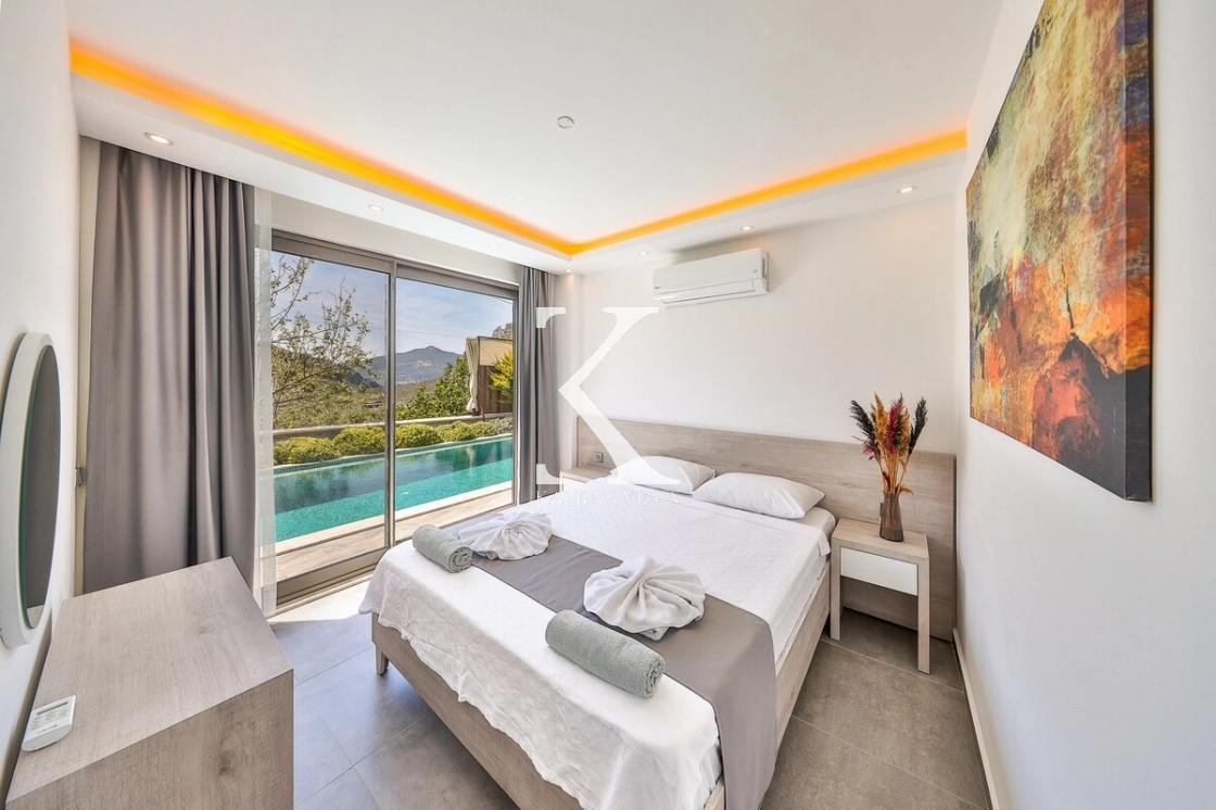 Her biri suit olarak tasarlanmış yatak odaları, konforunuz ön planda tutularak dekore edilmiştir. Villanın mutfağından ve havuz terasından havuz manzarası izlenebilmekte olup, modern mobilyalarla döşenmiş iç yaşam alanlarında rahatınız için tüm detaylar düşünülmüştür.