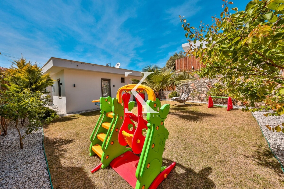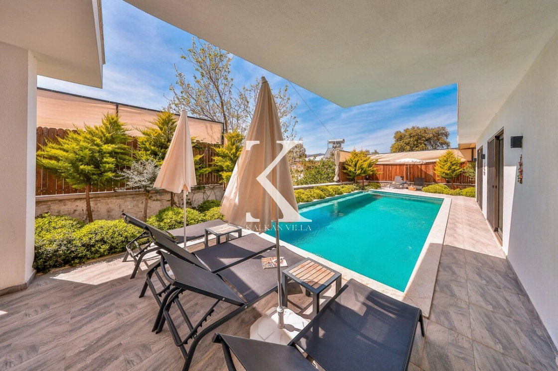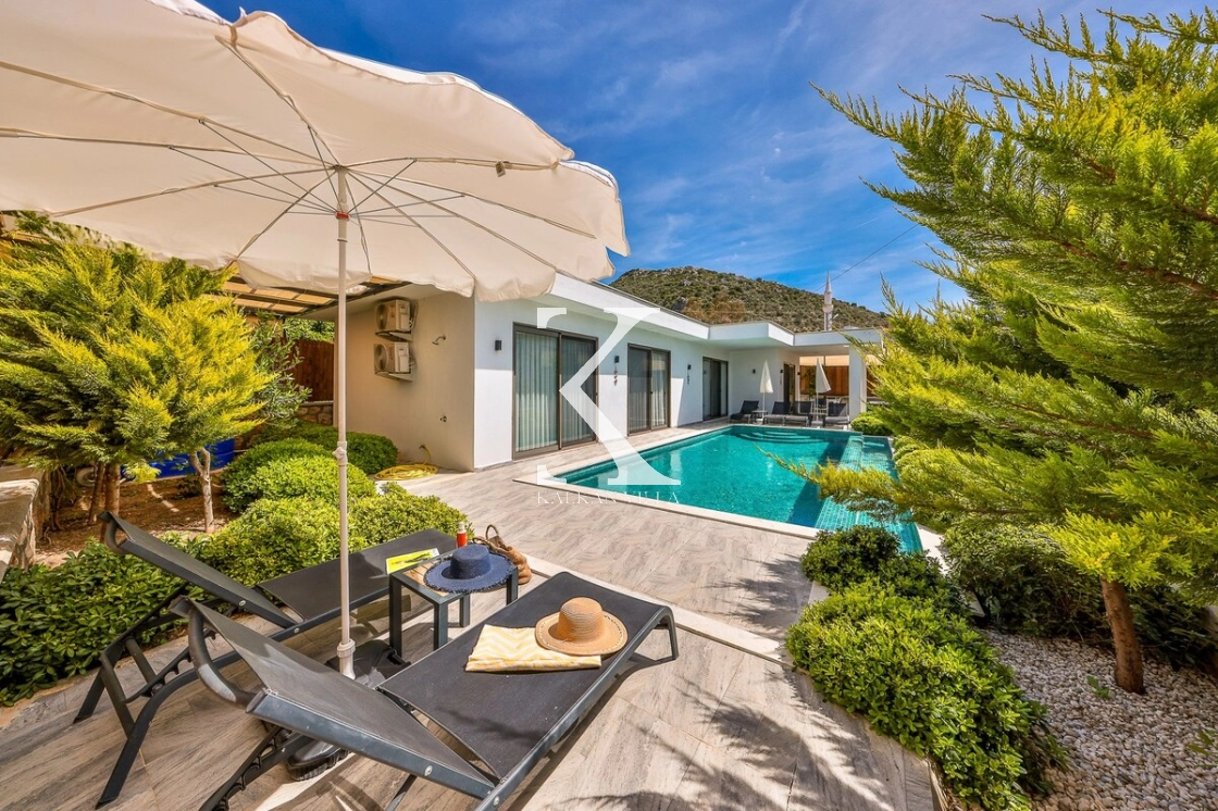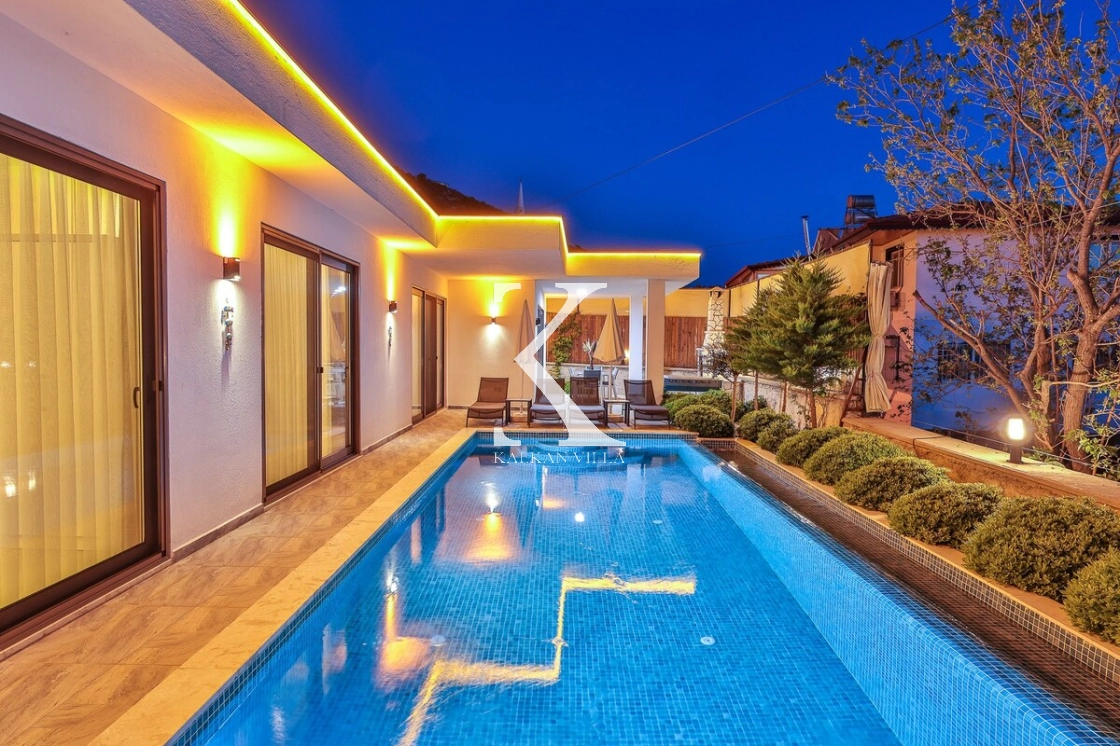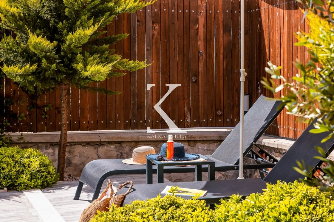 Bahçe alanında şezlonglar, oturma köşesi ve barbekü alanı yer almakta; doğayla baş başa, sessiz ve huzurlu bir tatil imkânı sunulmaktadır. Kalkan merkeze yalnızca 3 km mesafede bulunan Villa Niba, hem sakinlik hem de ulaşım kolaylığını bir arada arayan misafirler için oldukça uygundur.