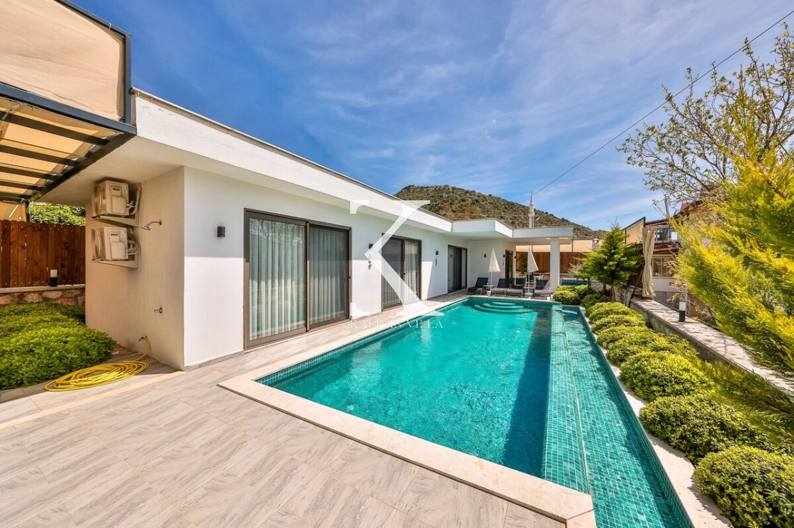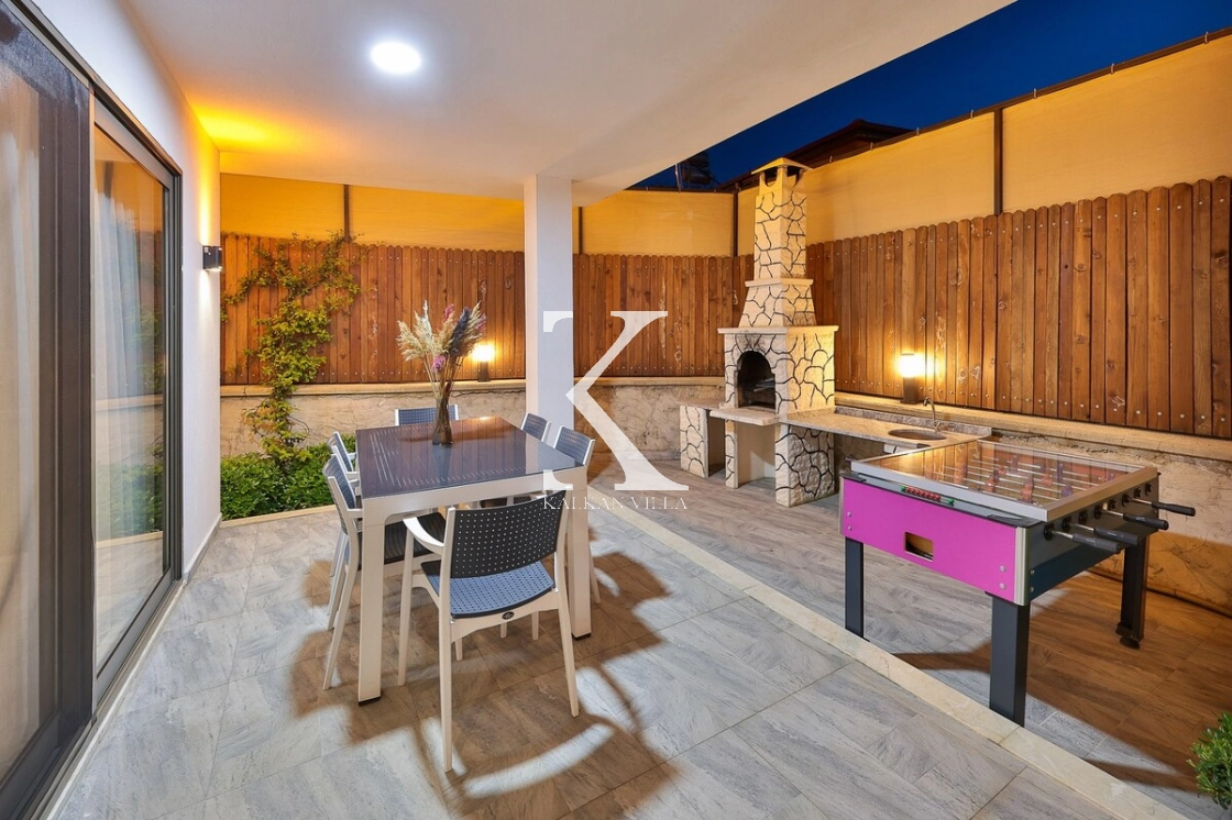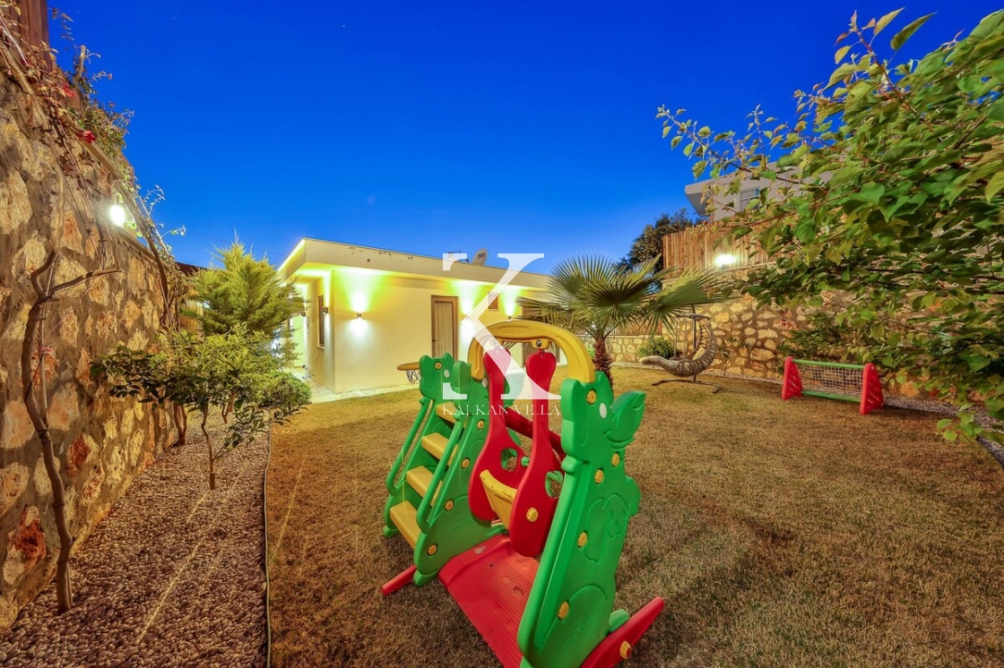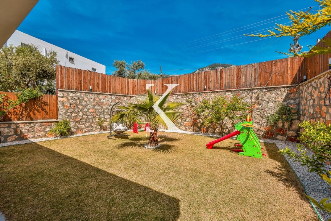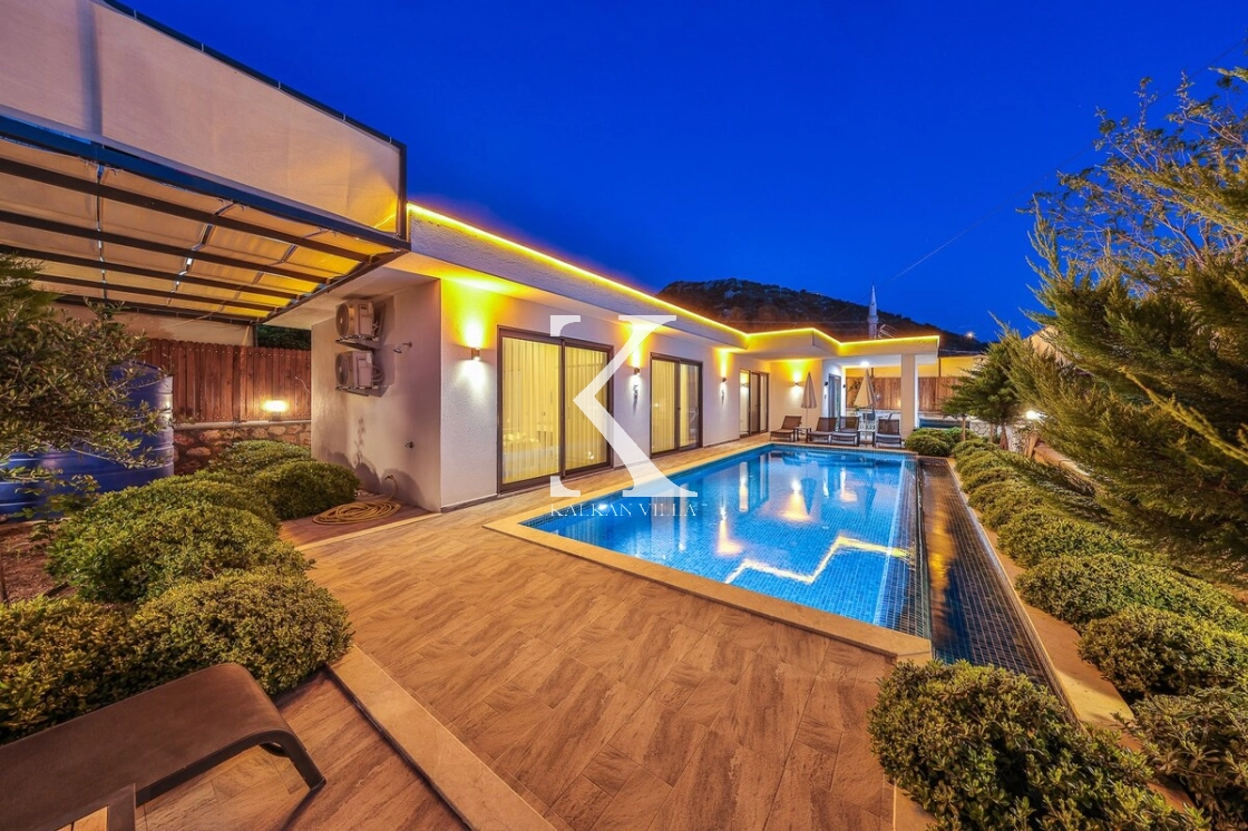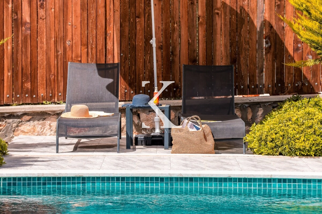 Bahçe alanında şezlonglar, oturma köşesi ve barbekü alanı yer almakta; doğayla baş başa, sessiz ve huzurlu bir tatil imkânı sunulmaktadır. Kalkan merkeze yalnızca 3 km mesafede bulunan Villa Niba, hem sakinlik hem de ulaşım kolaylığını bir arada arayan misafirler için oldukça uygundur.