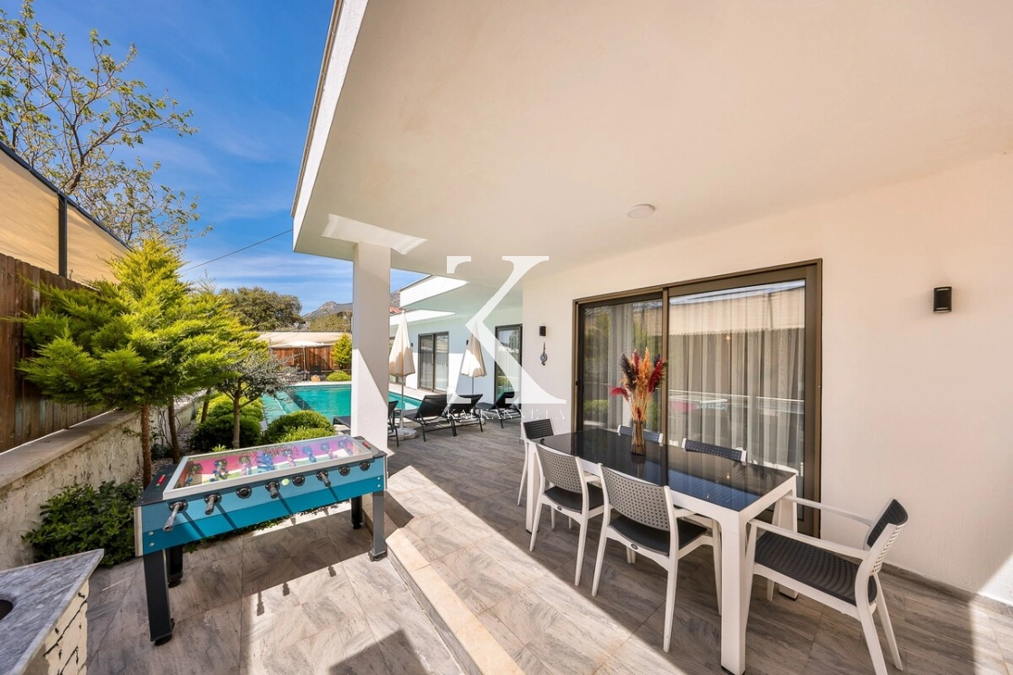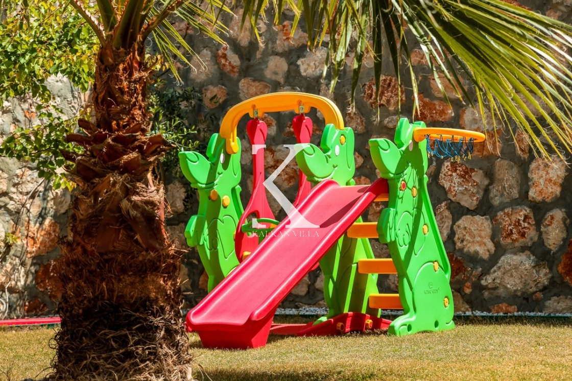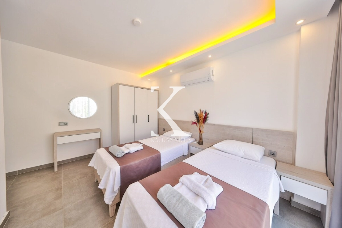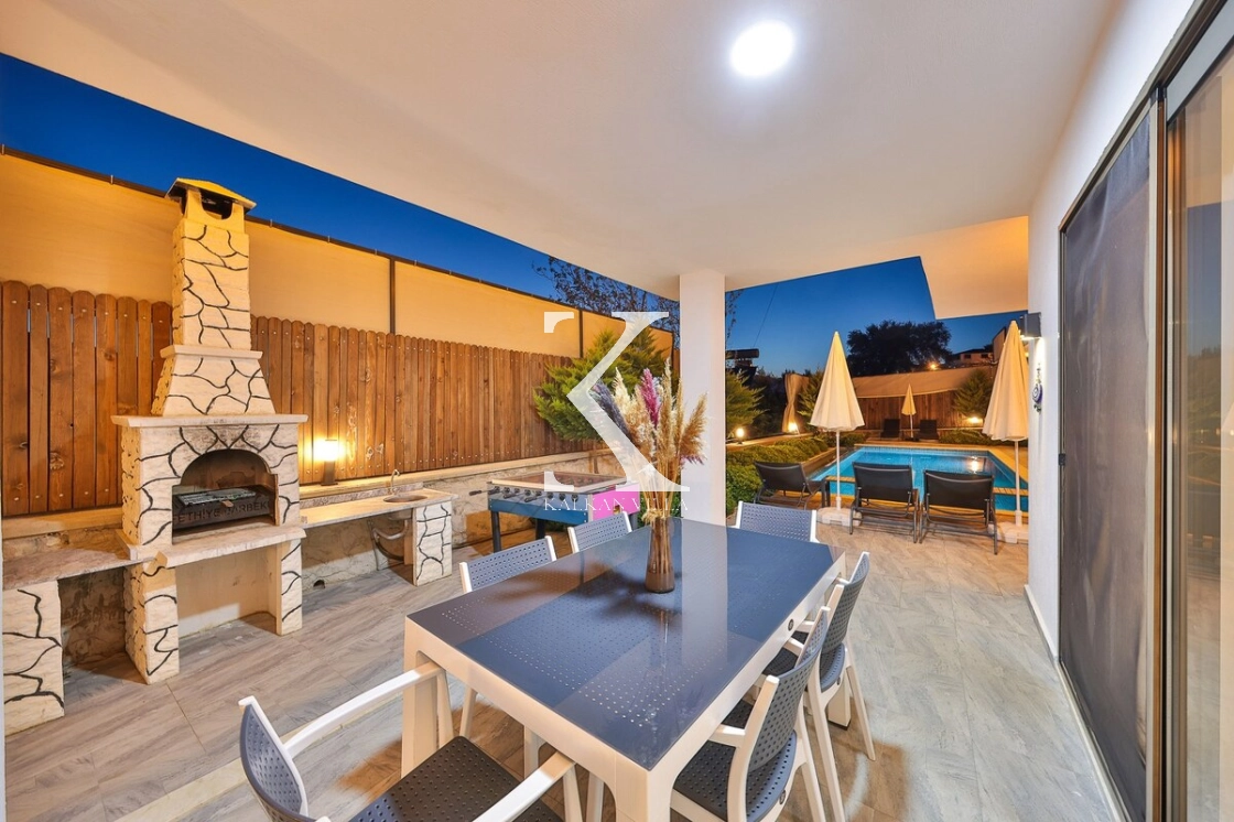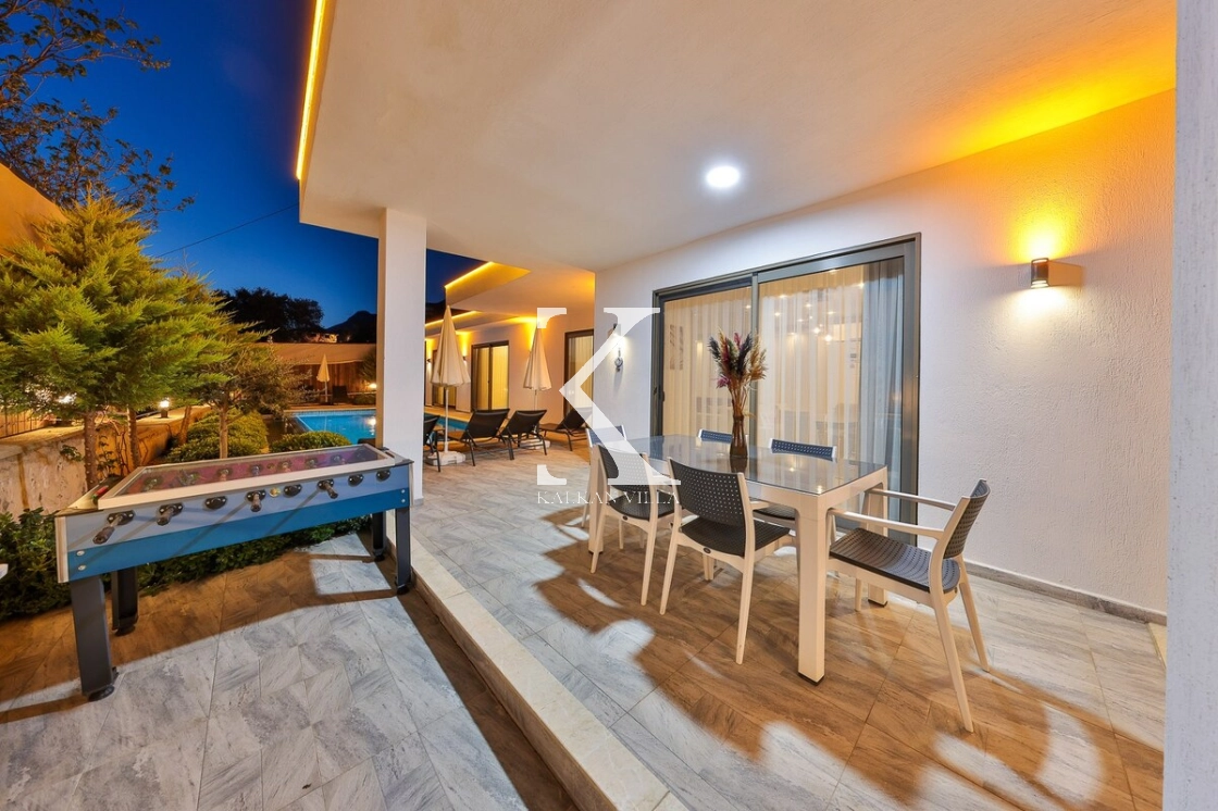 Bahçe alanında şezlonglar, oturma köşesi ve barbekü alanı yer almakta; doğayla baş başa, sessiz ve huzurlu bir tatil imkânı sunulmaktadır. Kalkan merkeze yalnızca 3 km mesafede bulunan Villa Niba, hem sakinlik hem de ulaşım kolaylığını bir arada arayan misafirler için oldukça uygundur.